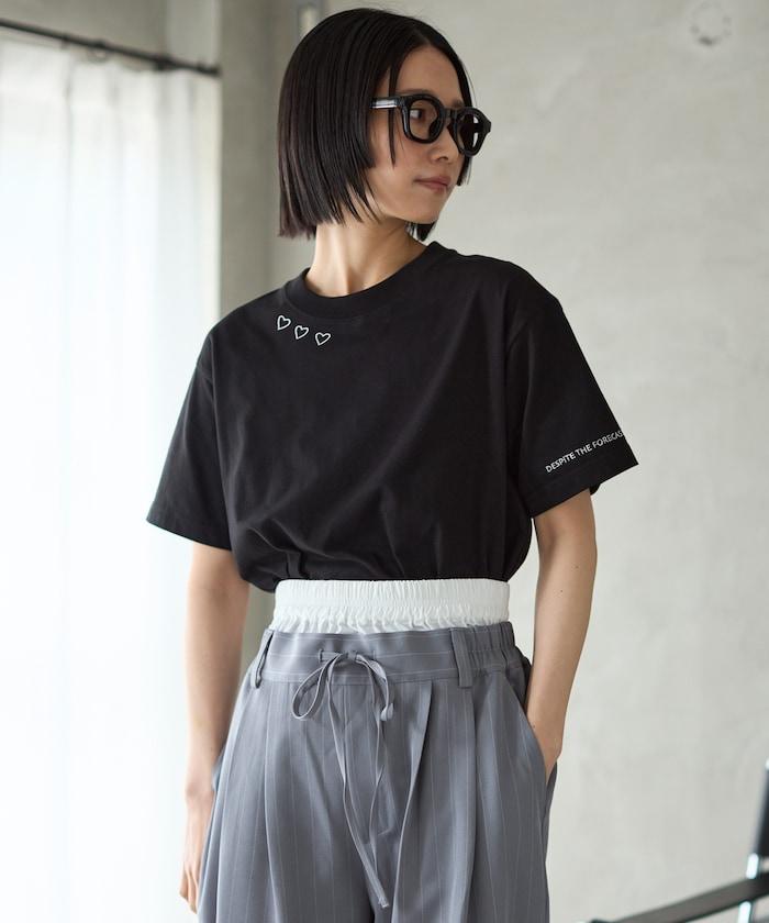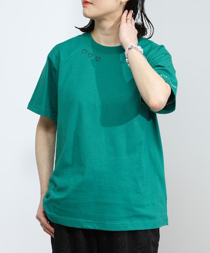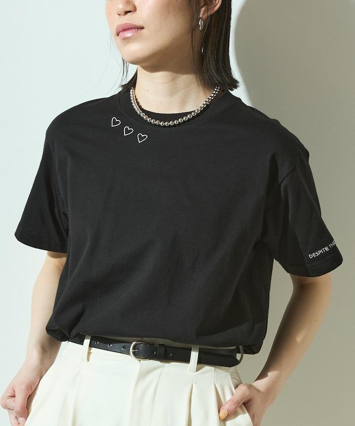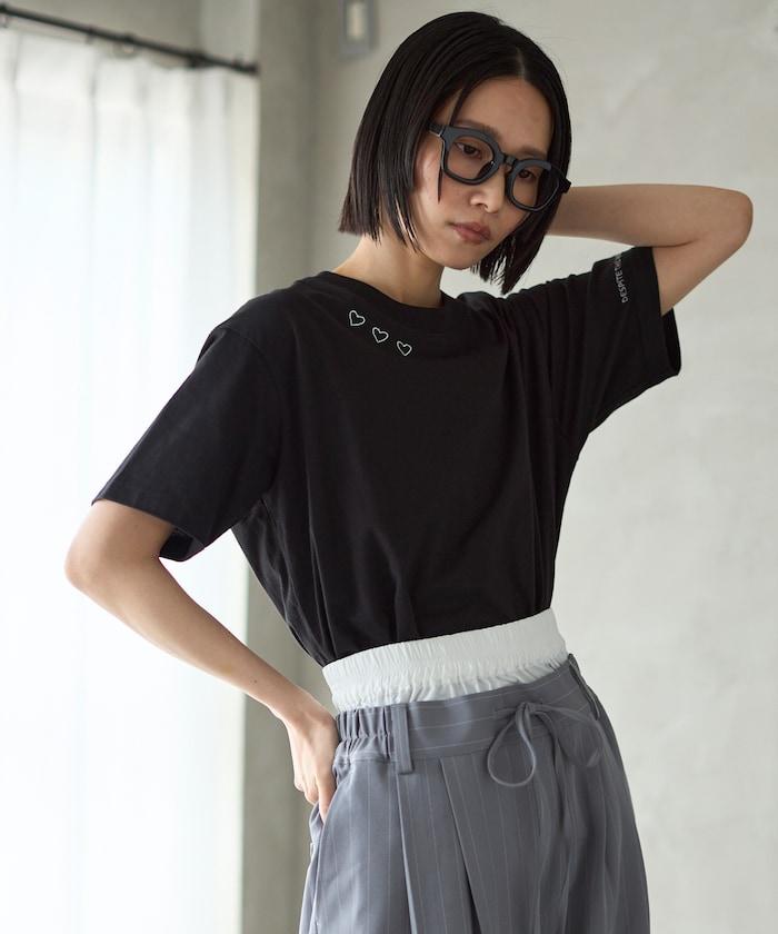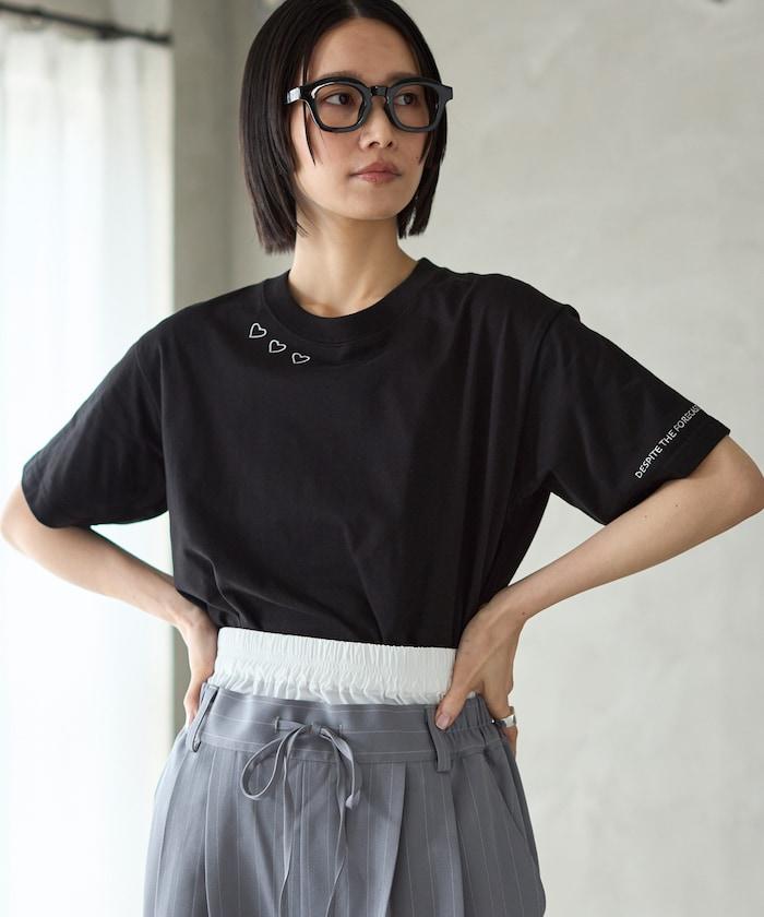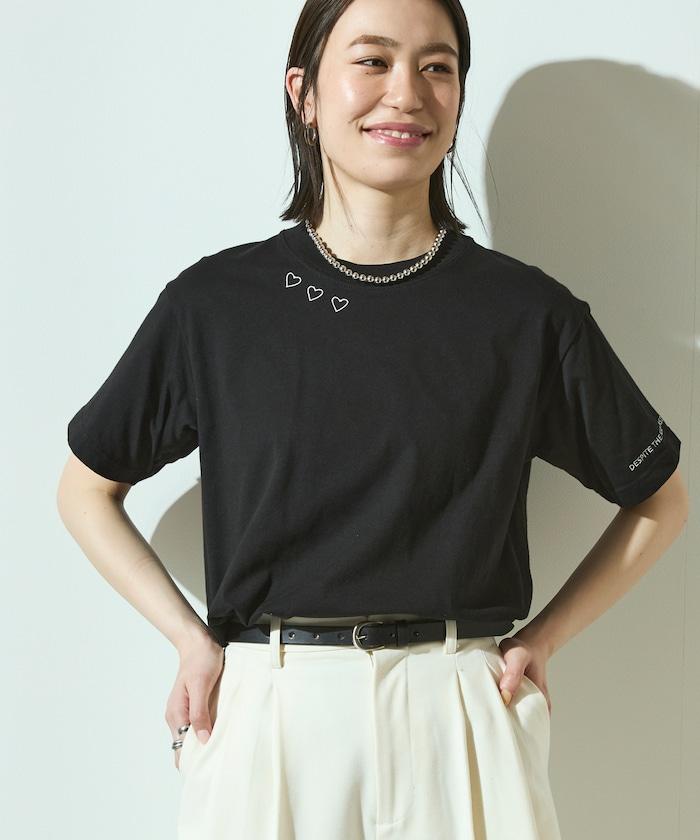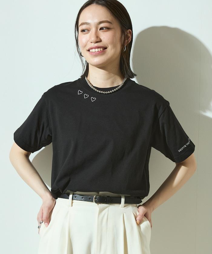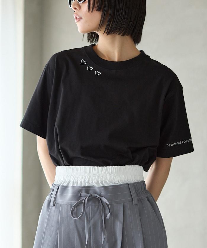 有機棉 心形 標誌刺繡T恤 / 圓領 單點標誌 刺繡短袖T恤