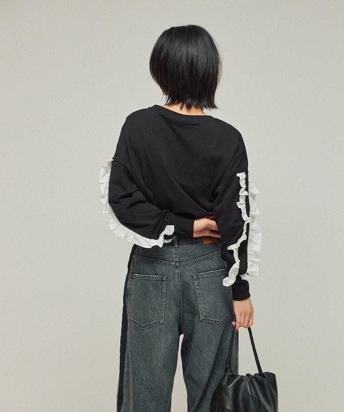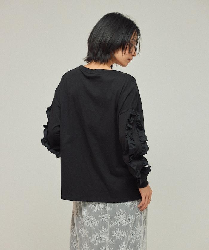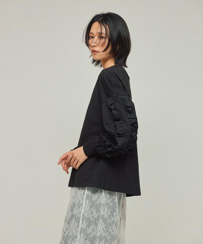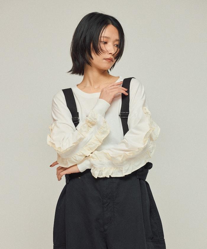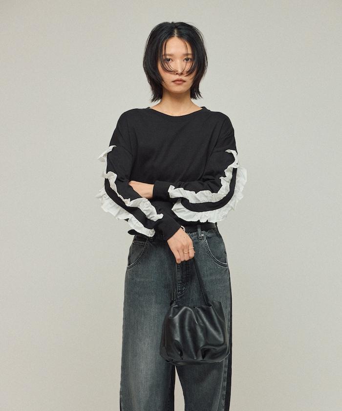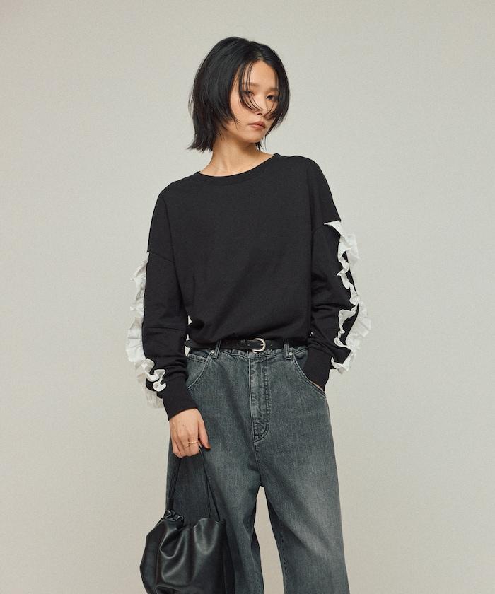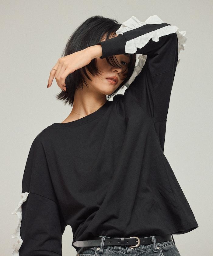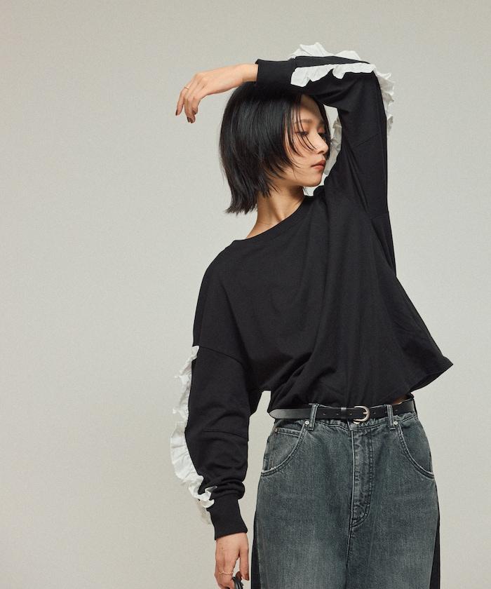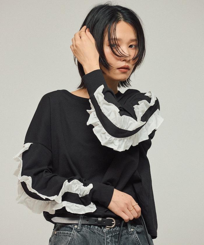 荷葉邊部分採用編織面料,呈現出立體輪廓,是一款可以穿出女人味的長袖 T。