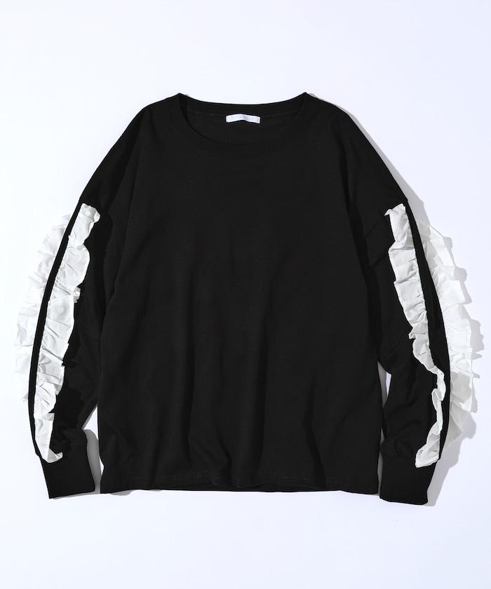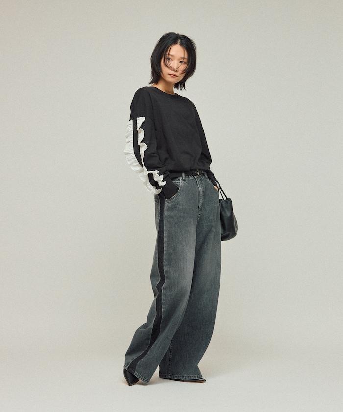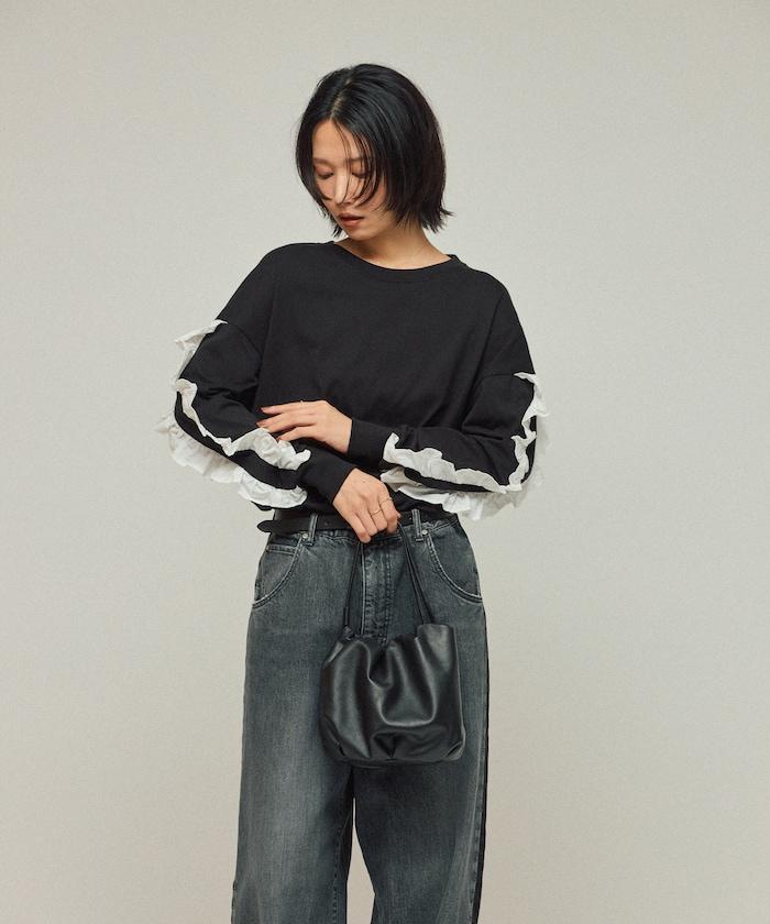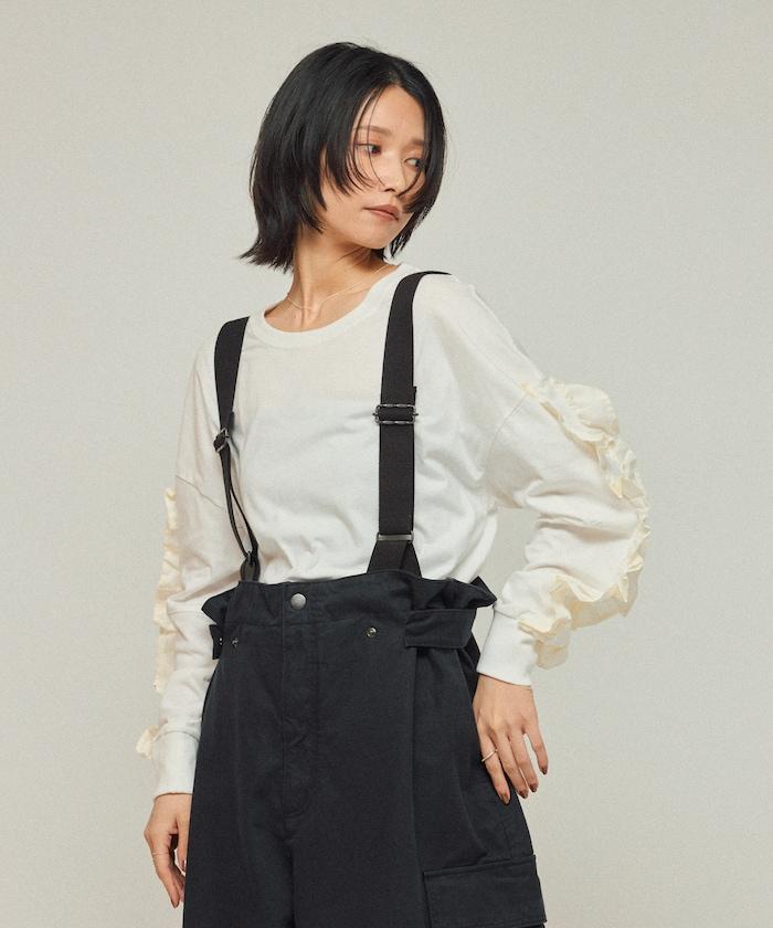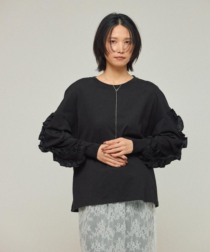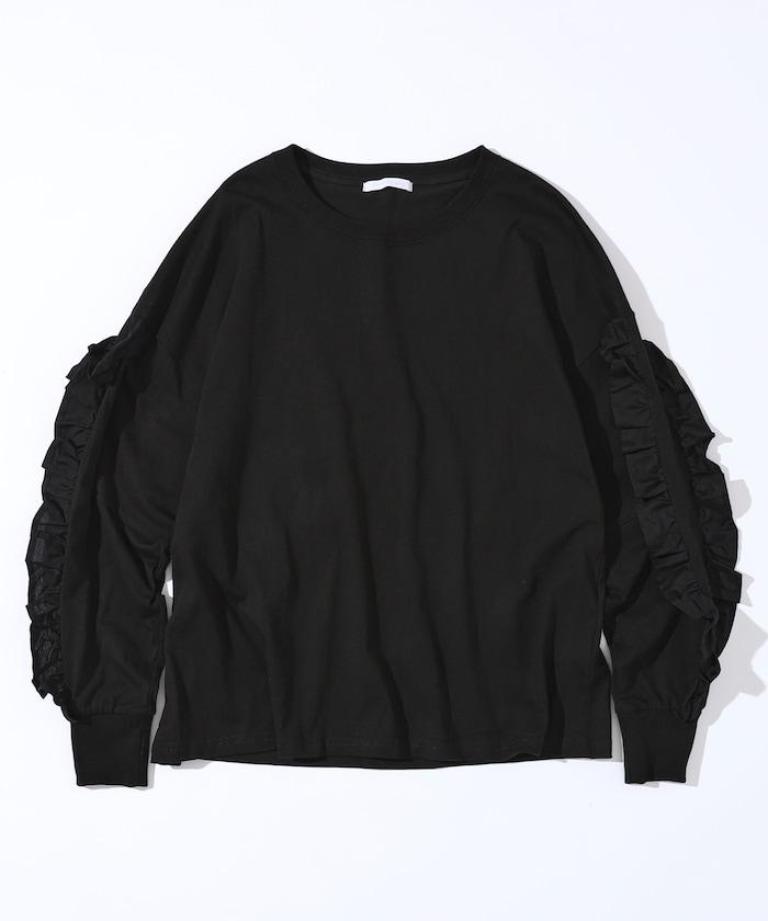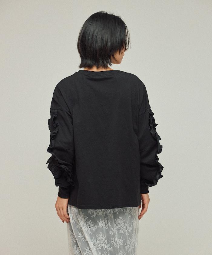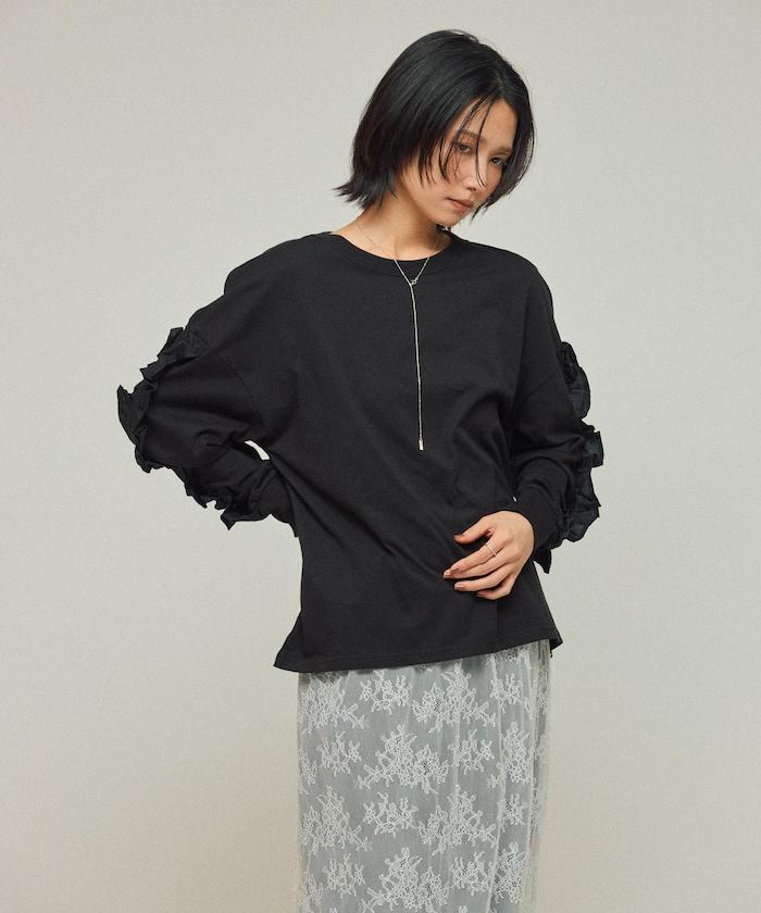 荷葉邊部分採用編織面料,呈現出立體輪廓,是一款可以穿出女人味的長袖 T。