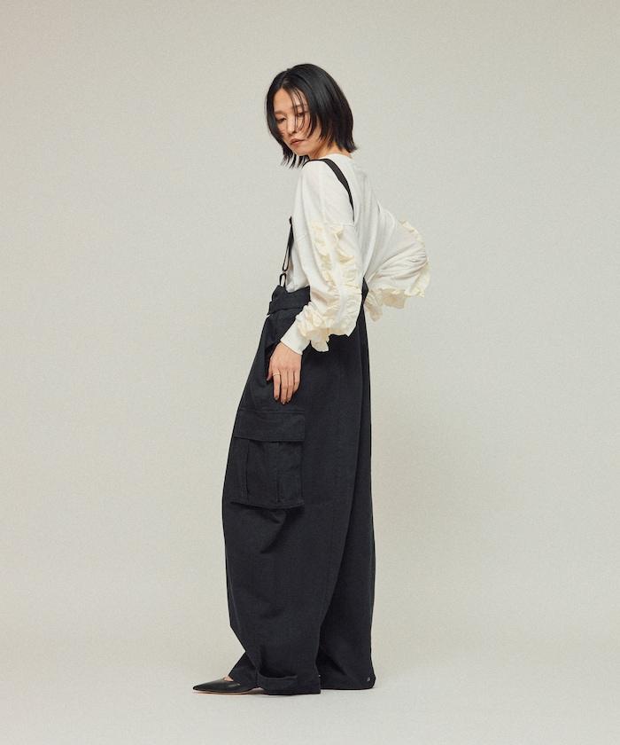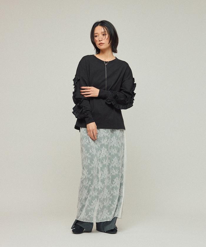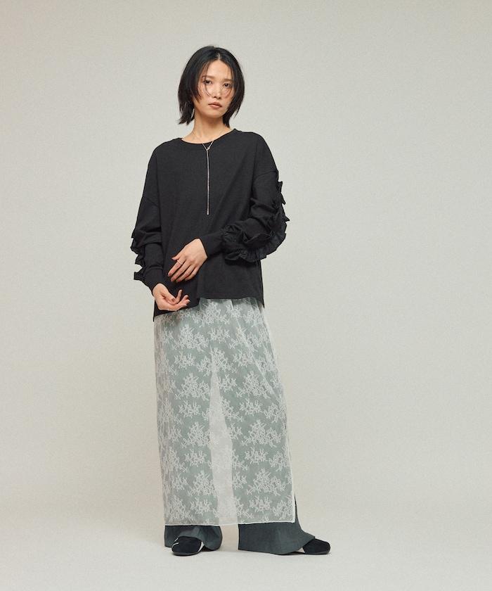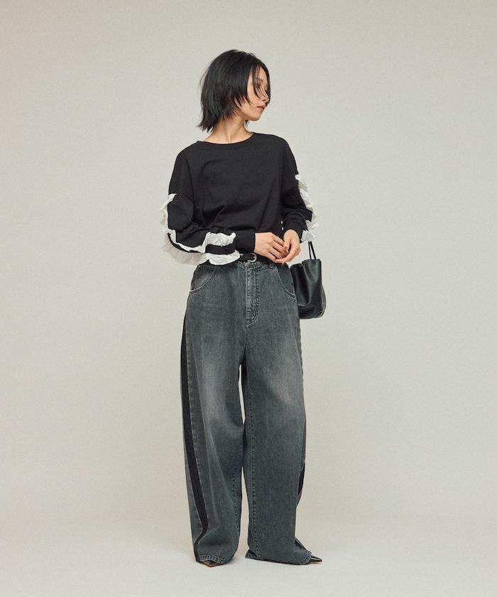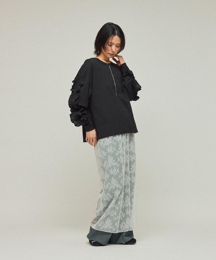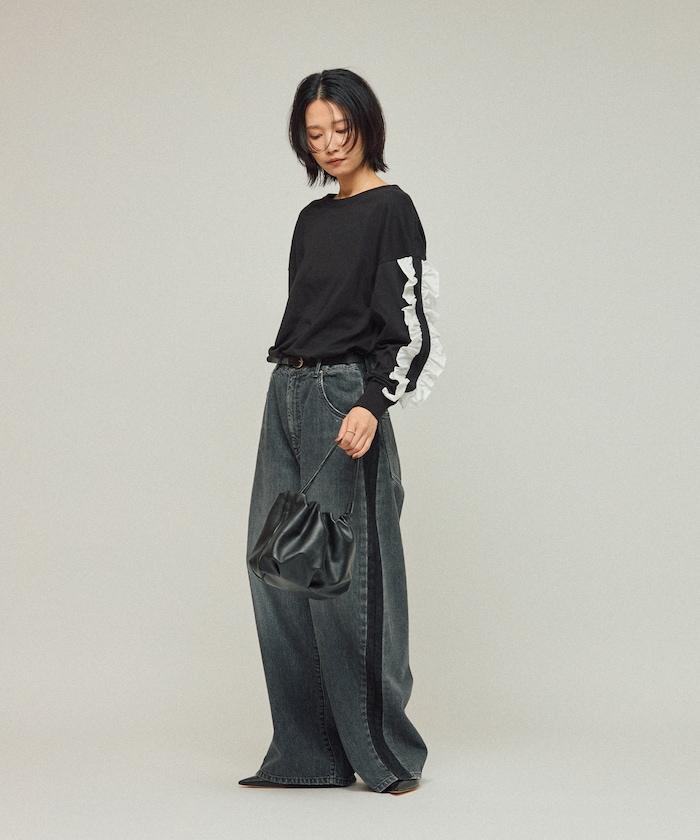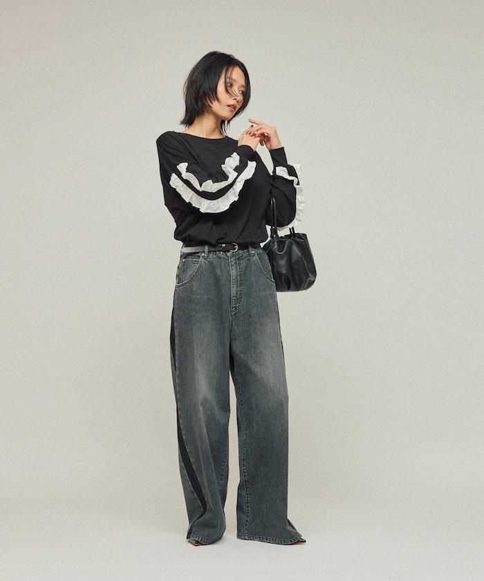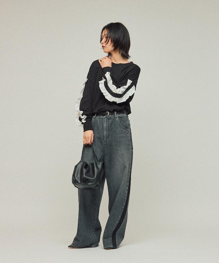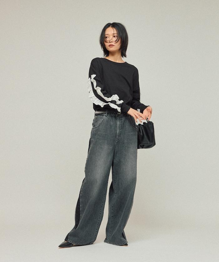 荷葉邊部分採用編織面料,呈現出立體輪廓,是一款可以穿出女人味的長袖 T。