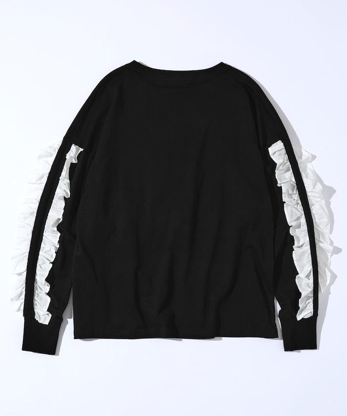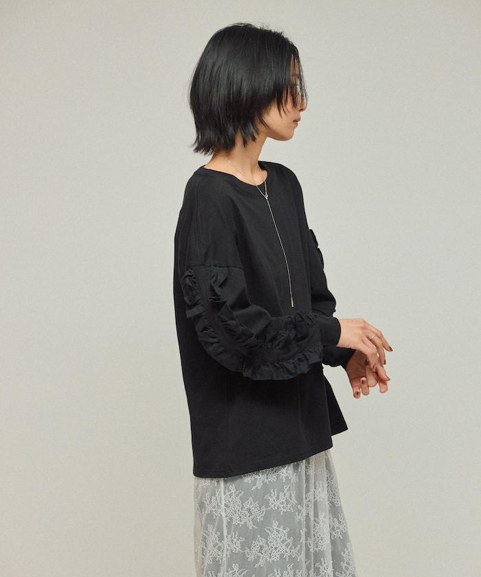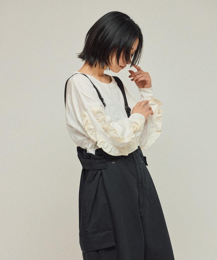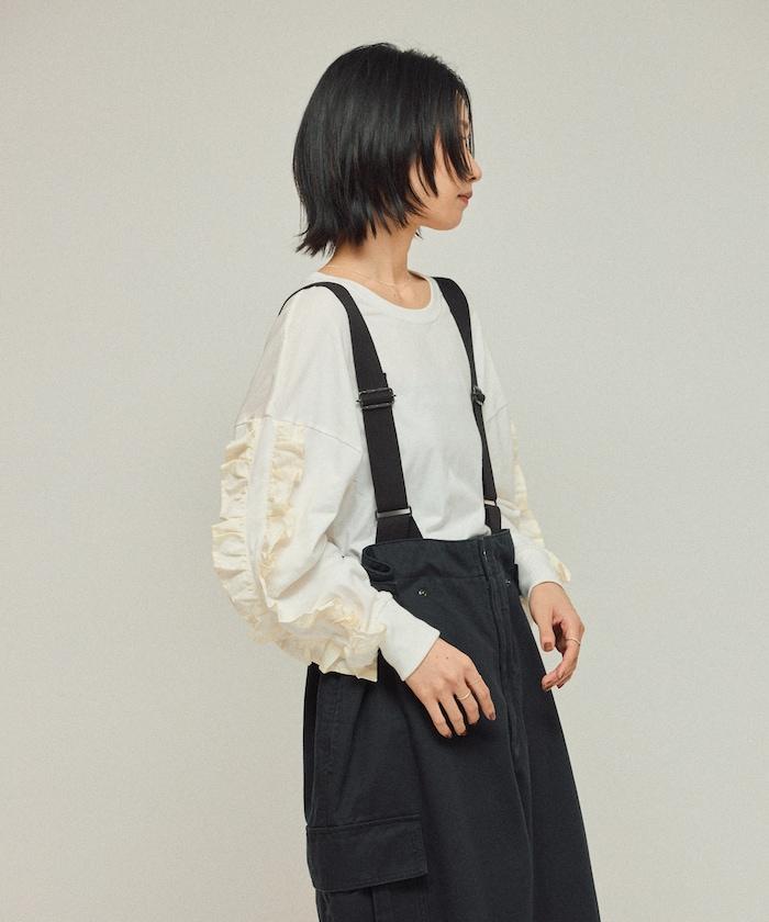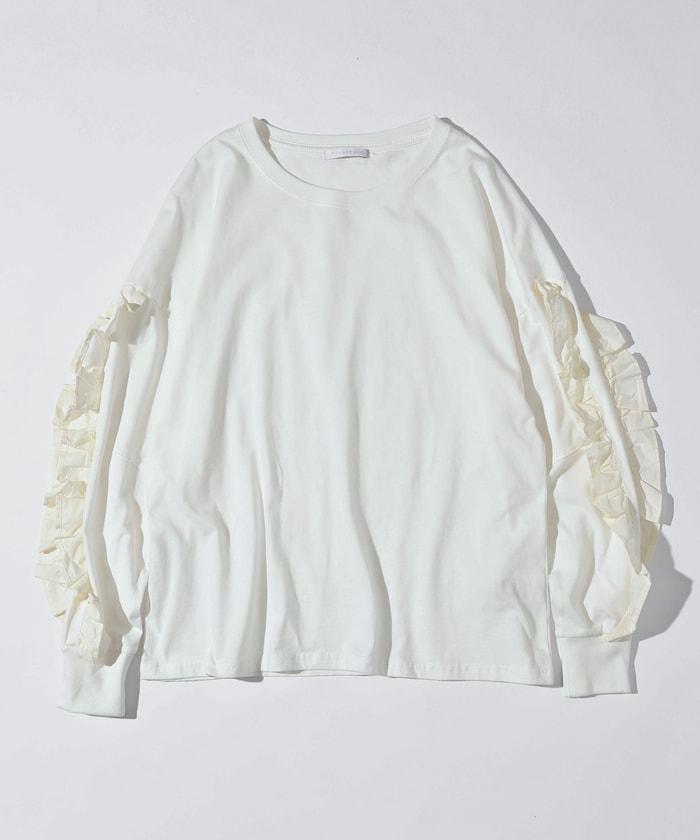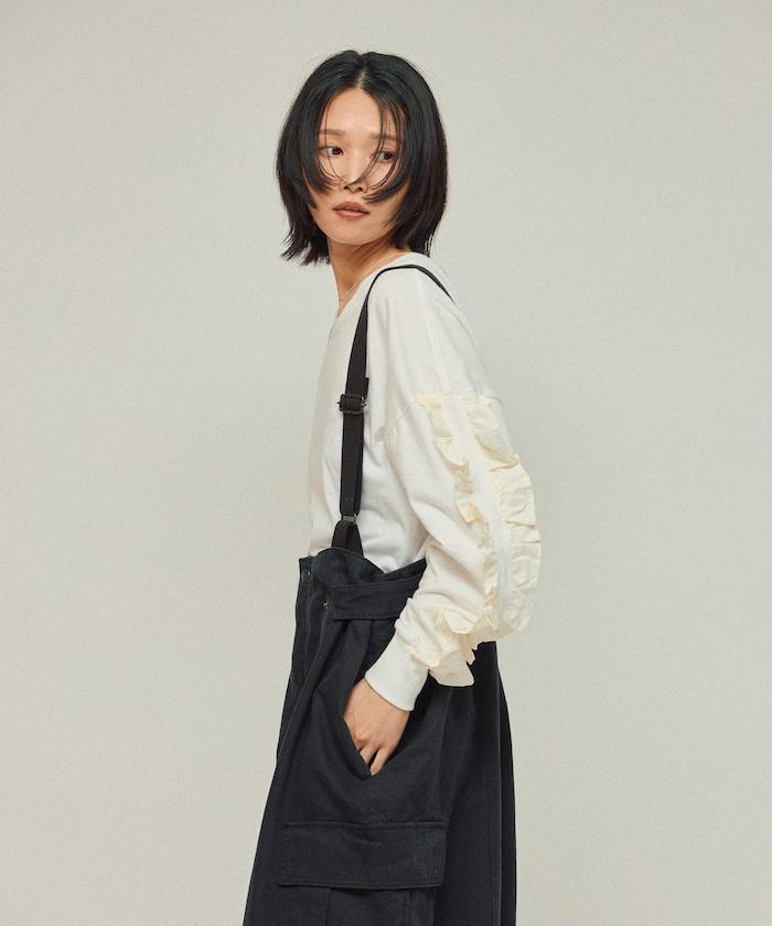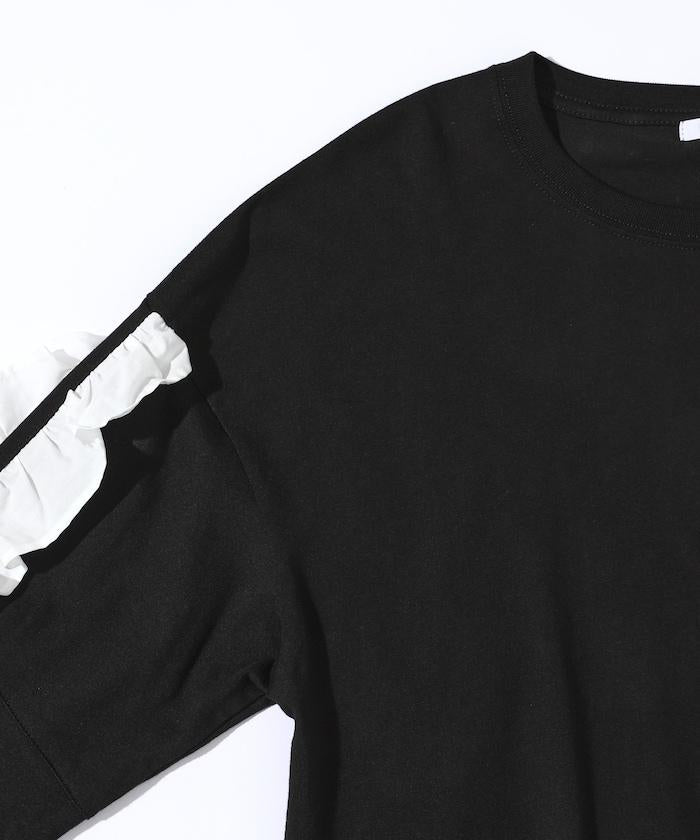 有機棉 袖飾邊 長袖T恤 / 長袖T恤