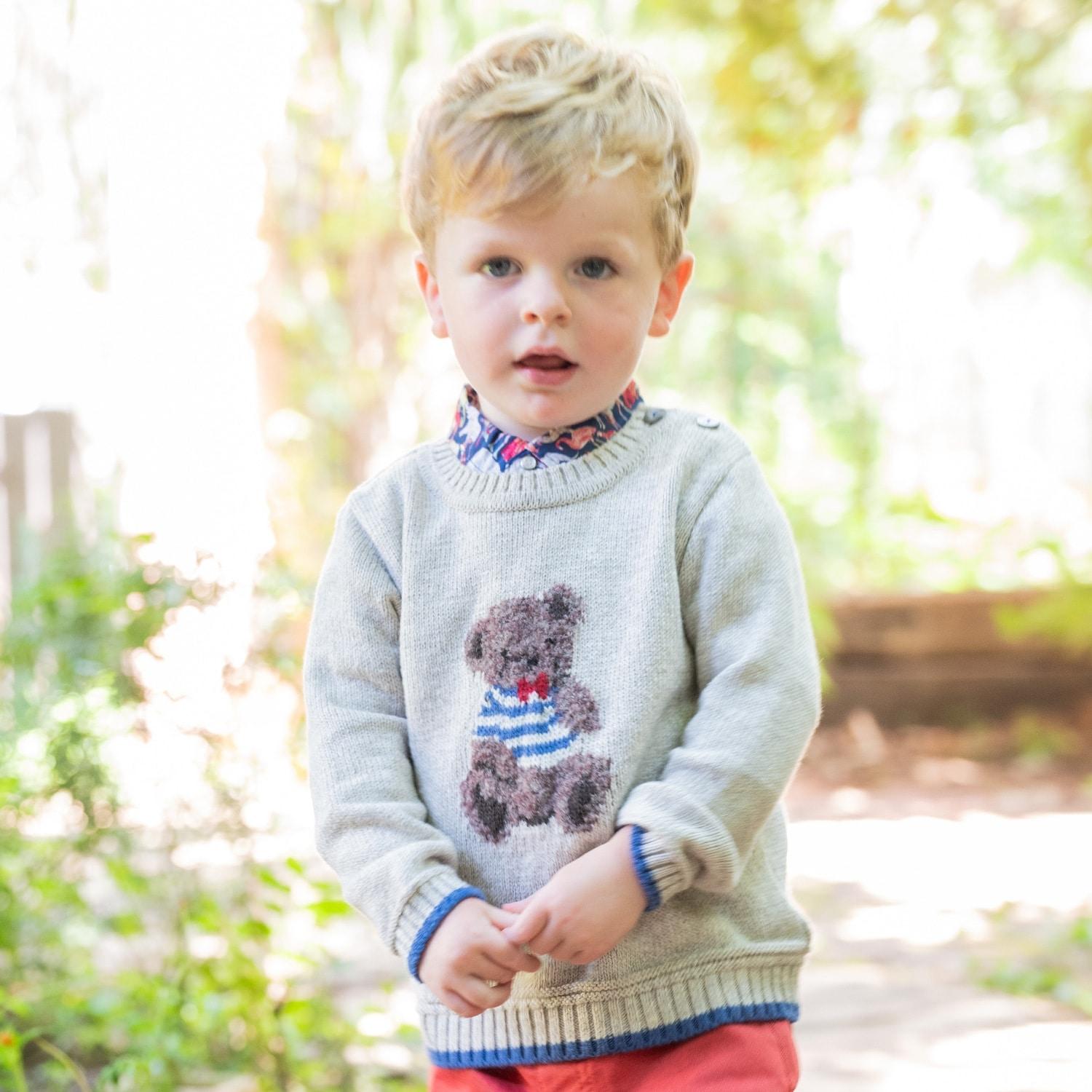 印有泰迪熊坐姿圖案的毛衣非常吸引人。