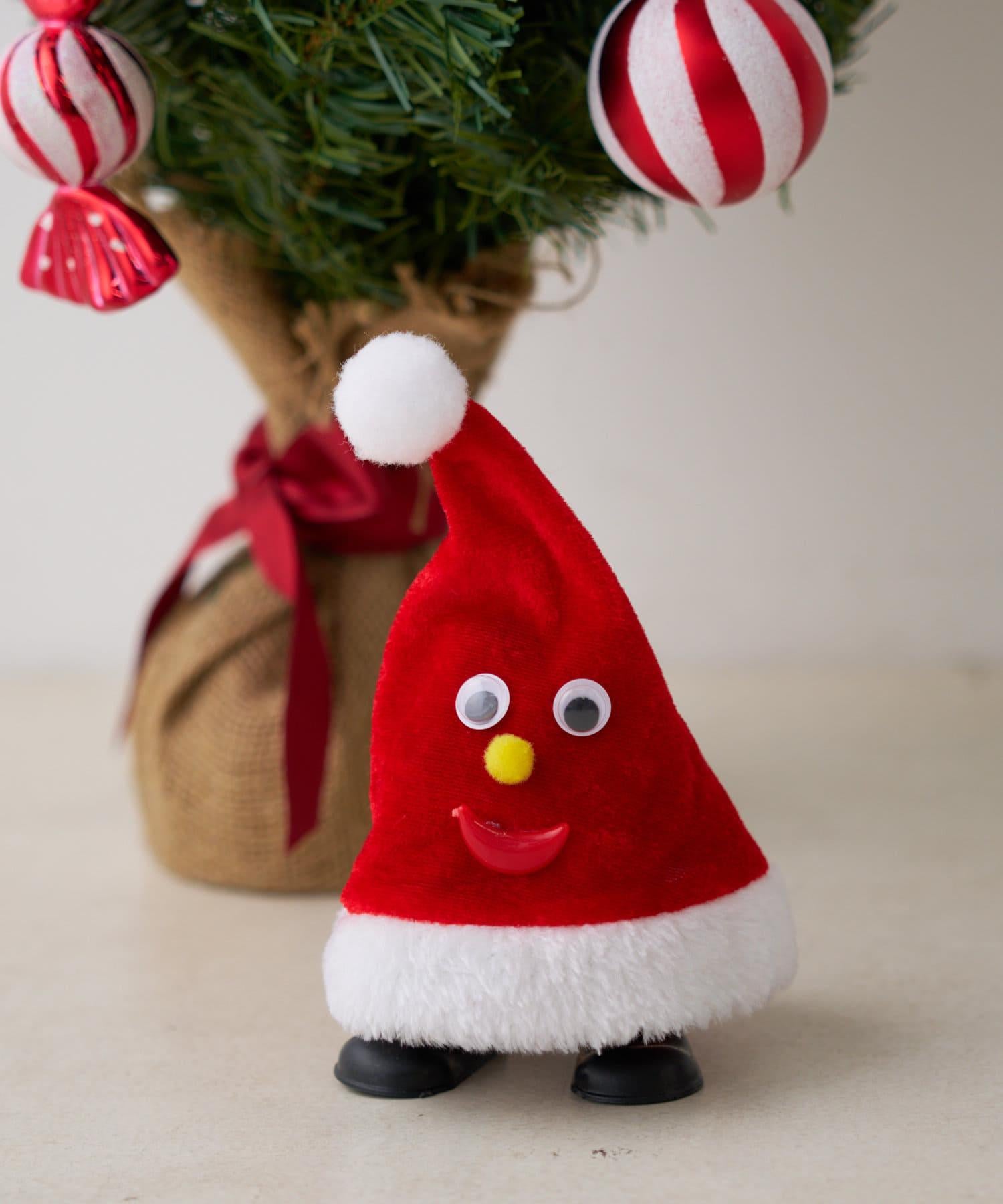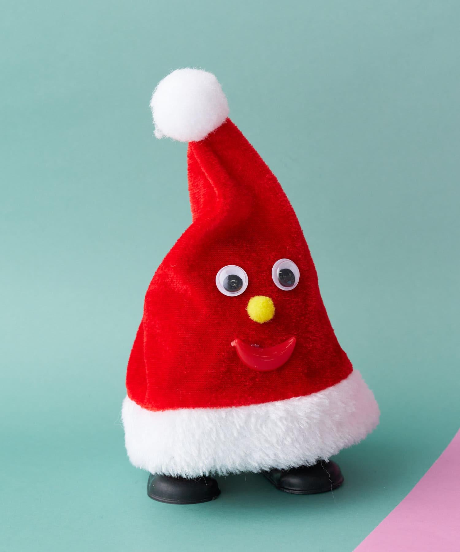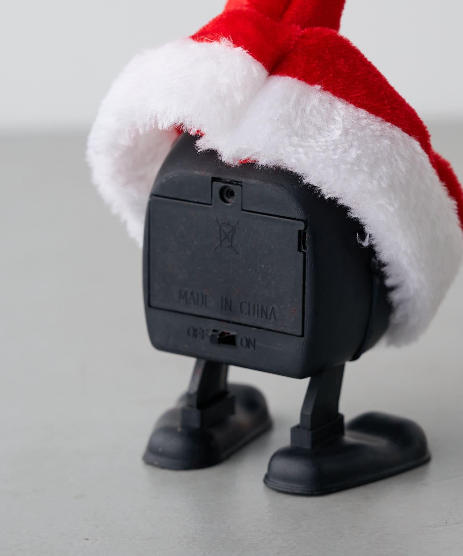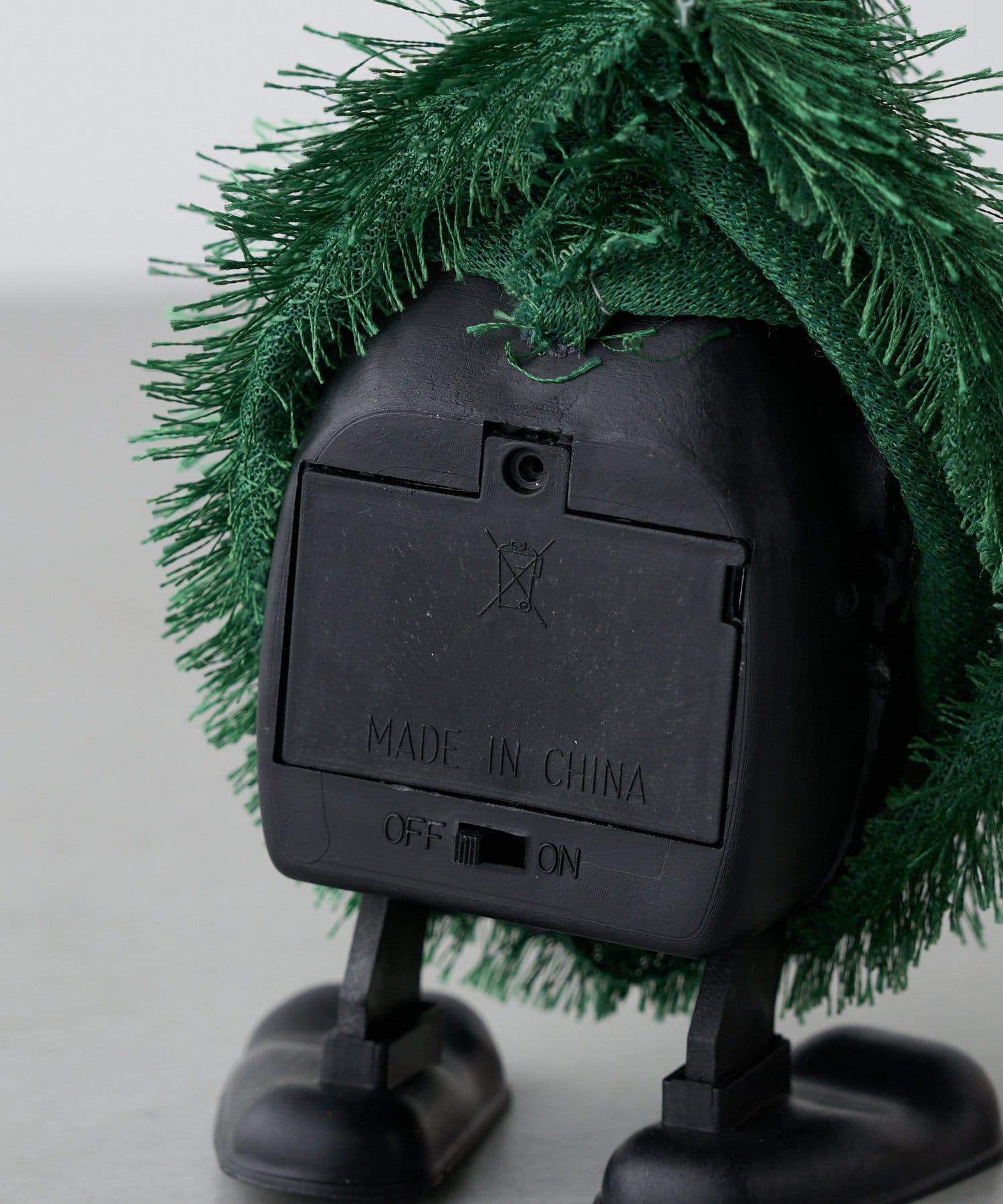 打開開關後,聖誕老人帽子上的小紅帽和頭上掛著鈴鐺的大樹就會隨著叮叮噹的音樂開始奔跑。