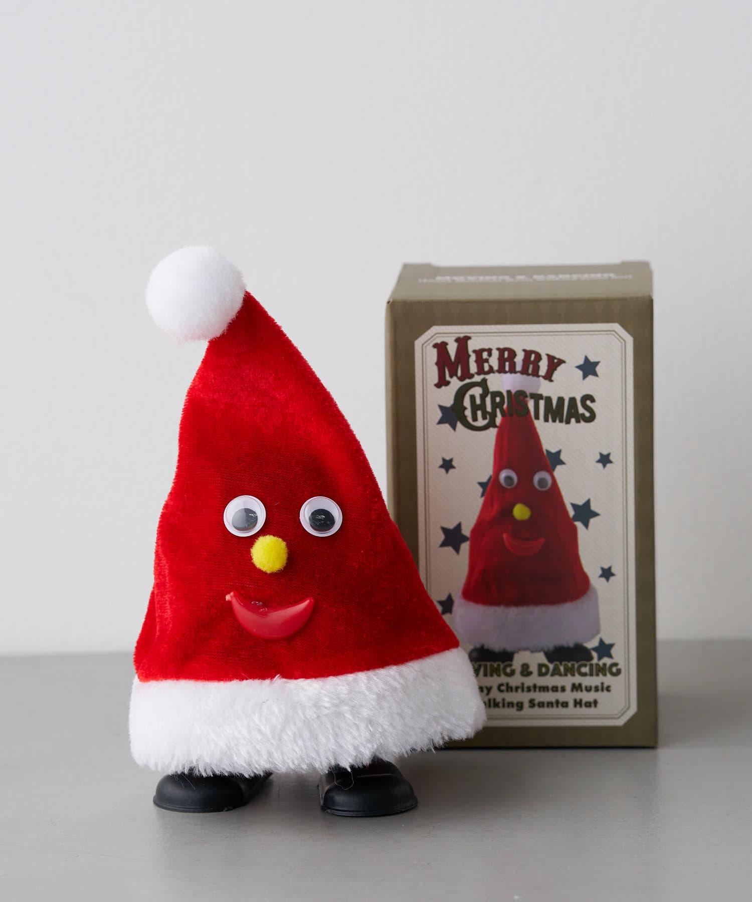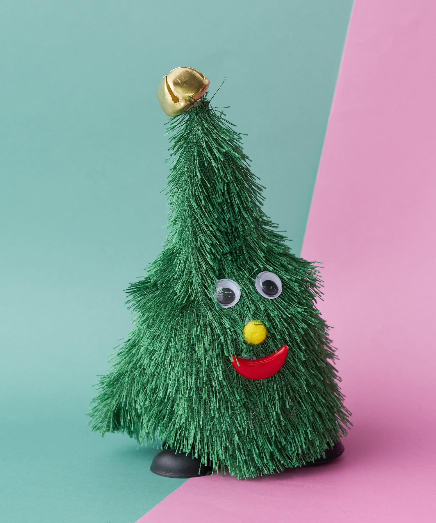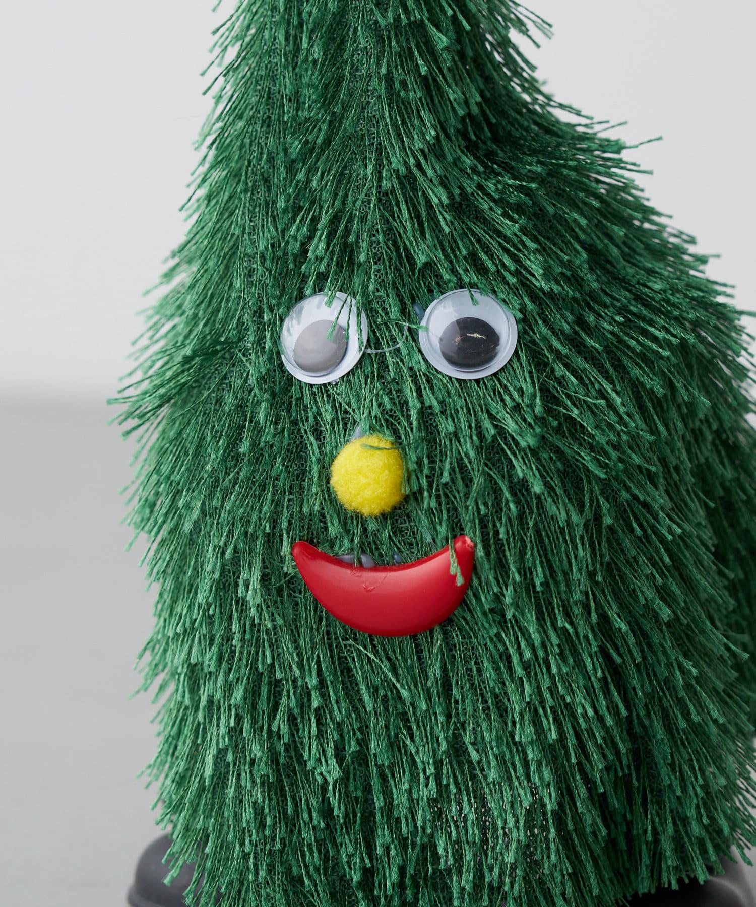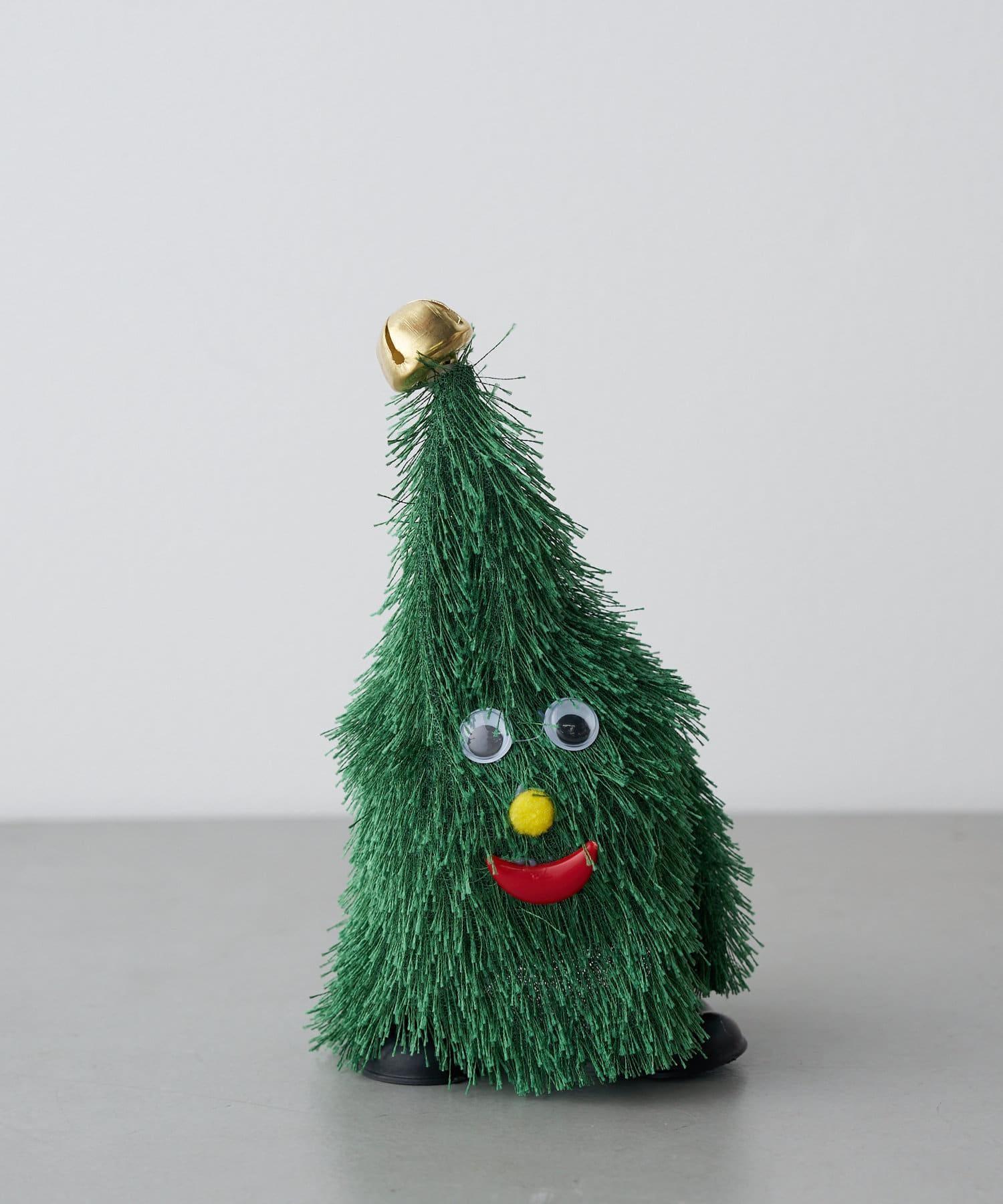 打開開關後,聖誕老人帽子上的小紅帽和頭上掛著鈴鐺的大樹就會隨著叮叮噹的音樂開始奔跑。