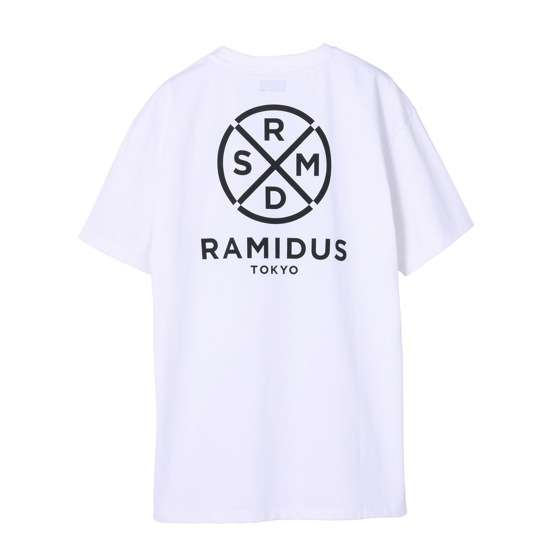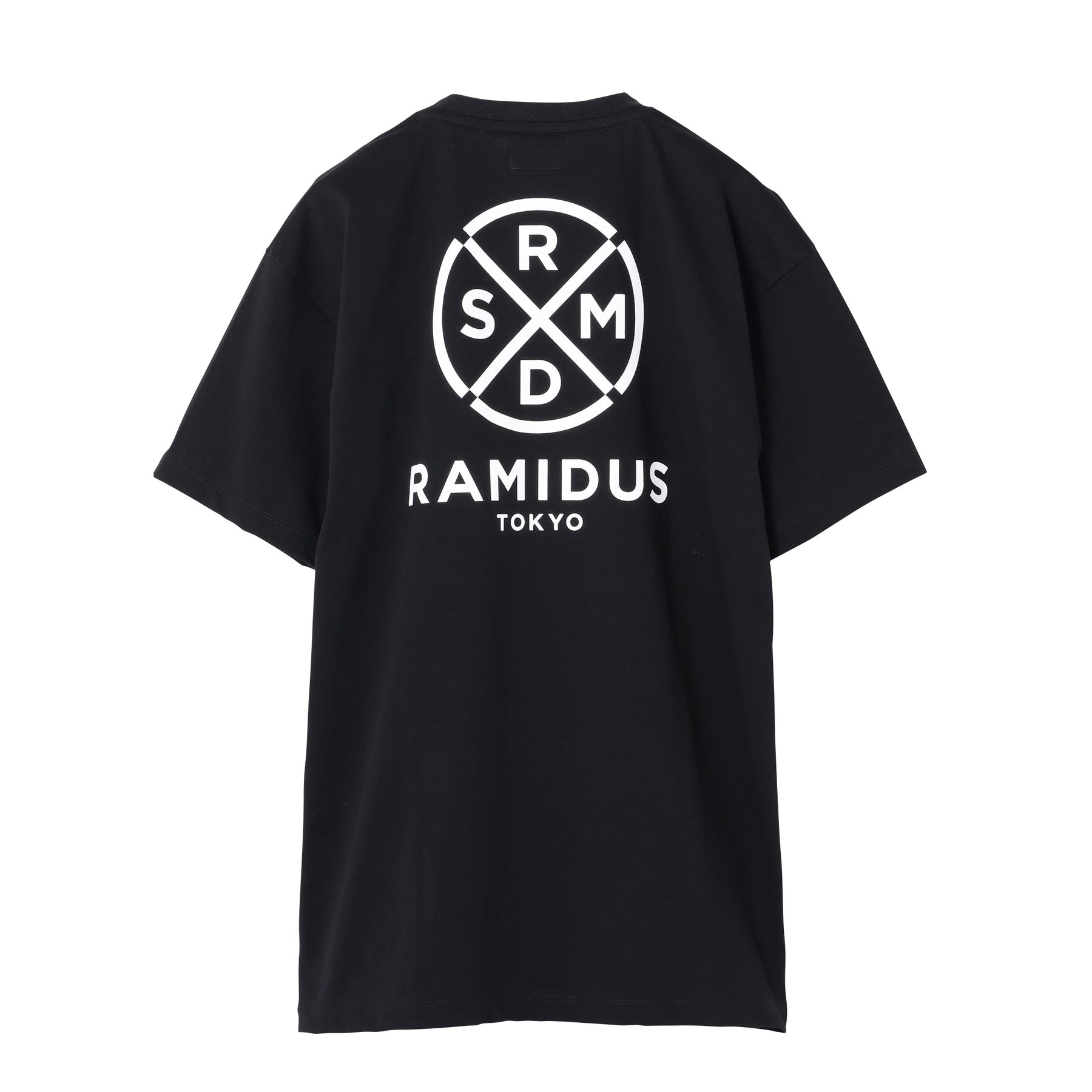 RAMIDUS 獨創的寬鬆剪裁。窄身短袖 T 恤,易於搭配任何服飾。正面和背面印有不同大小的車輪標誌。#The tee has a front crew neck, a back crew neck, a back zip fastening.