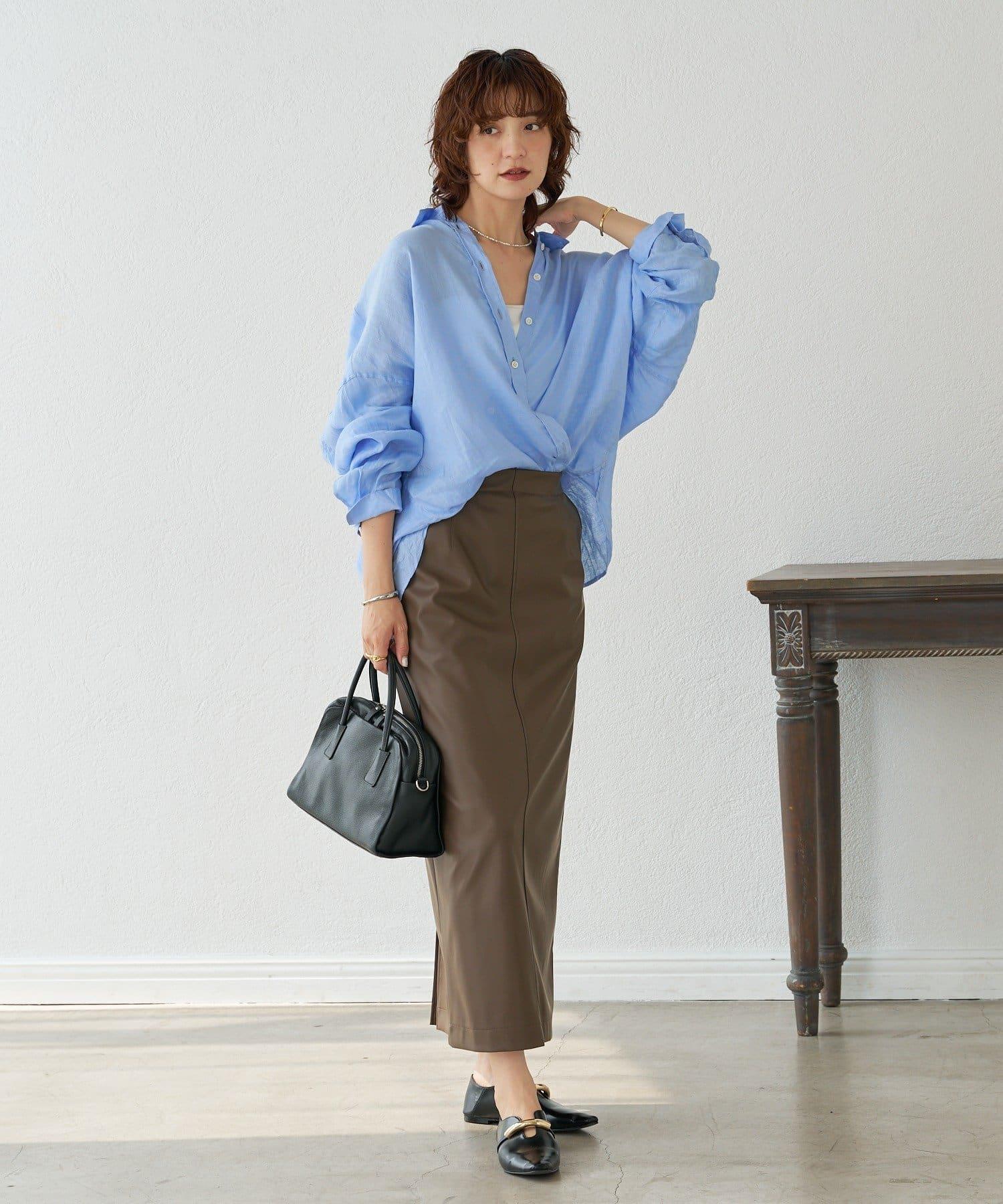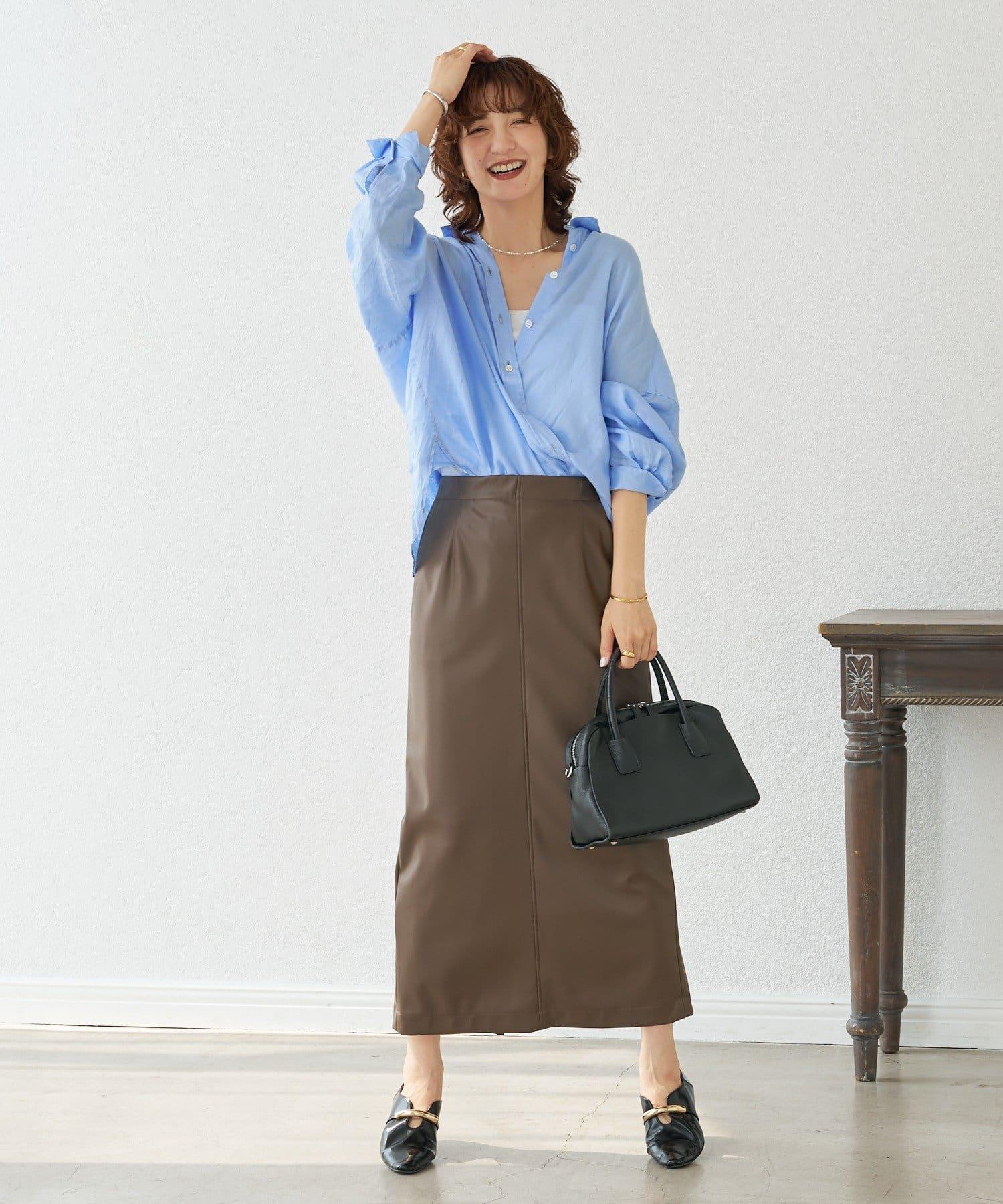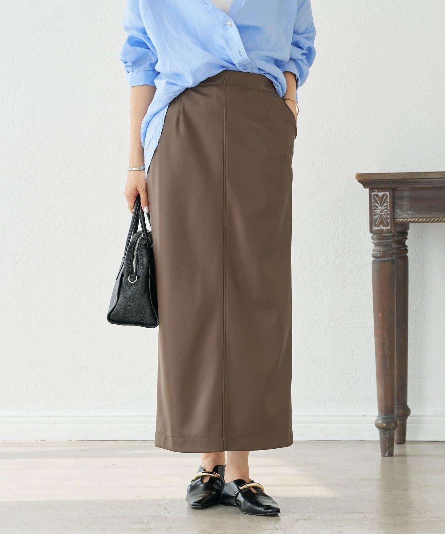 【本季流行】合成皮革緊身裙/8月下旬發貨預定