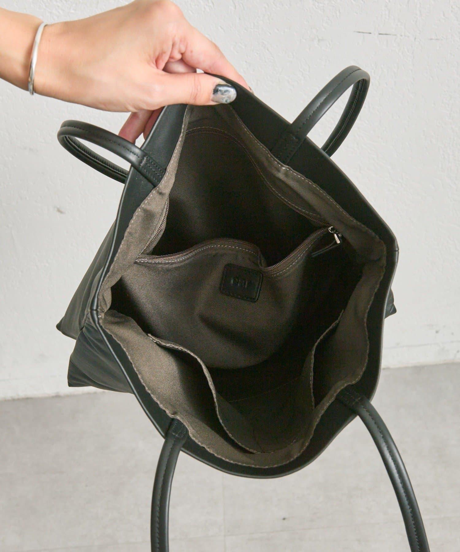 這款皮革手提包採用簡約設計,外觀樸實無華,給人一種精緻、都市的感覺。