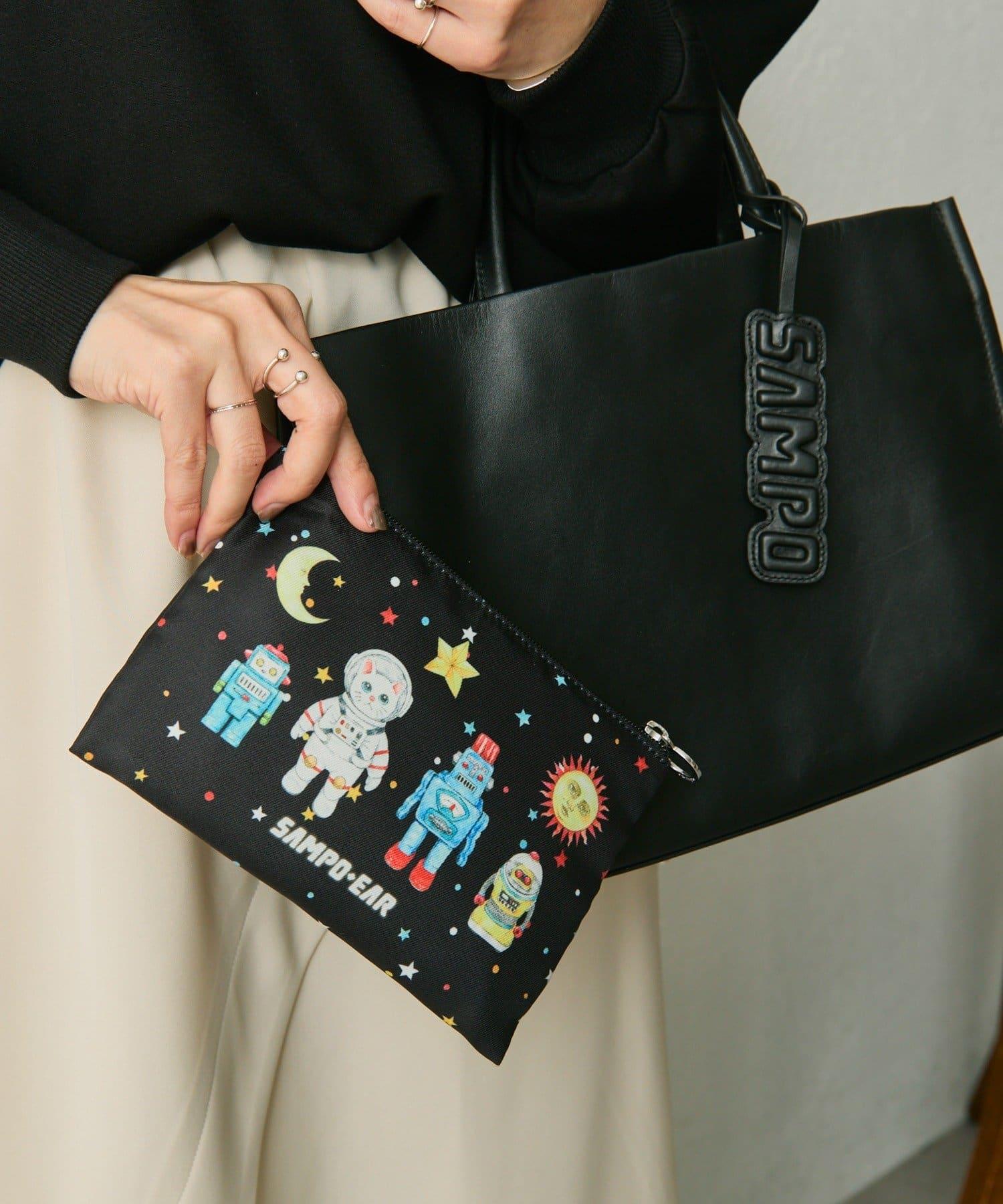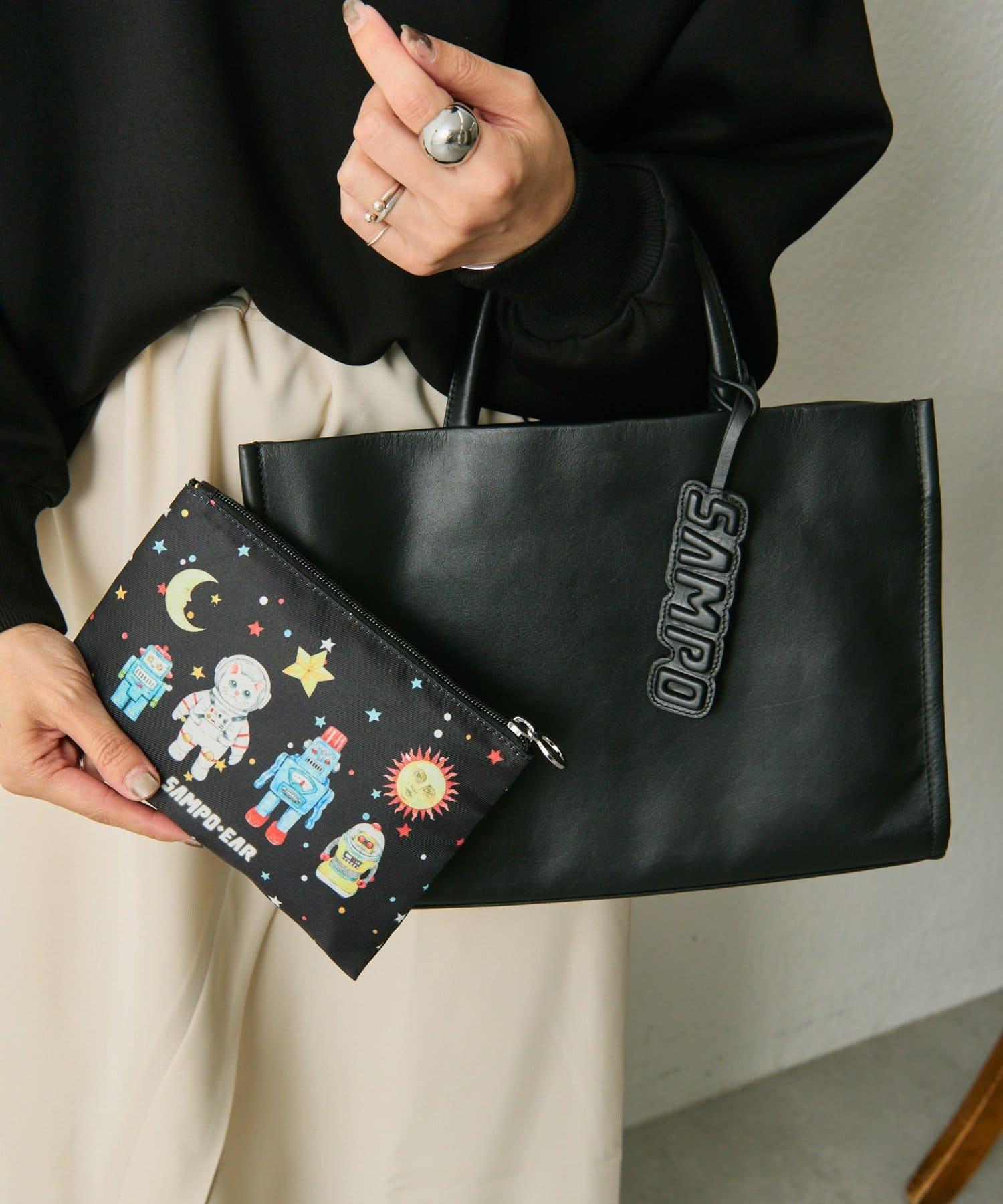 預約商品《本革》sampo×ear聯名 太空風格皮革方形托特包
