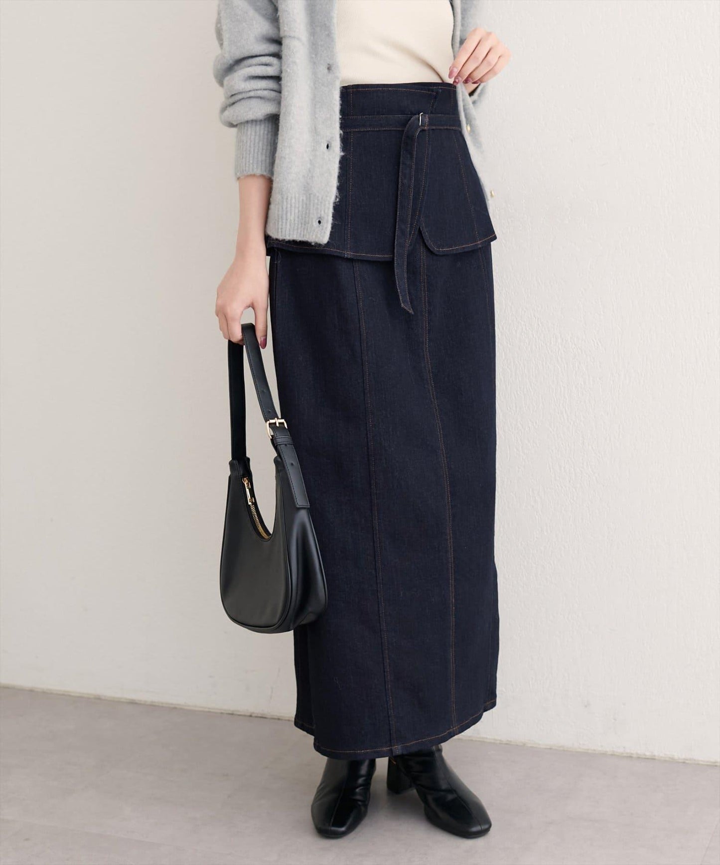 束腰帶牛仔半身裙