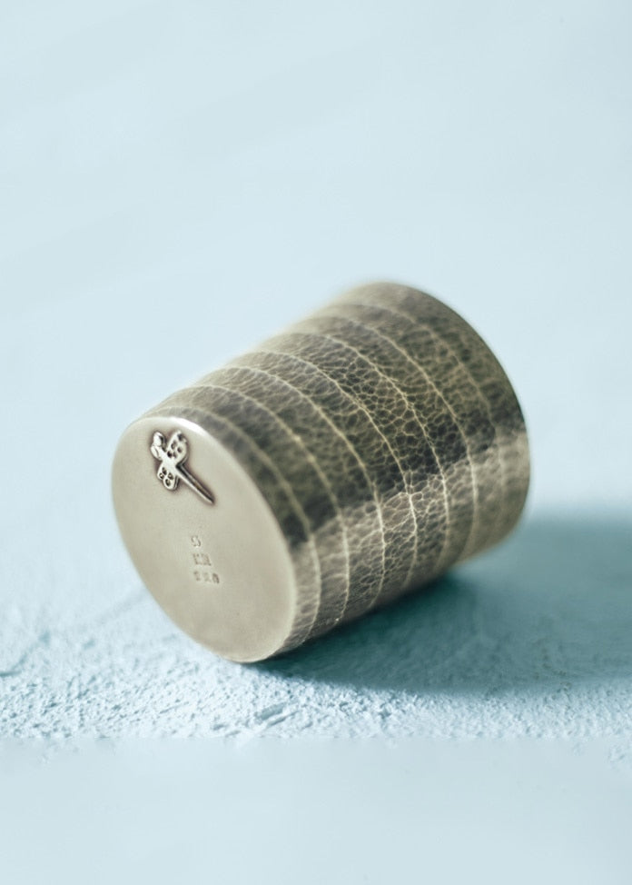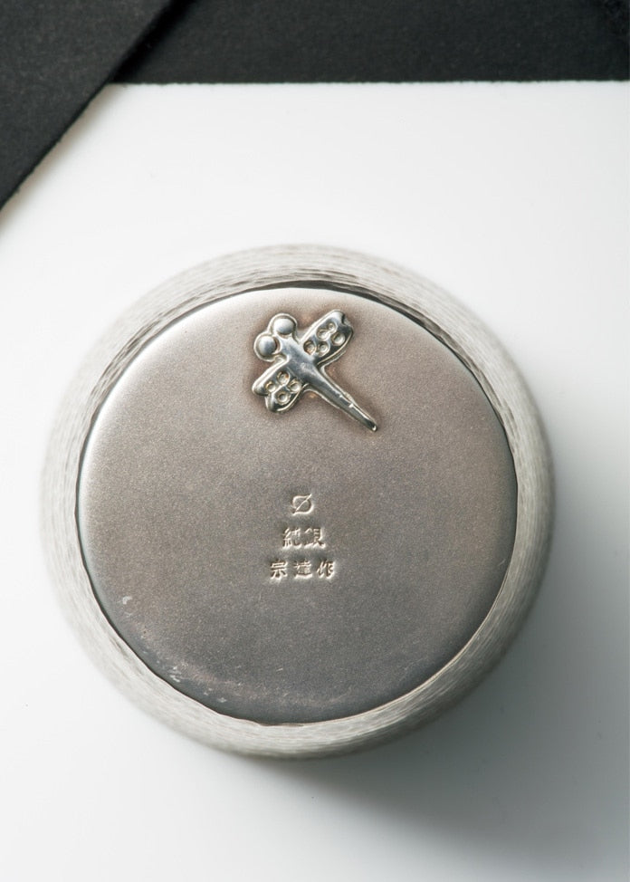 石見銀山銀礦和佐渡金銀礦在江戶時期蓬勃發展,銀器生產迅速增加。經營銀器的鑄造廠,被稱為 "銀座",被限制在江戶,銀器工匠,被稱為 "銀市",從全國各地聚集。劍的邊緣、Kiseru和Kanzashi(裝飾性發卡)都有精緻的裝飾品,👍的冶煉和雕刻技術得到了磨練。 一張純銀被塑造成。表面用傳統技術'kinkobi'進行處理。設計是清酒屋頂,一隻象徵著好運的蜻蜓彷彿棲息在底部。