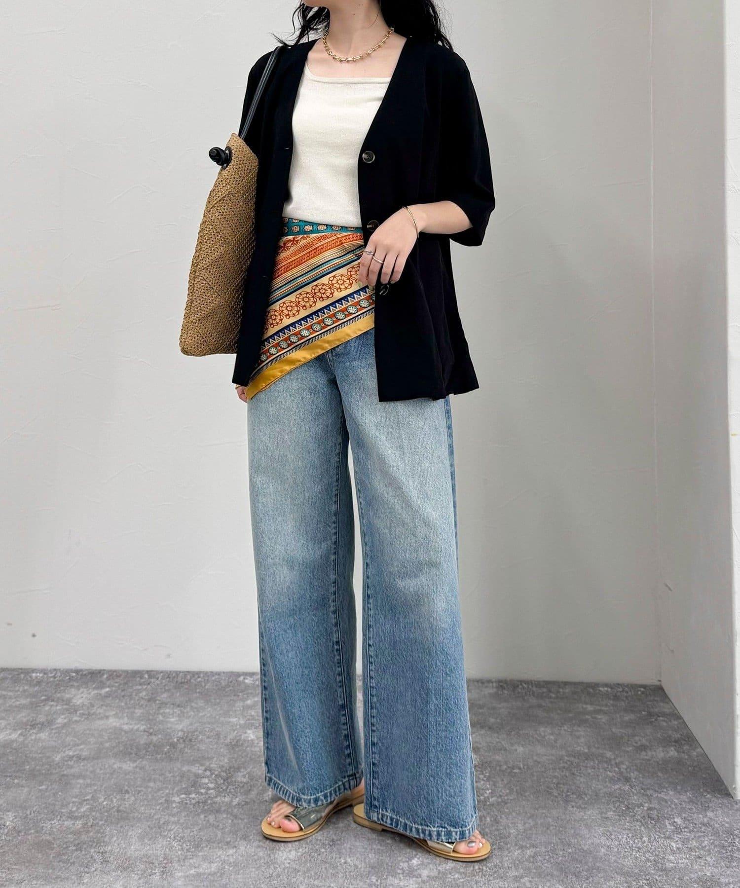 由於面料的特性,本產品的線頭在夾住時容易彈出。穿著時,請注意與皮帶、包包和周圍牆壁等粗糙表面的摩擦和卡住。