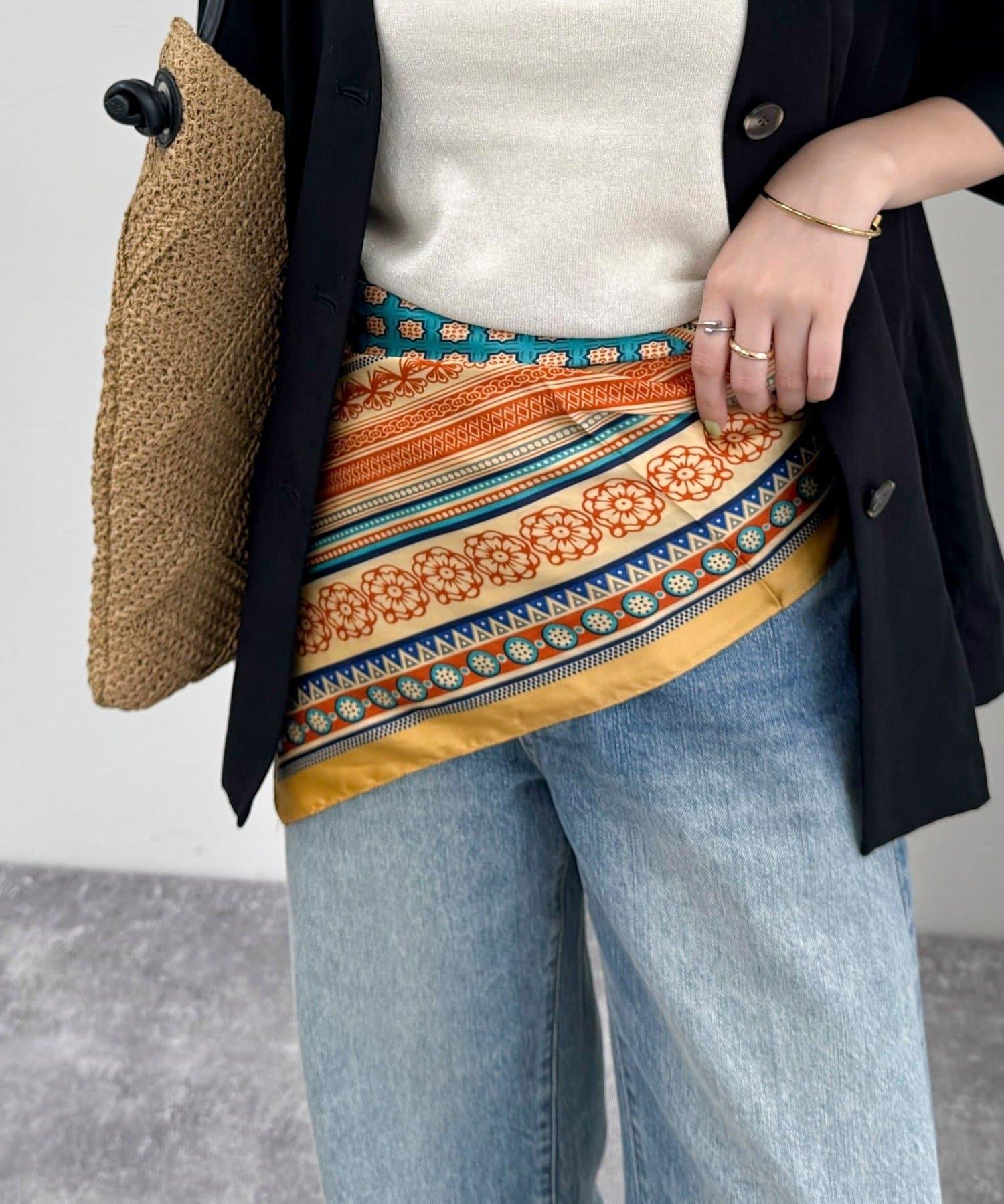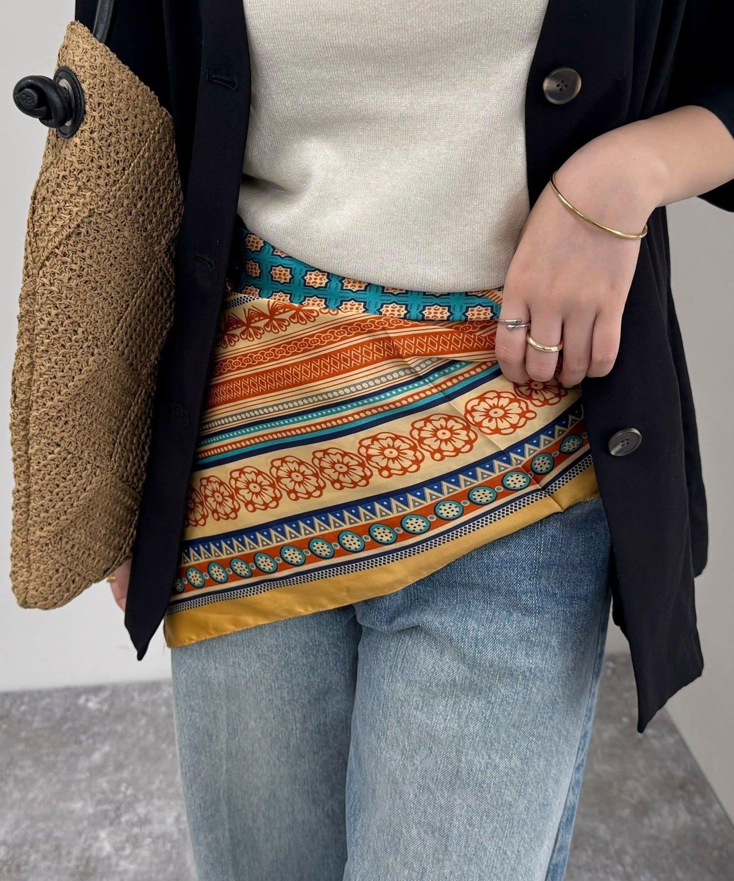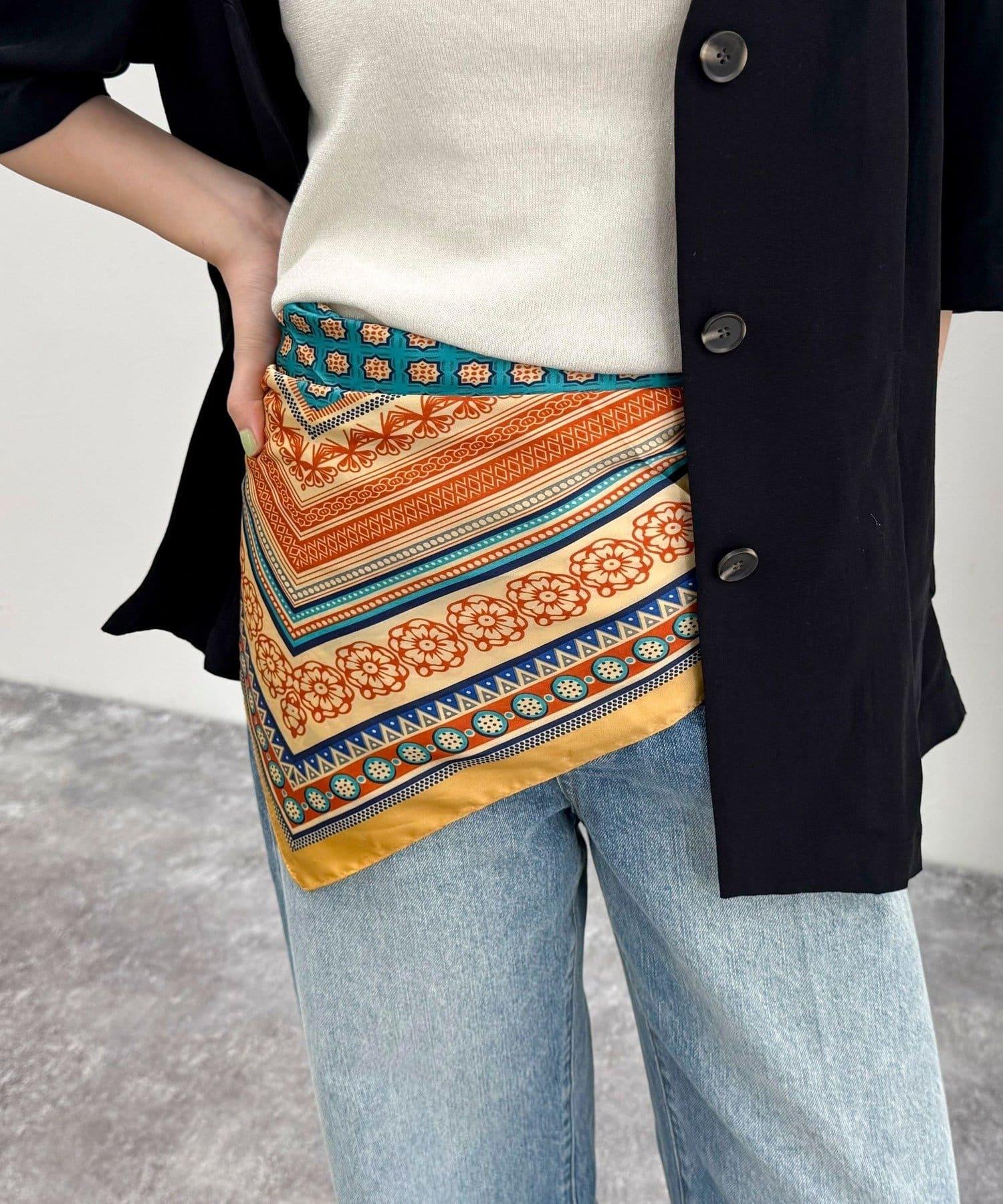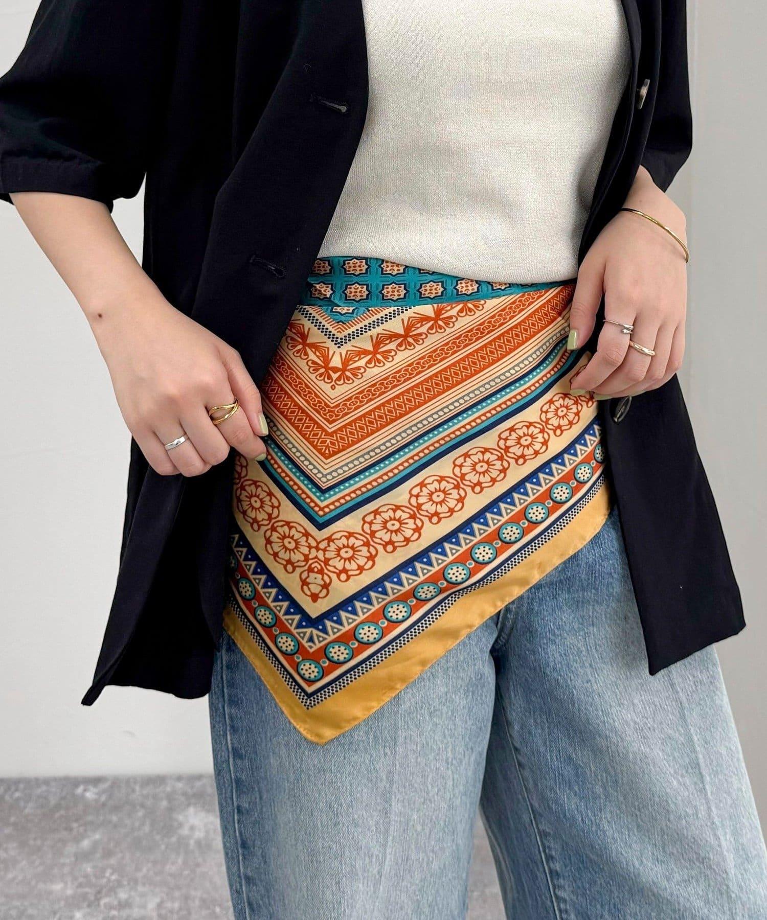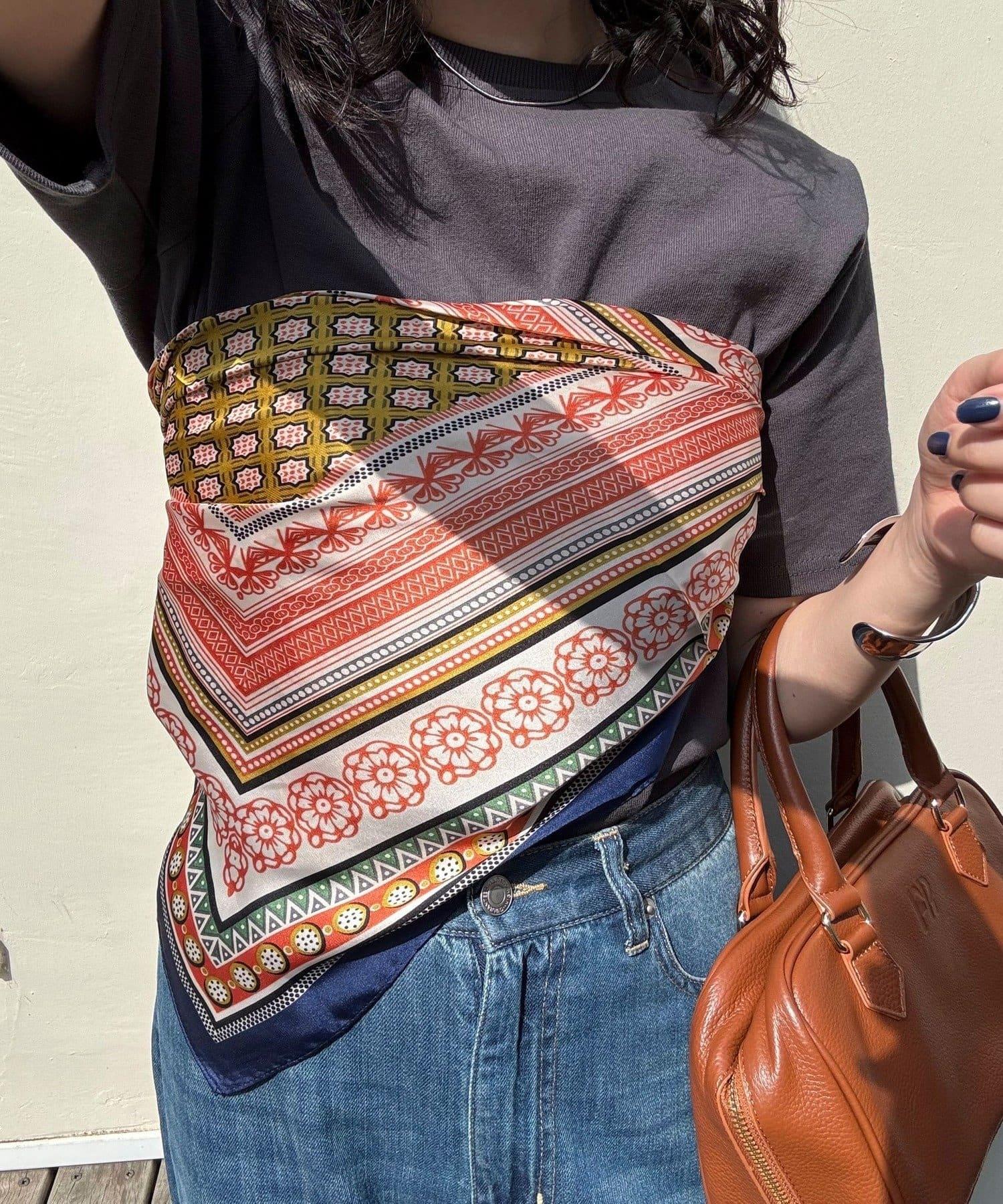 方形的剪裁使用方便,既可以圍在脖子上,也可以像半身裙一樣裹在胸前,還可以作為髮飾或包包的點綴。