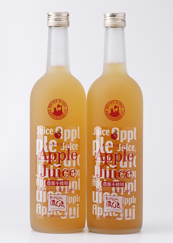 果汁100% 農藥不使用蘋果汁 青森產 "Sun Fuji" "Sun Jonna" 混合【720ml×2瓶裝】