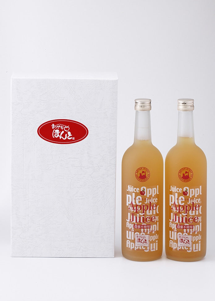 名稱 100%果汁,無農藥蘋果汁,由青森縣的三富士和聖喬納蘋果混合而成[720毫升×2瓶]。