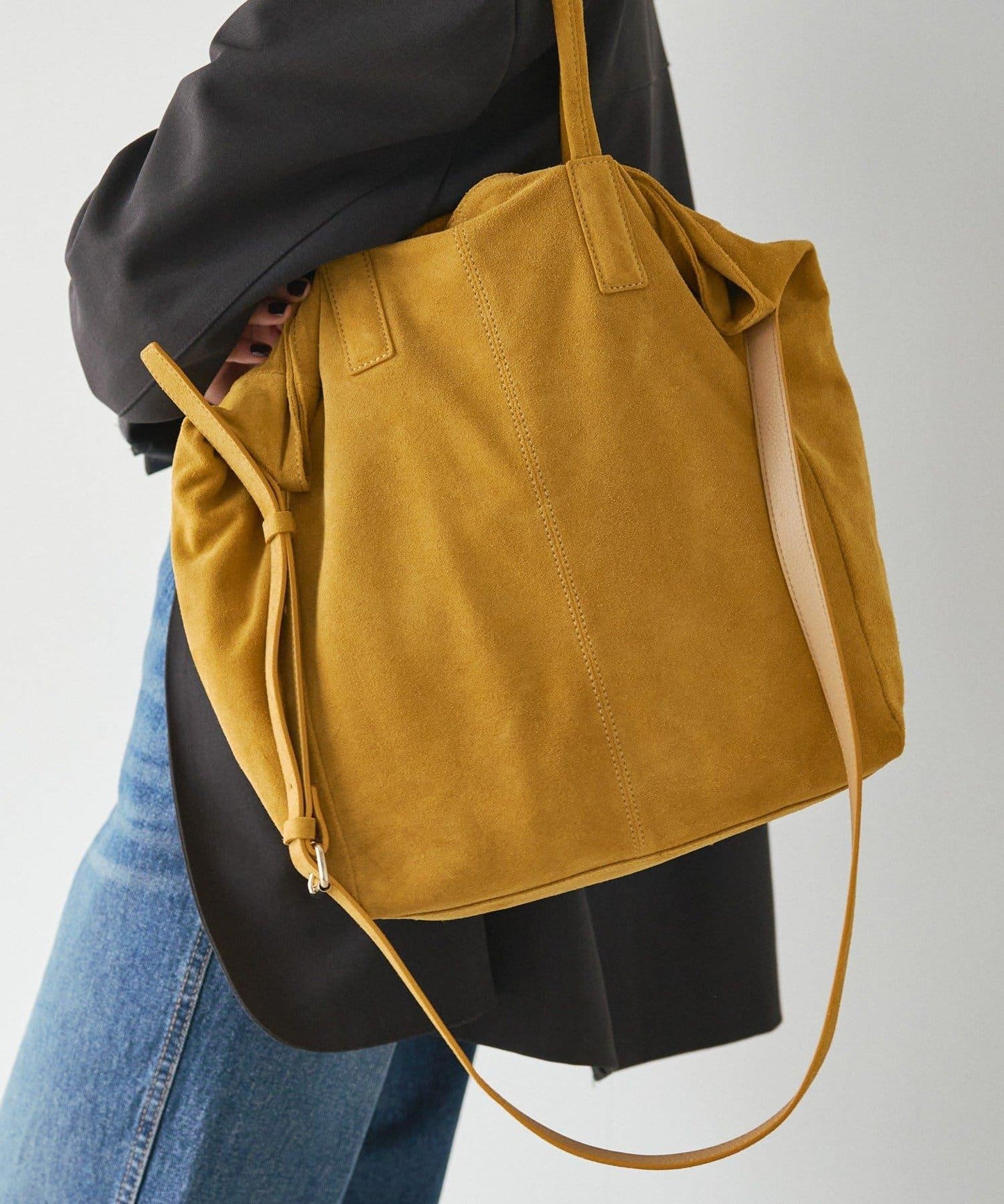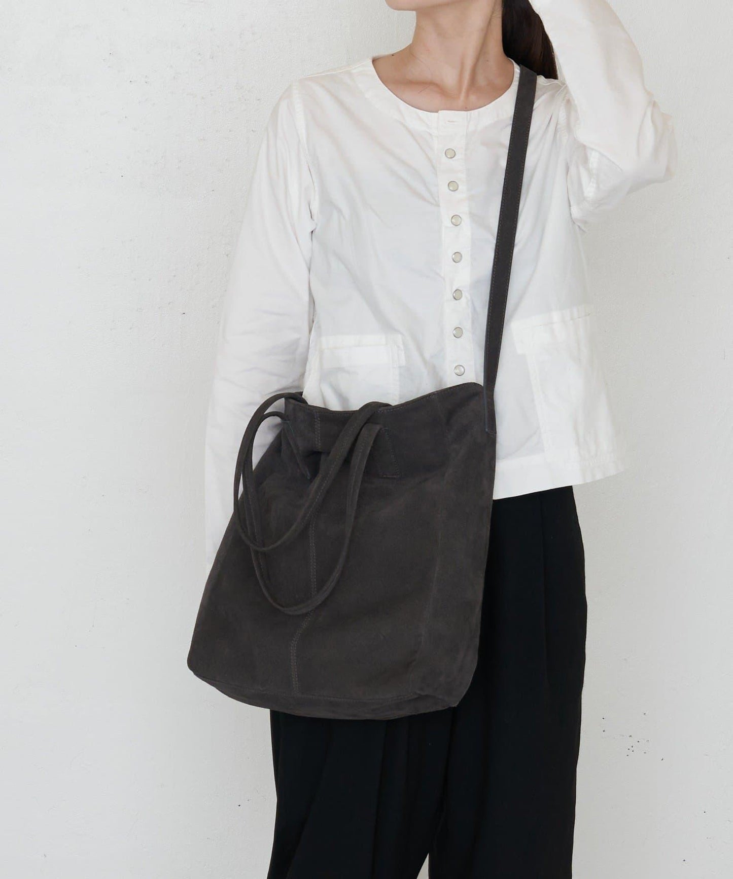 簡約精緻的麂皮手提包,可輕鬆融入任何場合。
