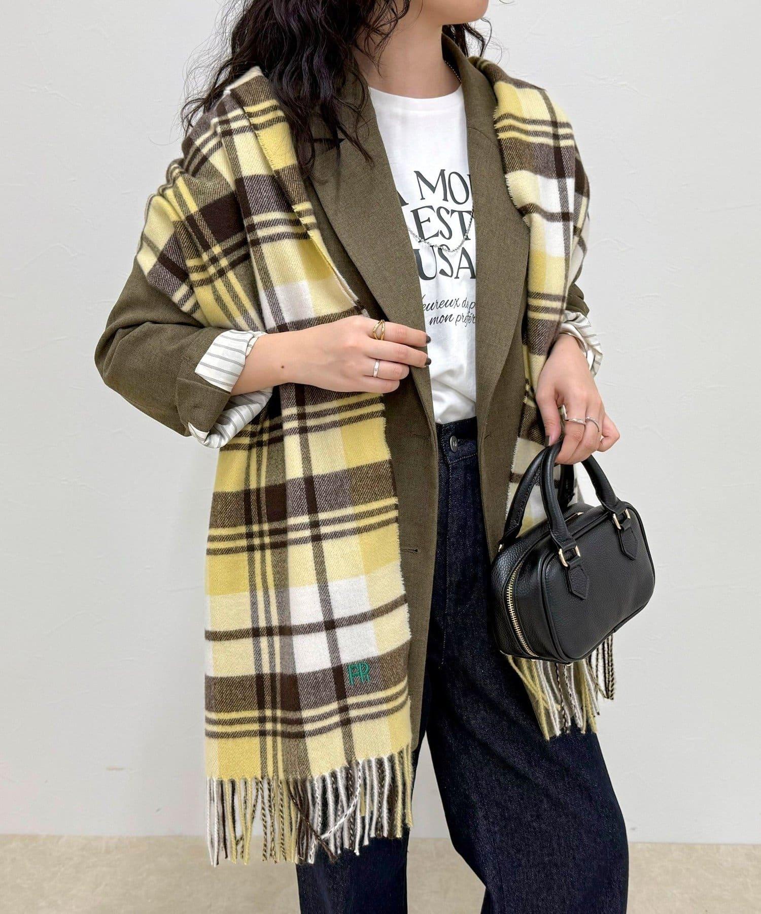 這款格紋圍巾提升了季節氛圍。