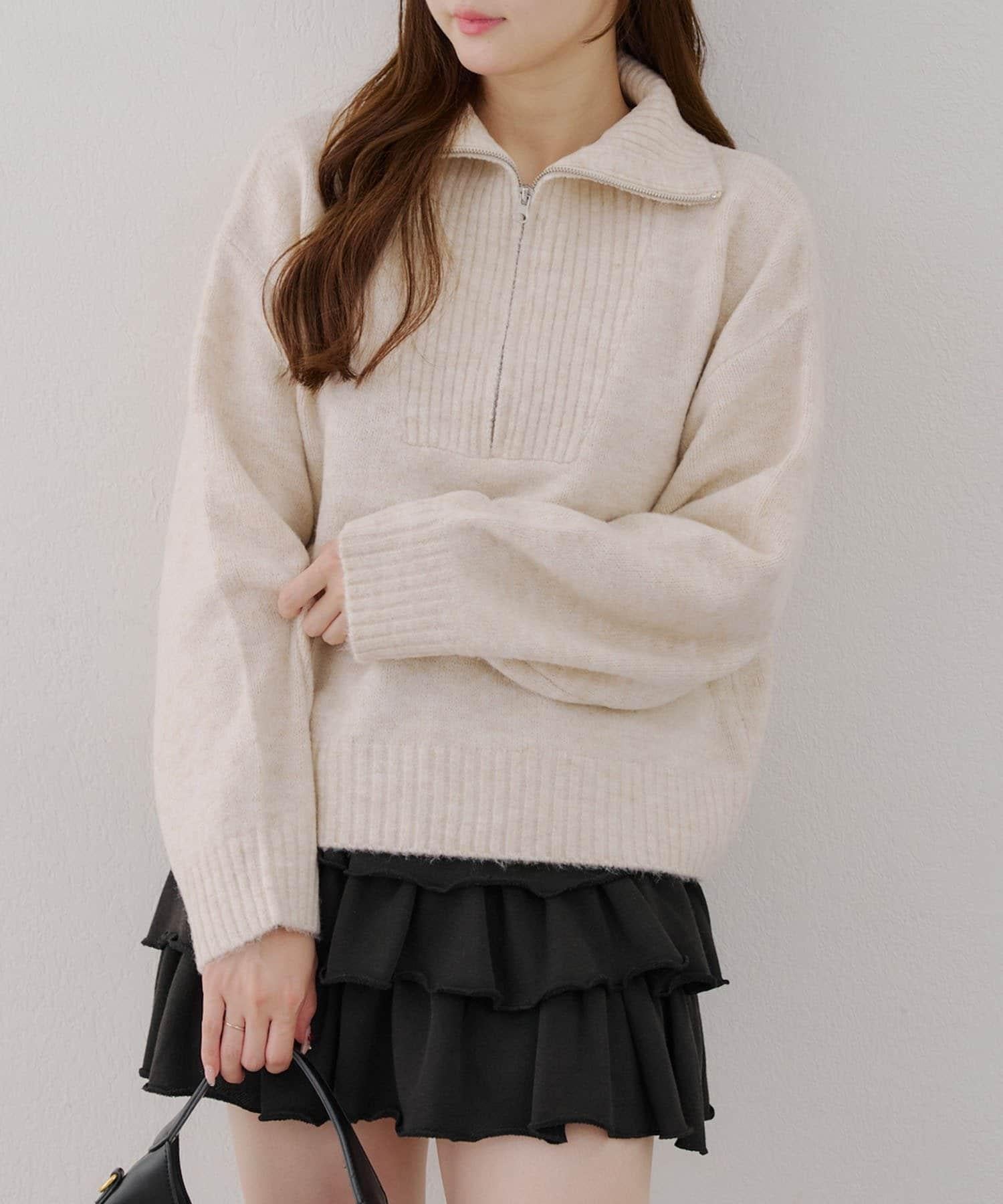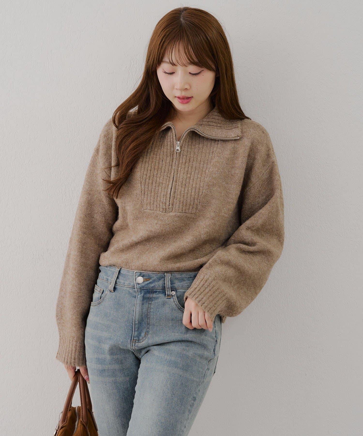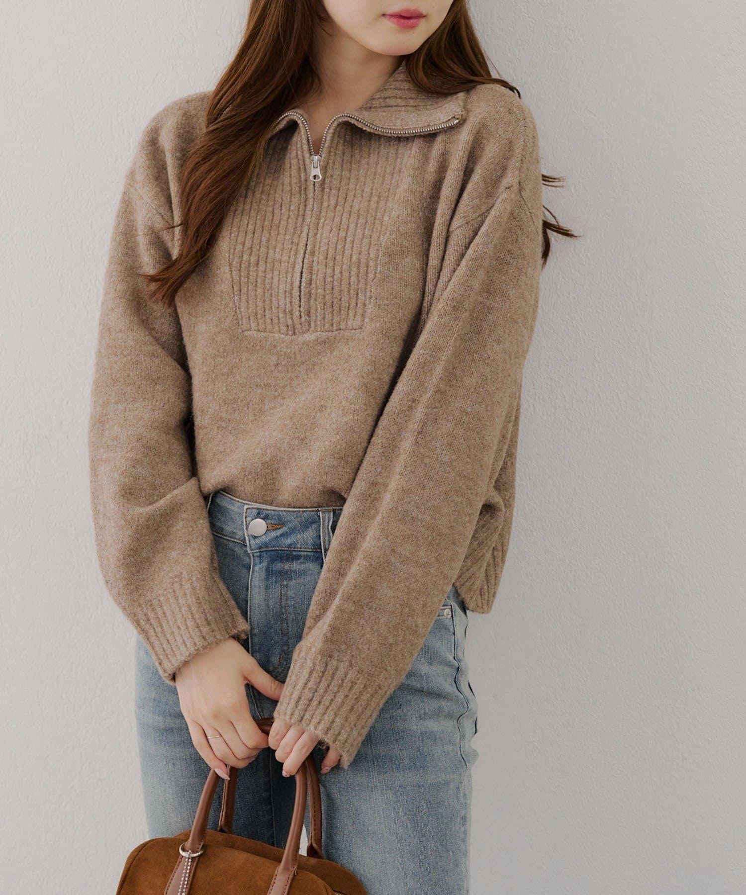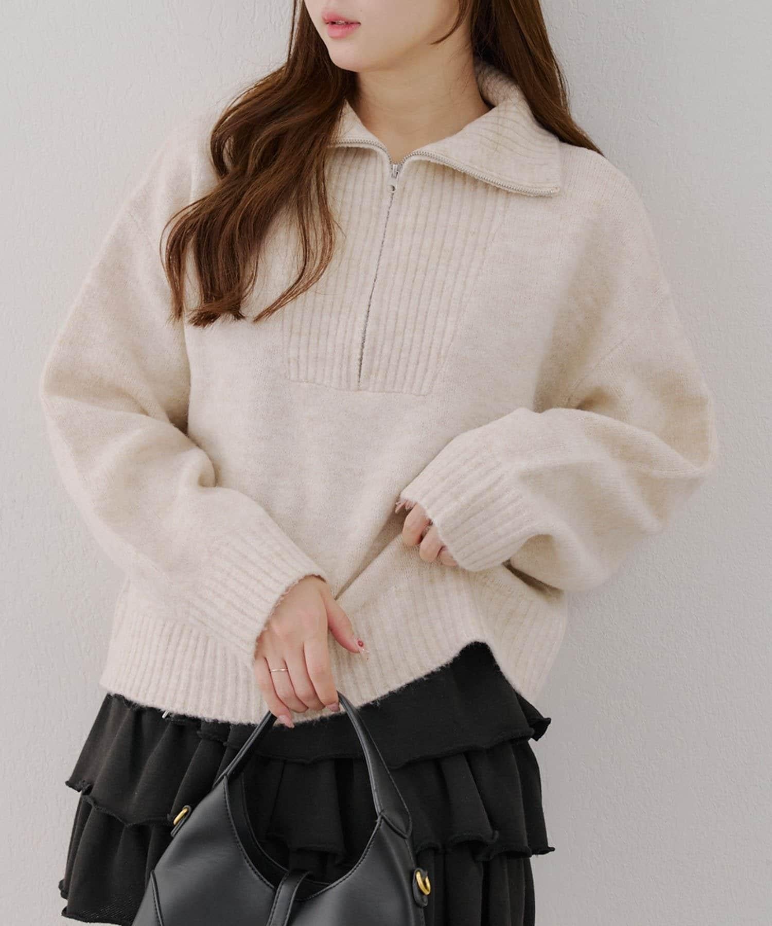 預約商品柔軟觸感仿犛牛絨半拉鍊針織衫