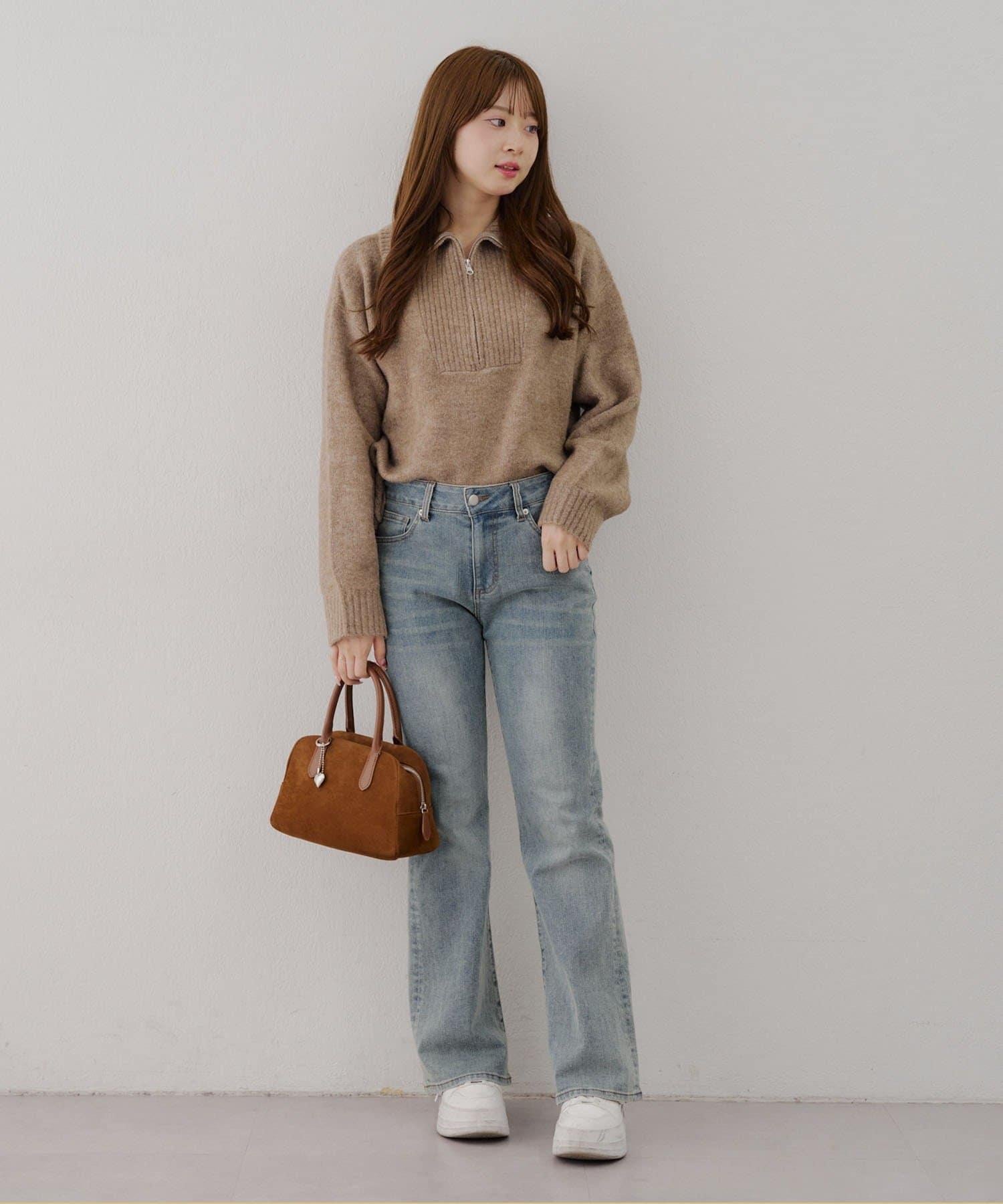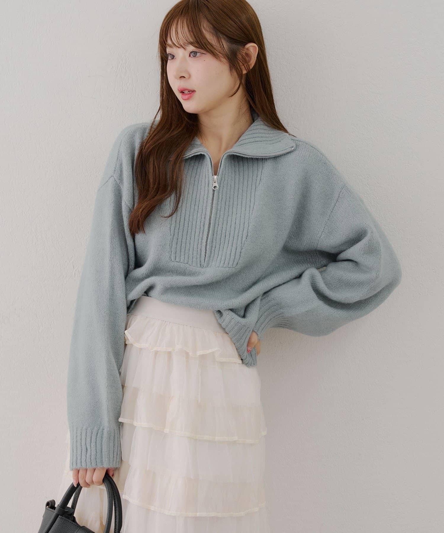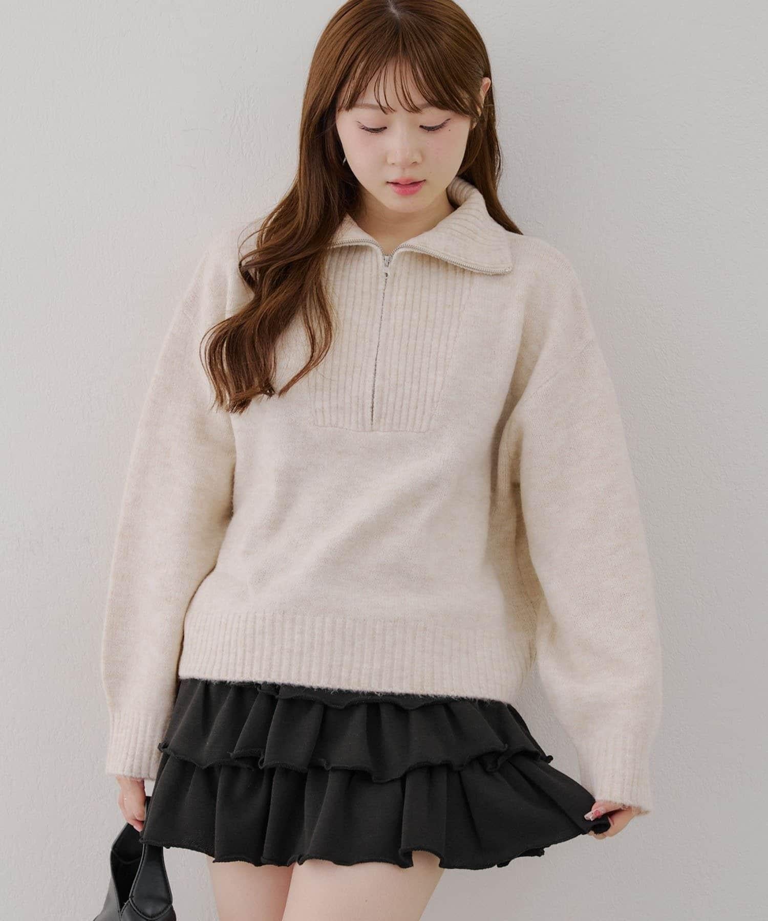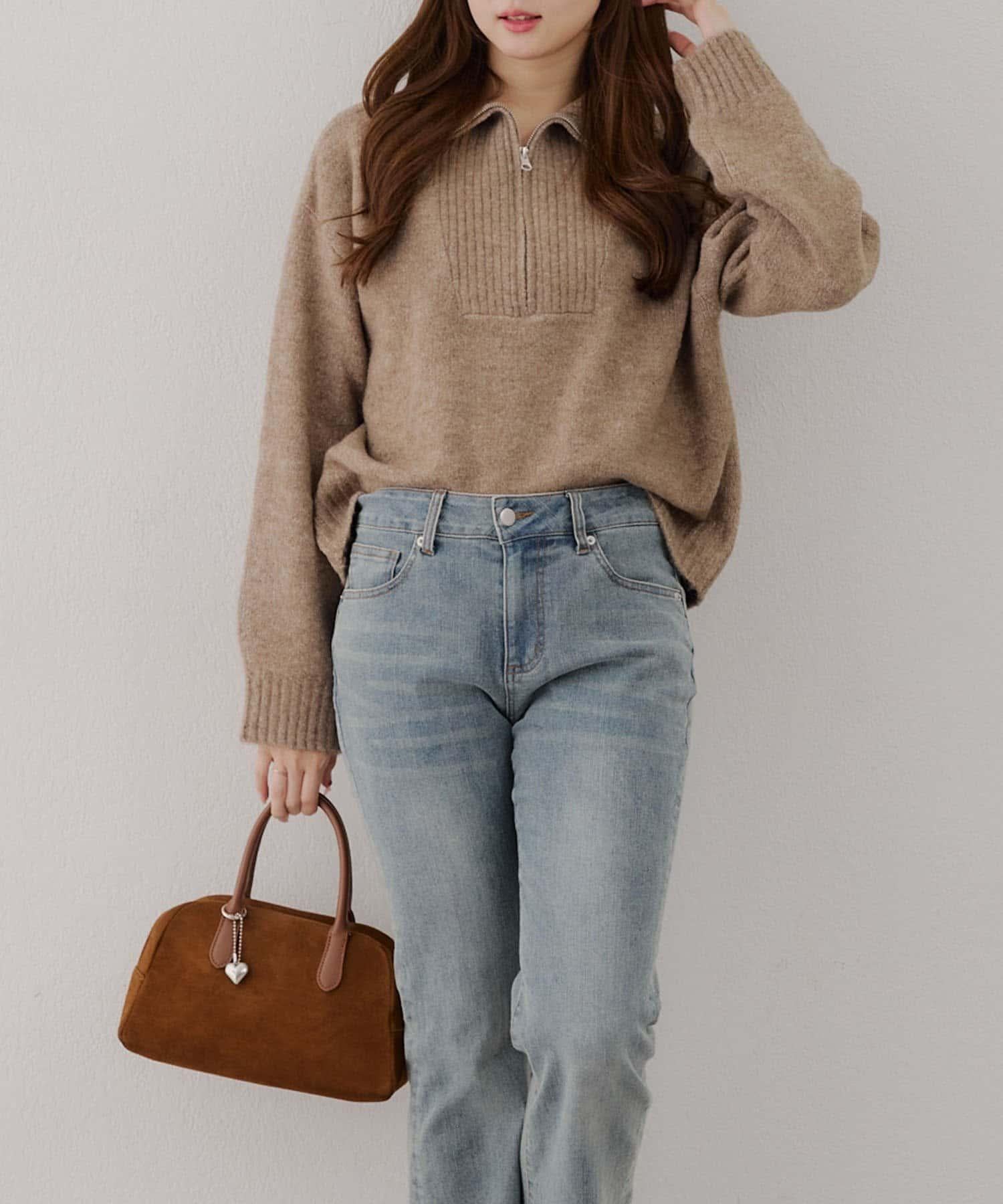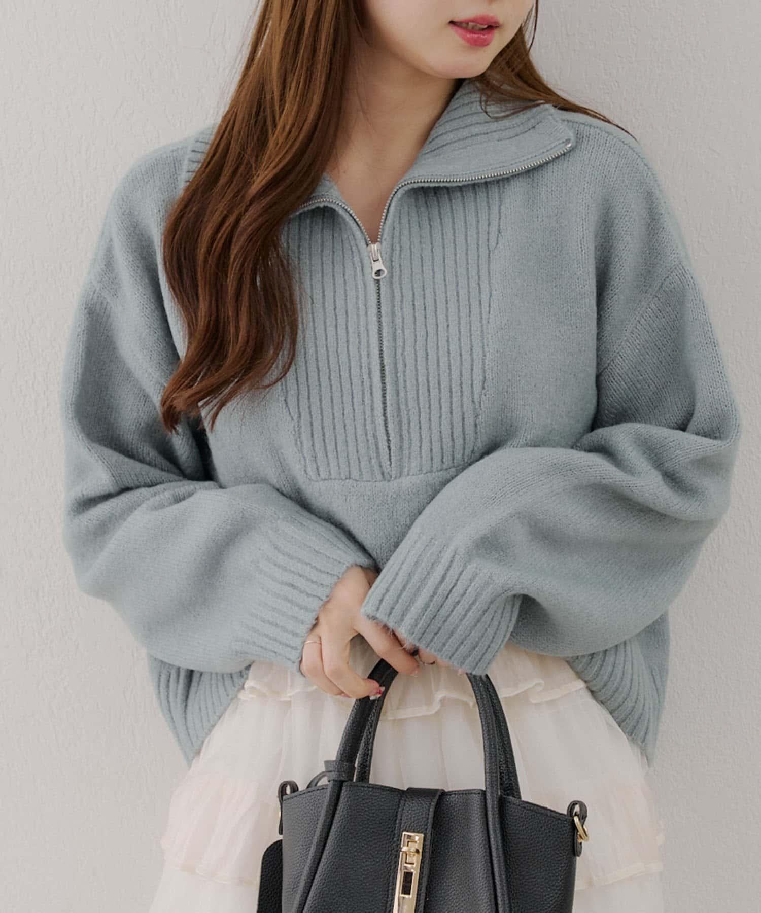 預約商品柔軟觸感仿犛牛絨半拉鍊針織衫