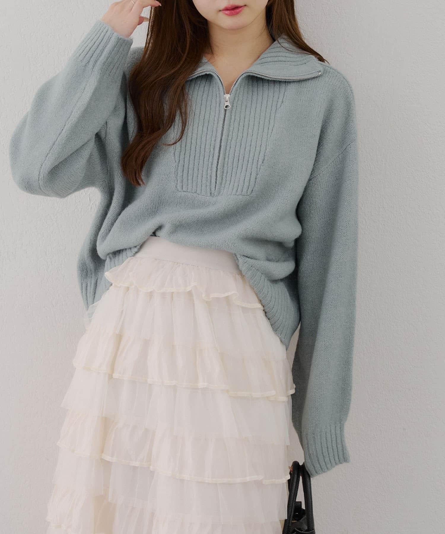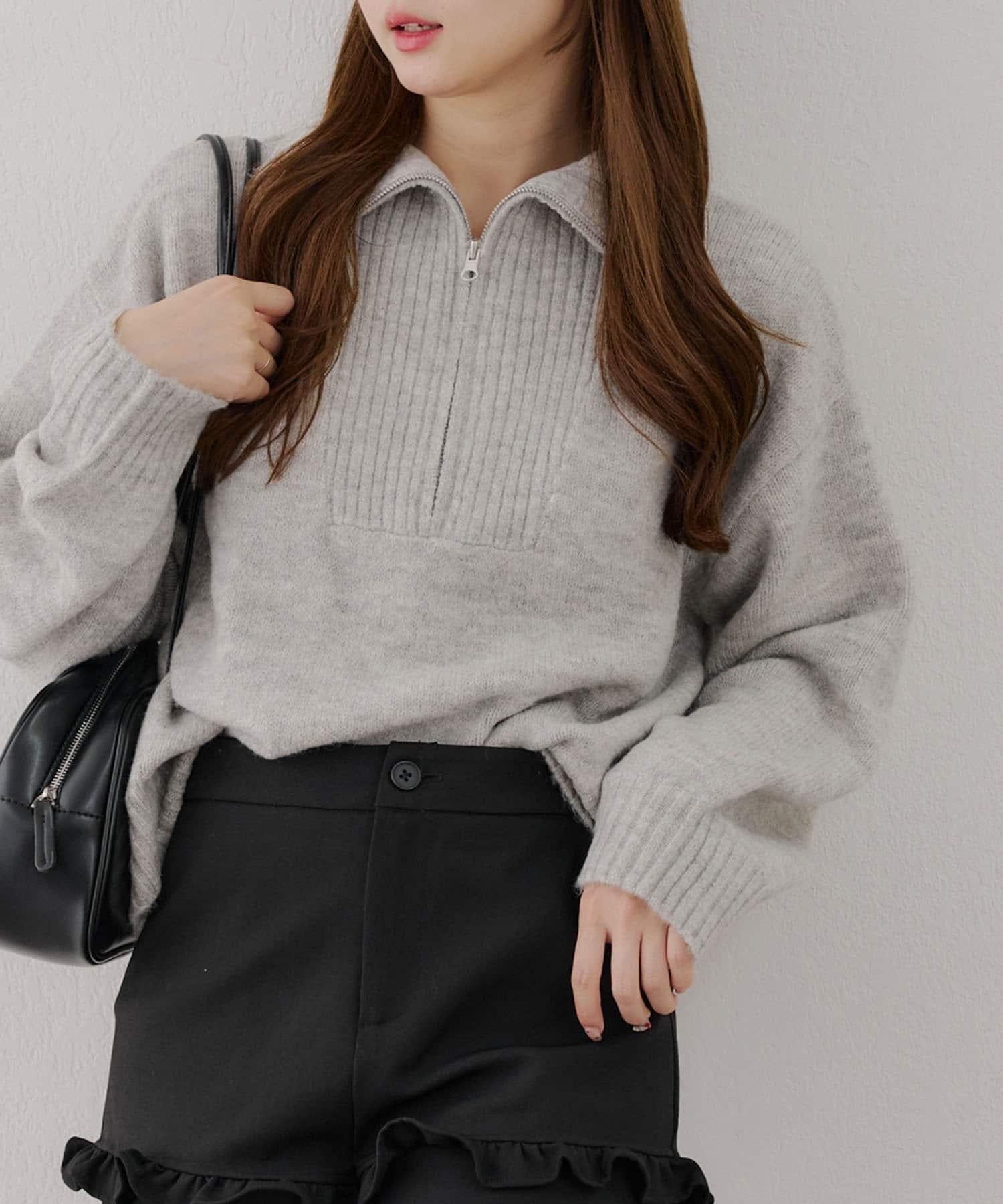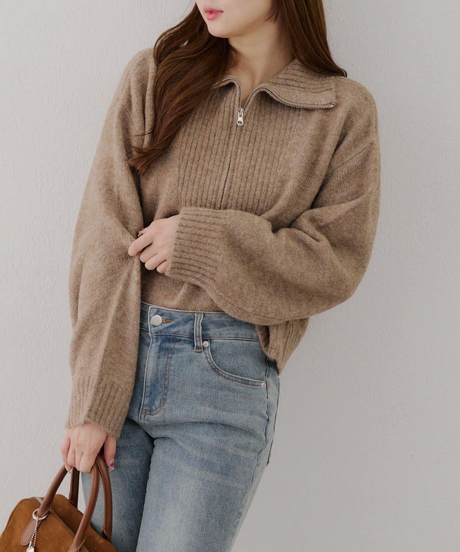 在寒冷的日子裡,拉上拉鍊還可將針織衫穿成高領衫。