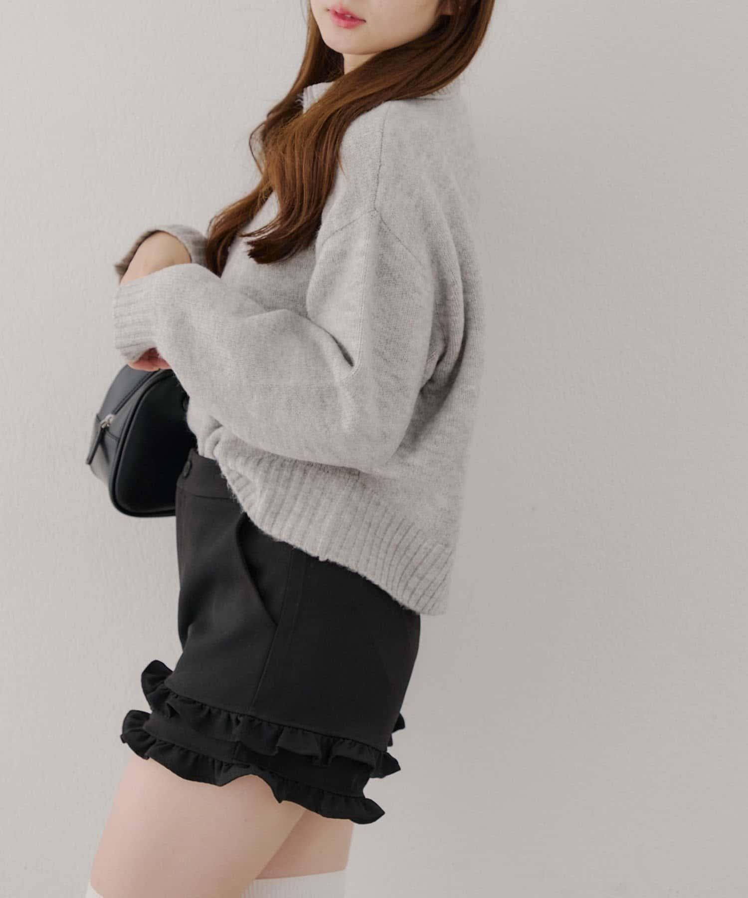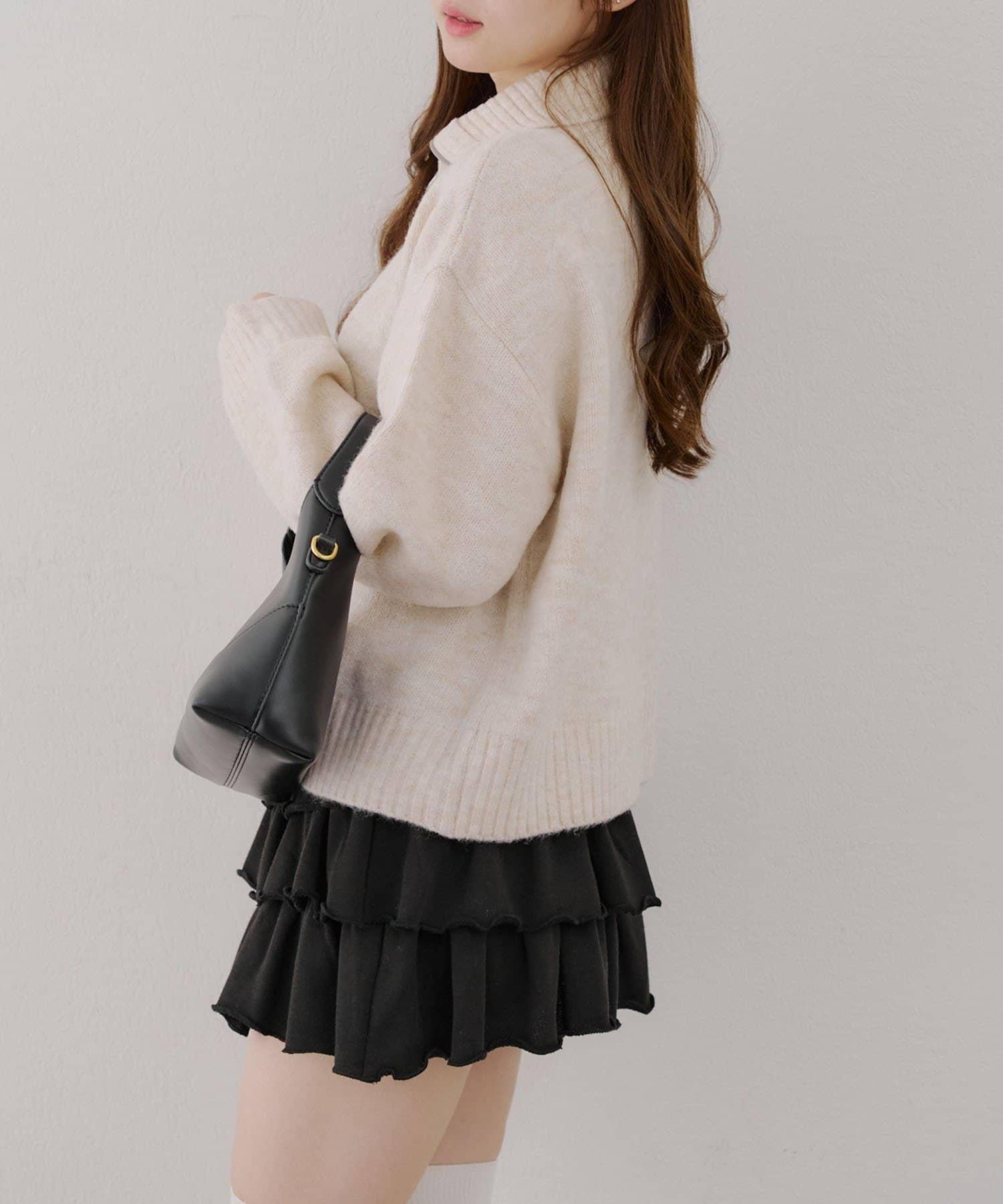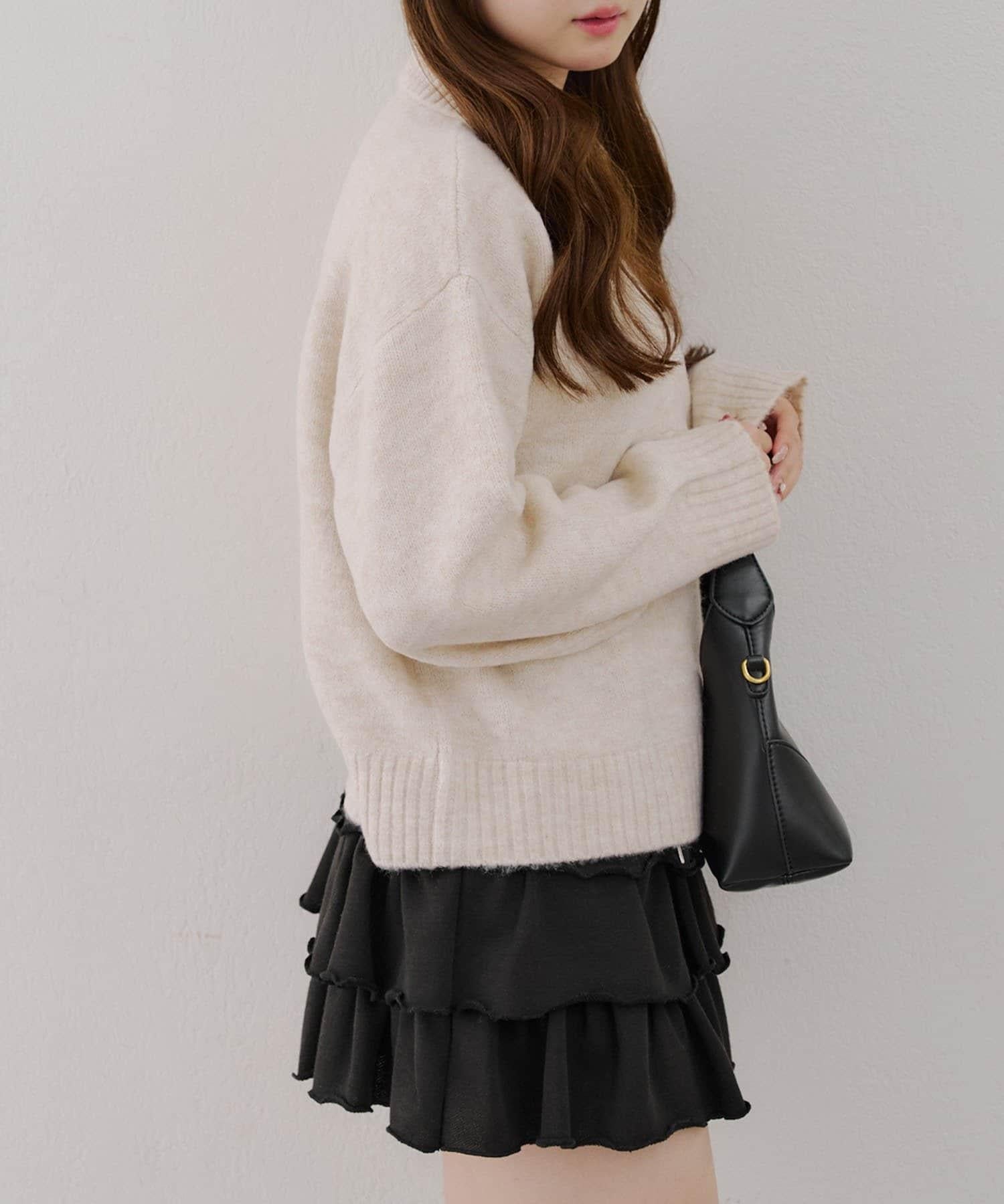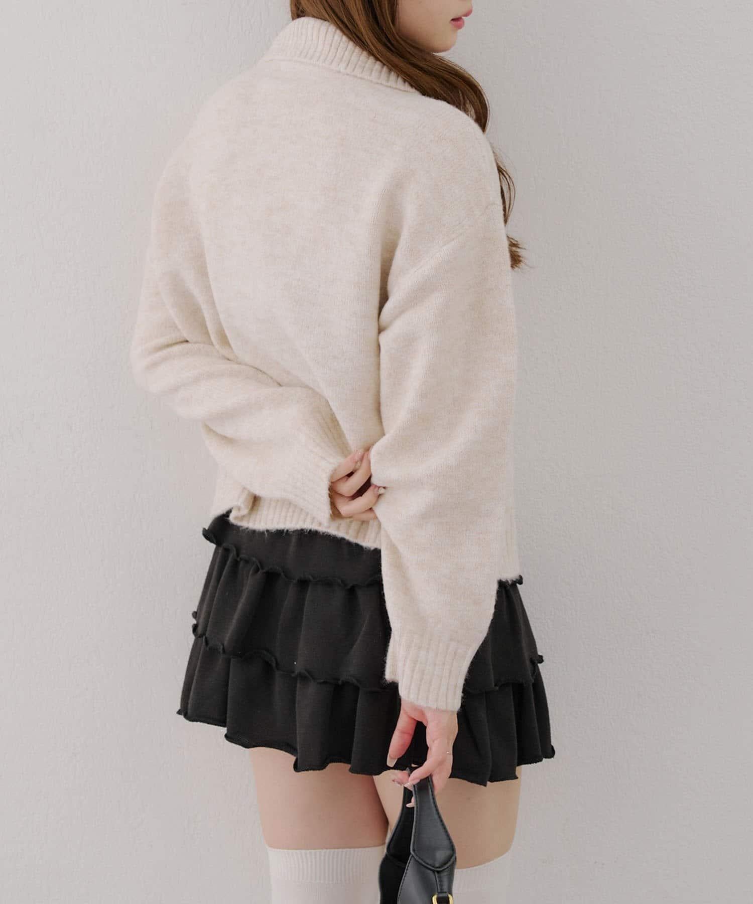 在寒冷的日子裡,拉上拉鍊還可將針織衫穿成高領衫。