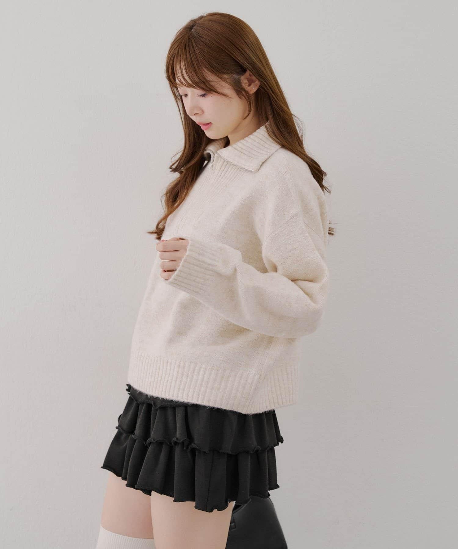 柔軟觸感仿犛牛絨半拉鍊針織衫