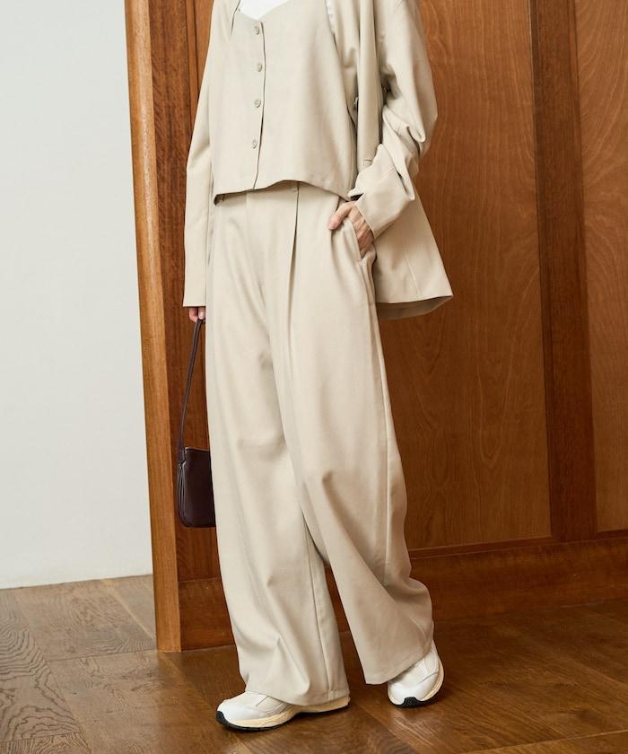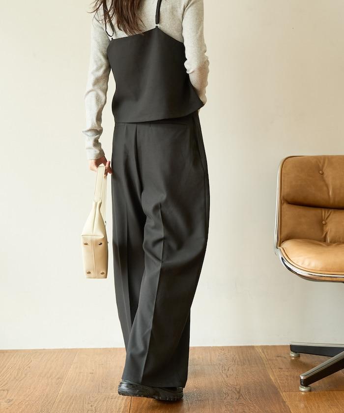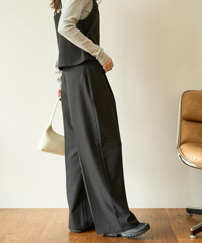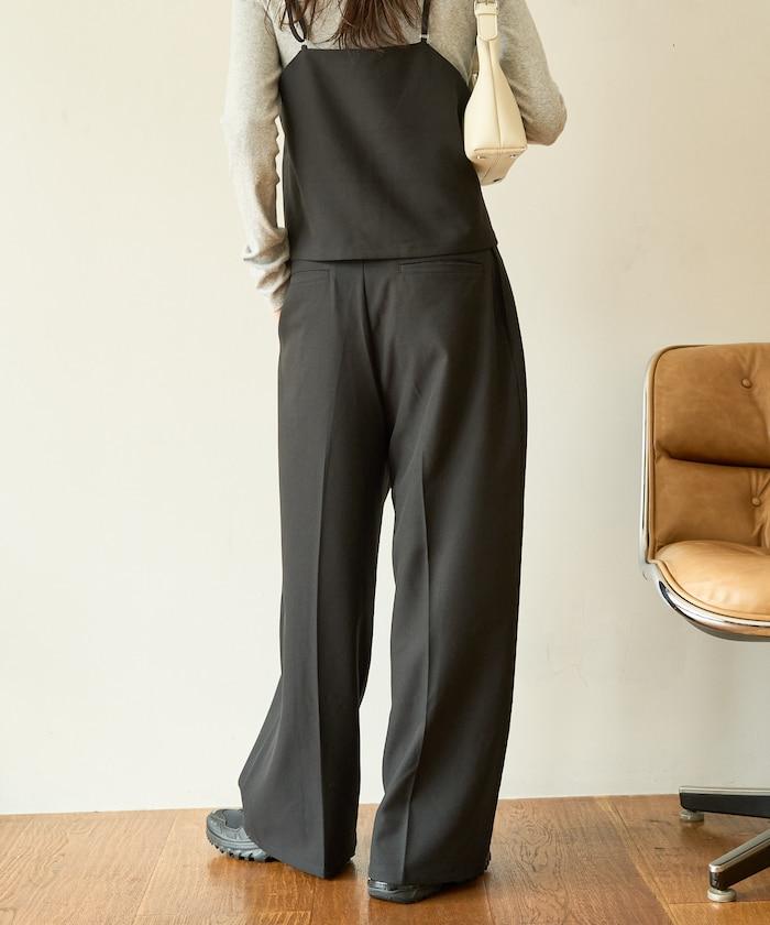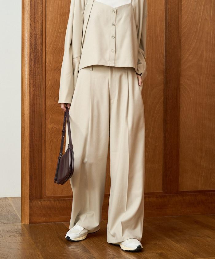 寬大的長褲,中間有壓線,具有拉長腿部的效果,使腿部線條更加優美。