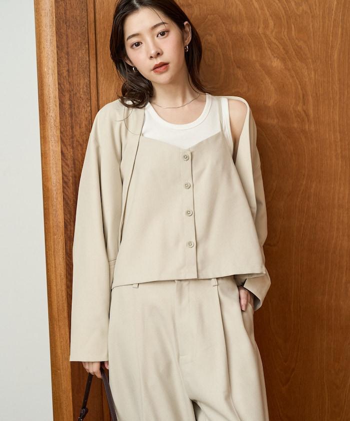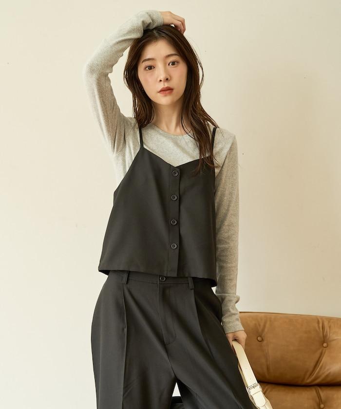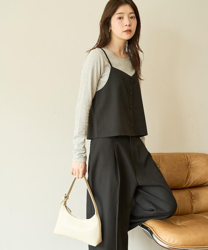 柔軟觸感斜紋吊帶背心套裝(可搭配套裝)