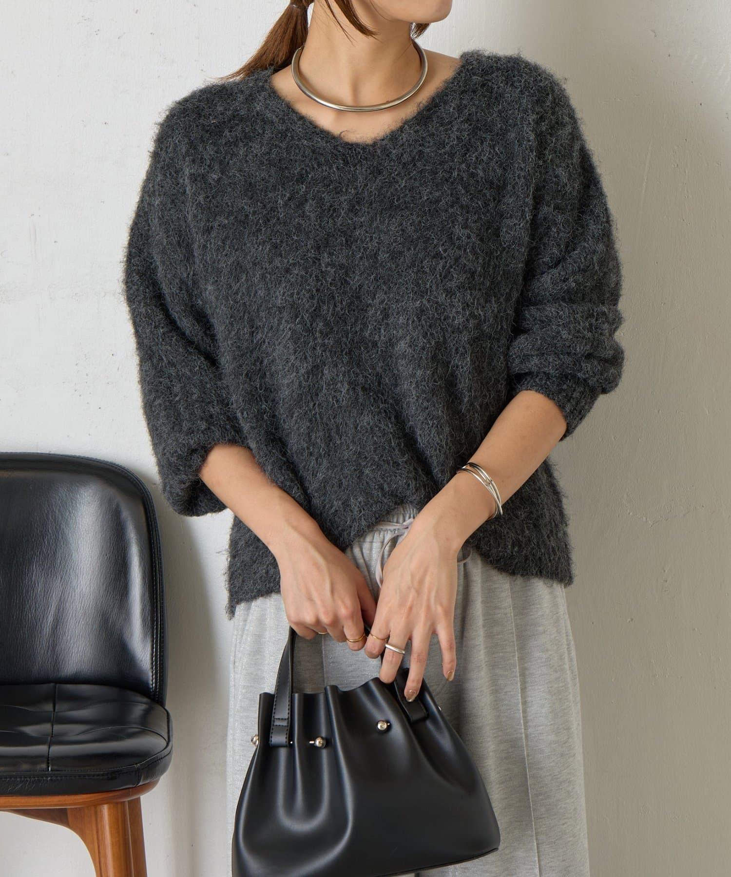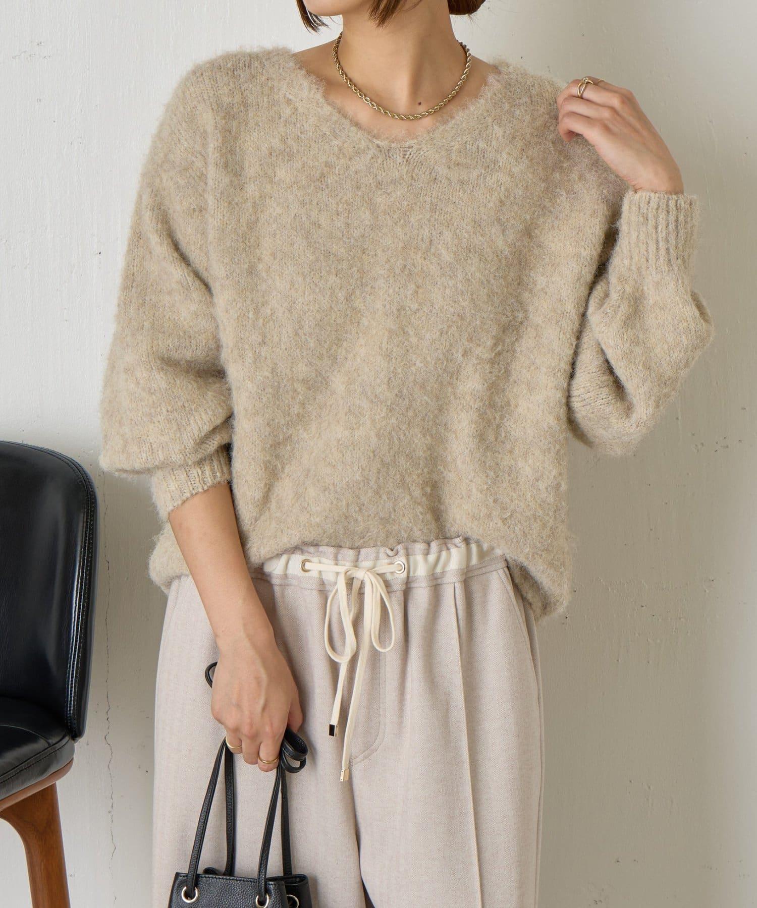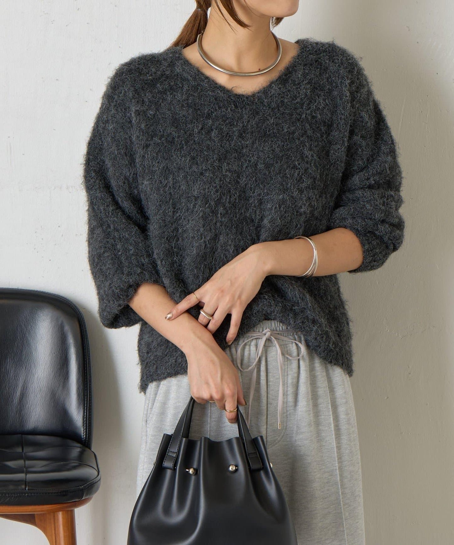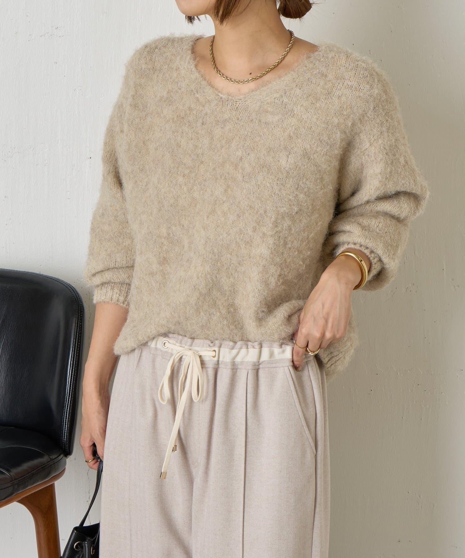 適度的 V 形領口和下垂的肩部設計,即使隨意穿著,也能給人寬鬆、女性化的印象。