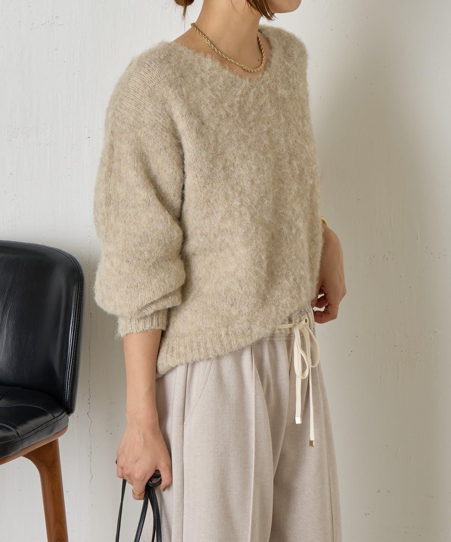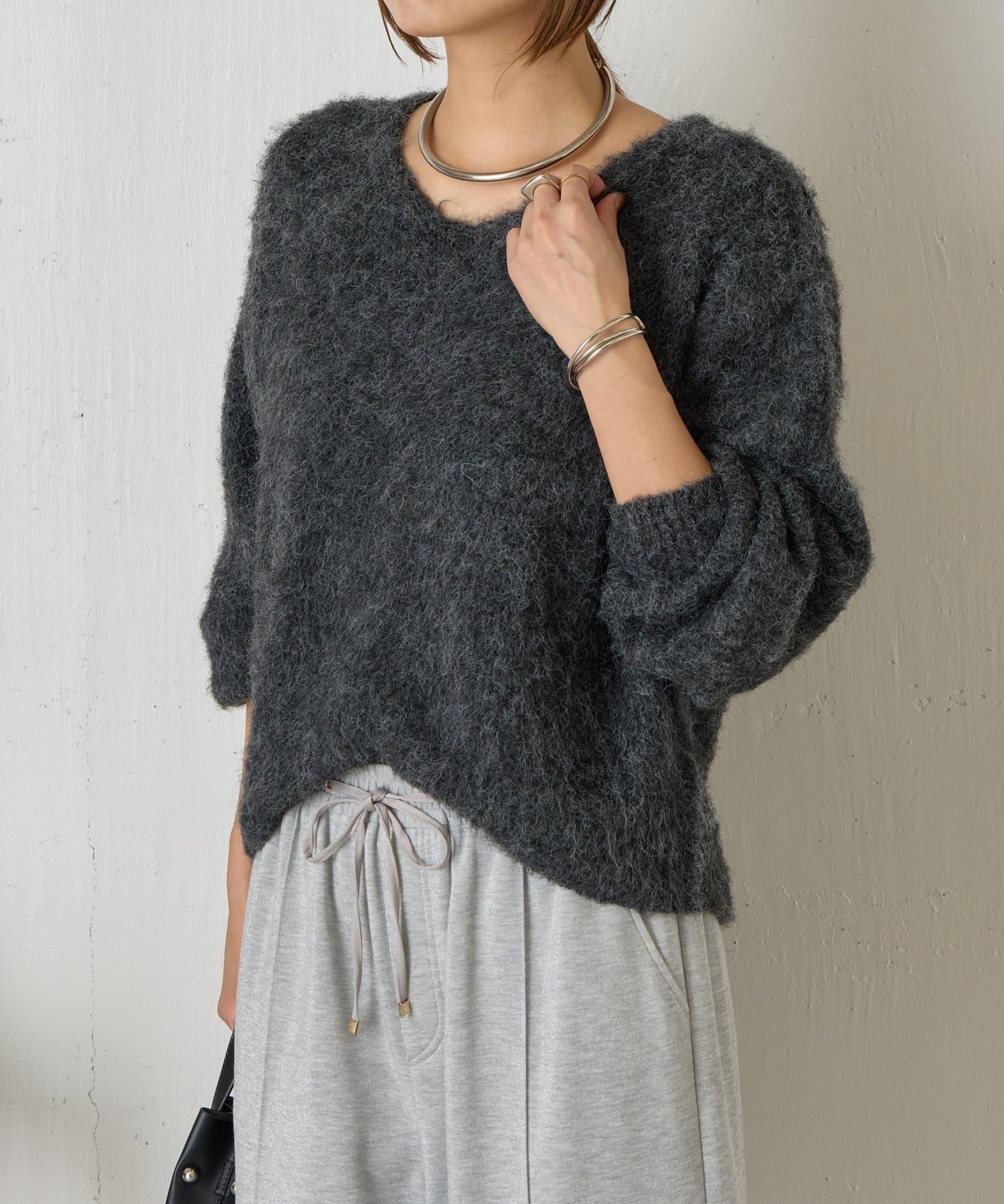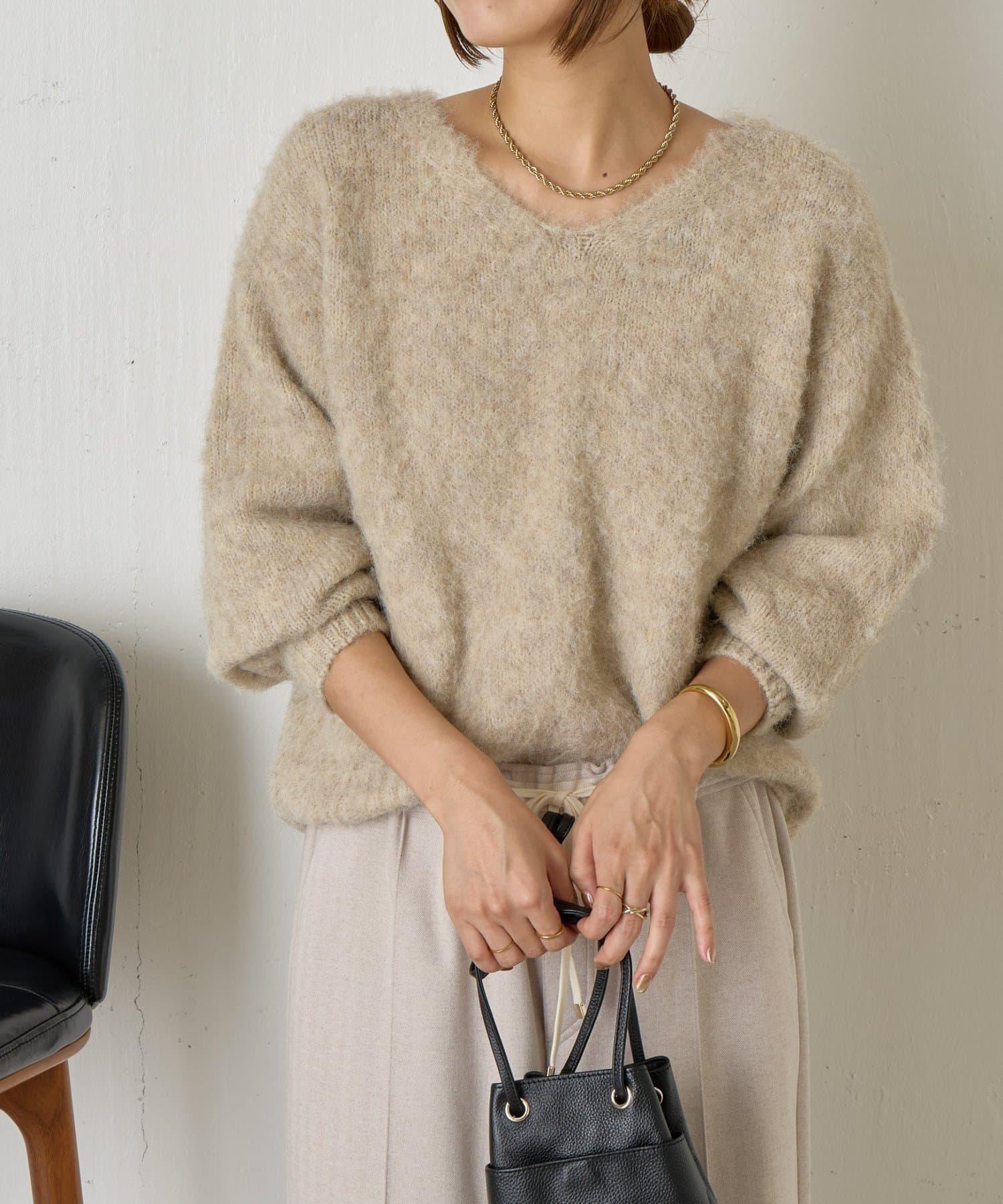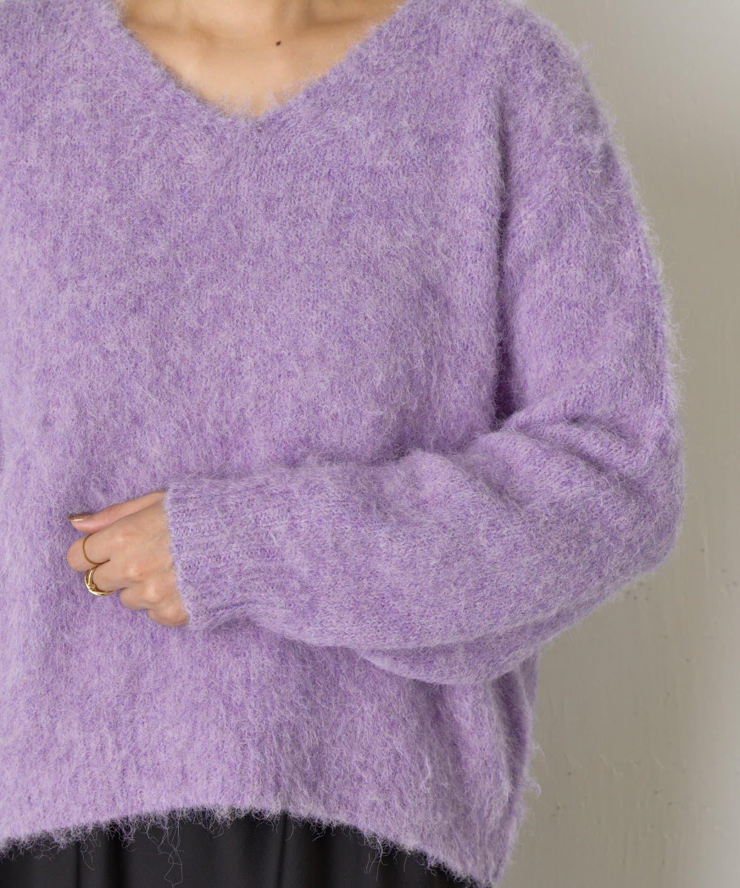 適度的 V 形領口和下垂的肩部設計,即使隨意穿著,也能給人寬鬆、女性化的印象。
