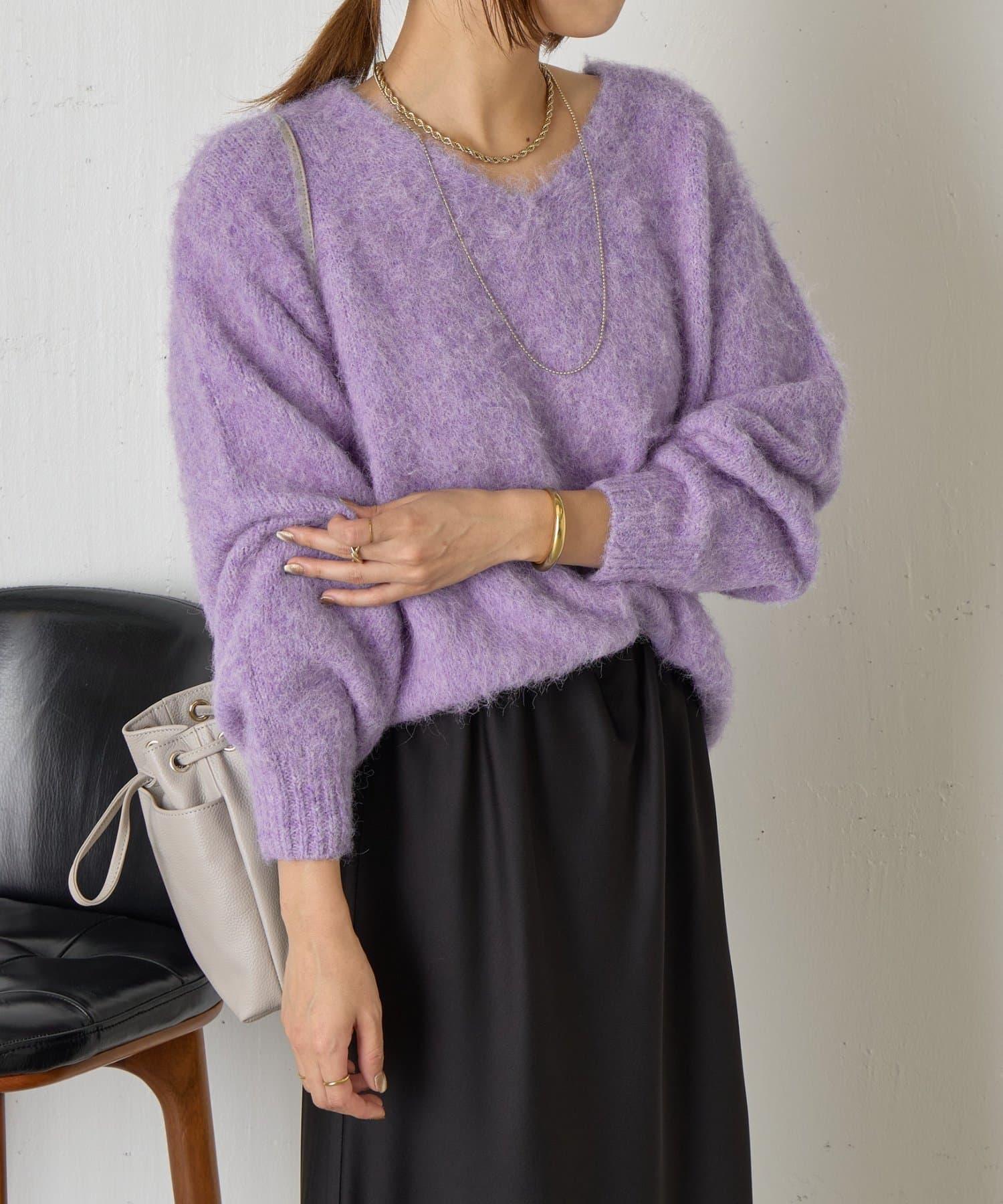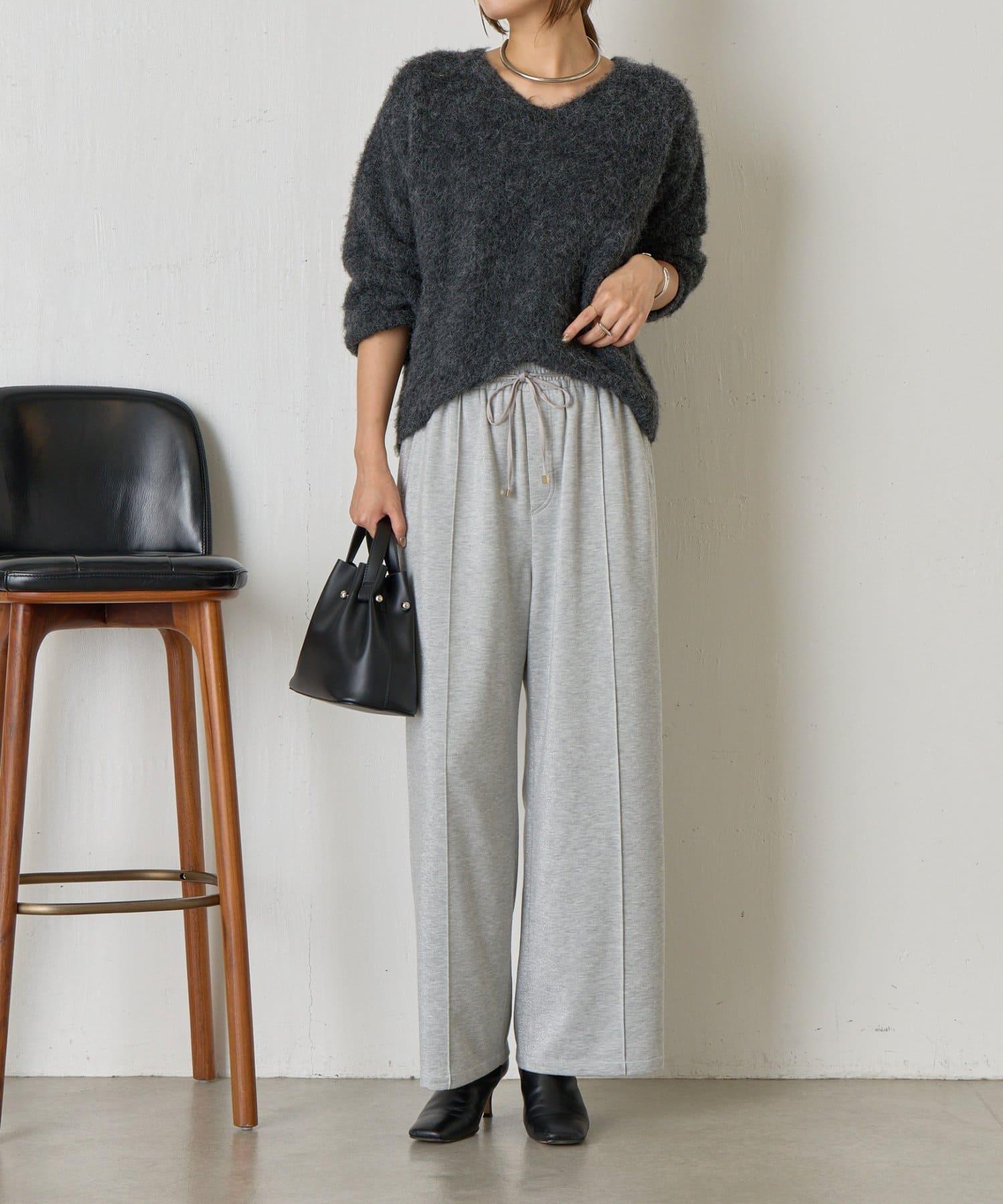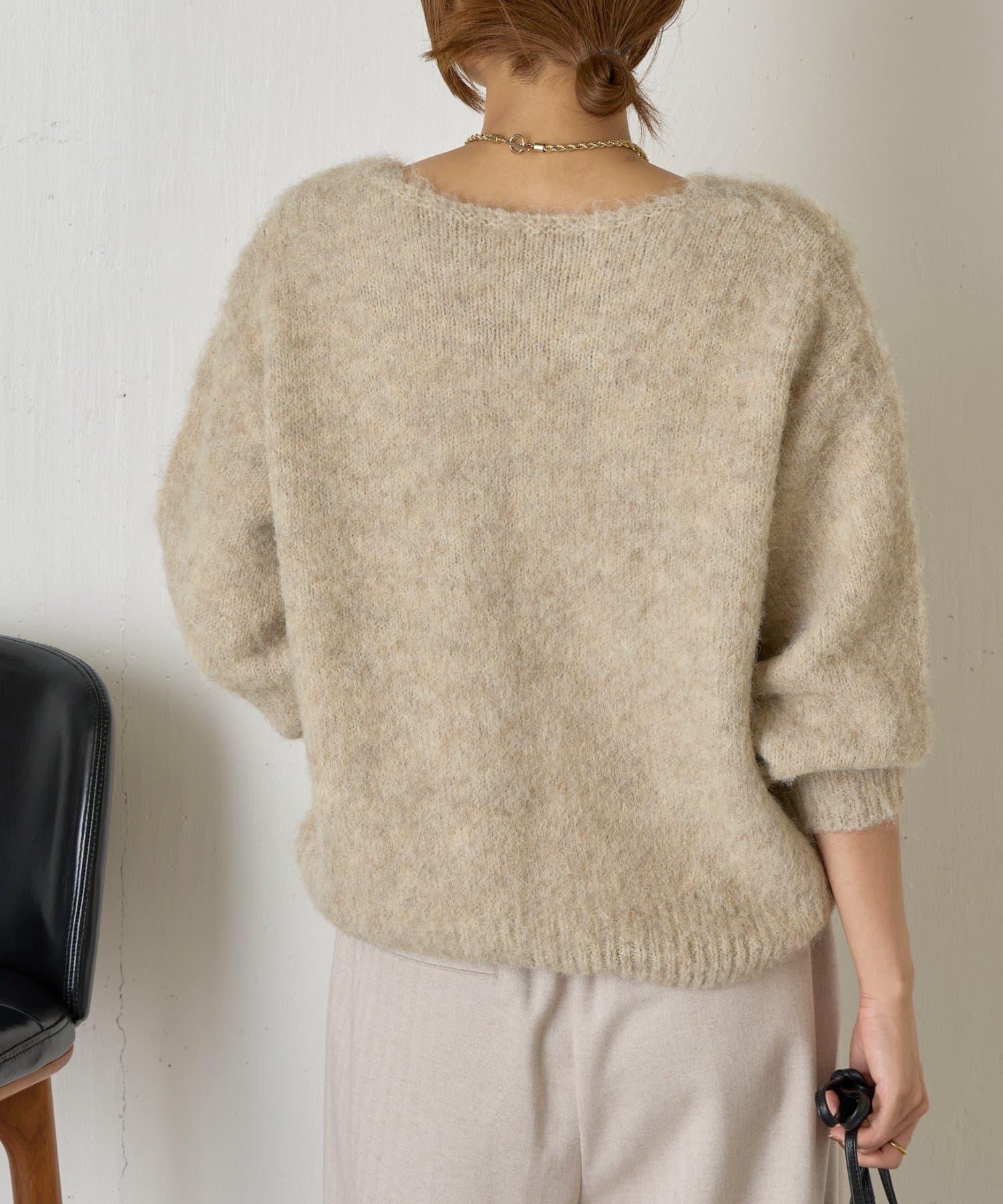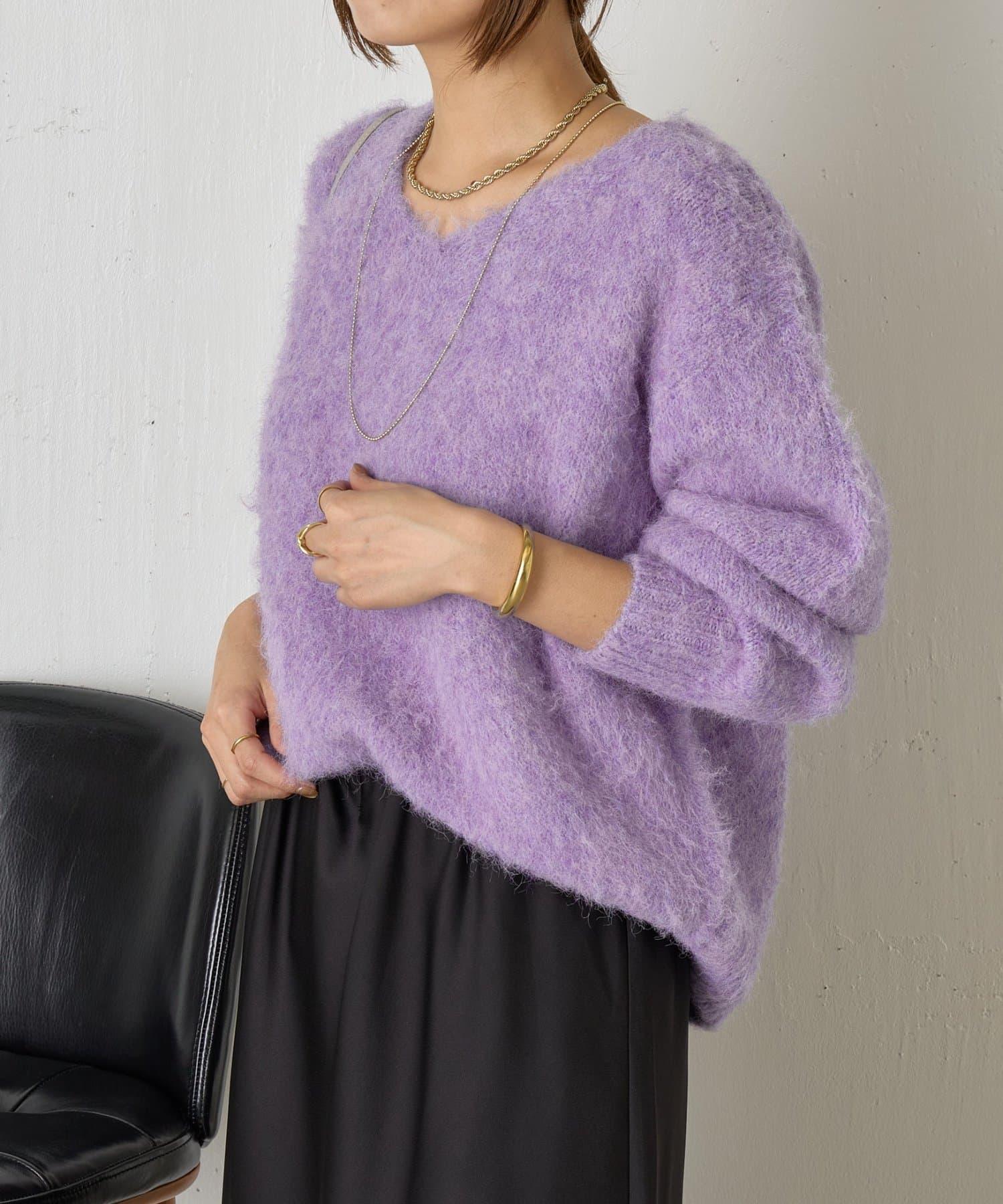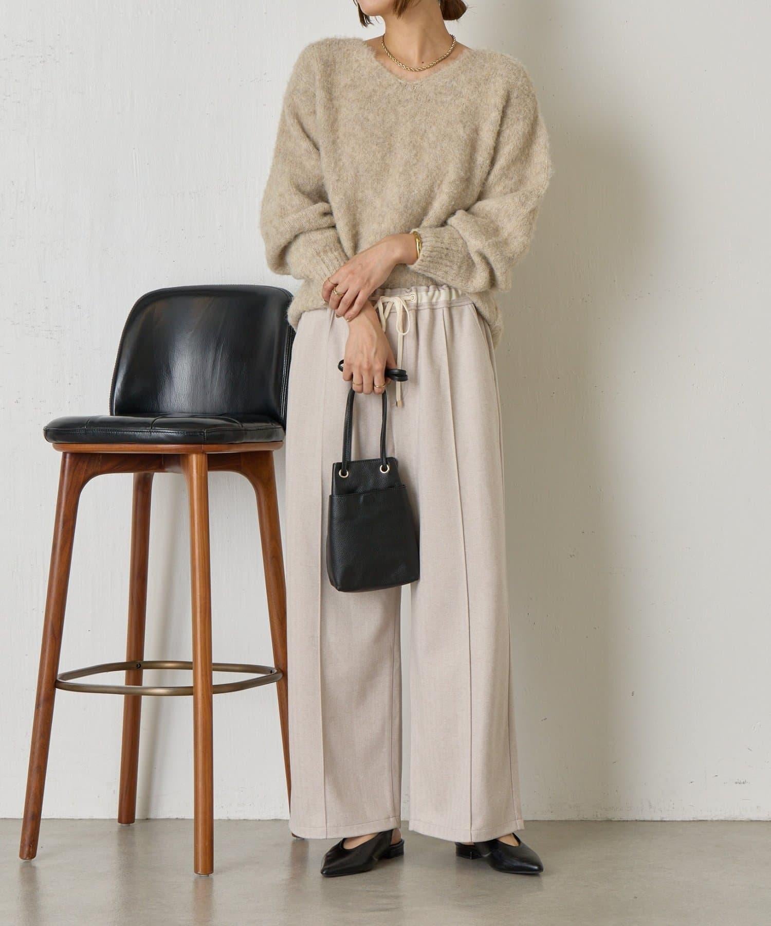 適度的 V 形領口和下垂的肩部設計,即使隨意穿著,也能給人寬鬆、女性化的印象。