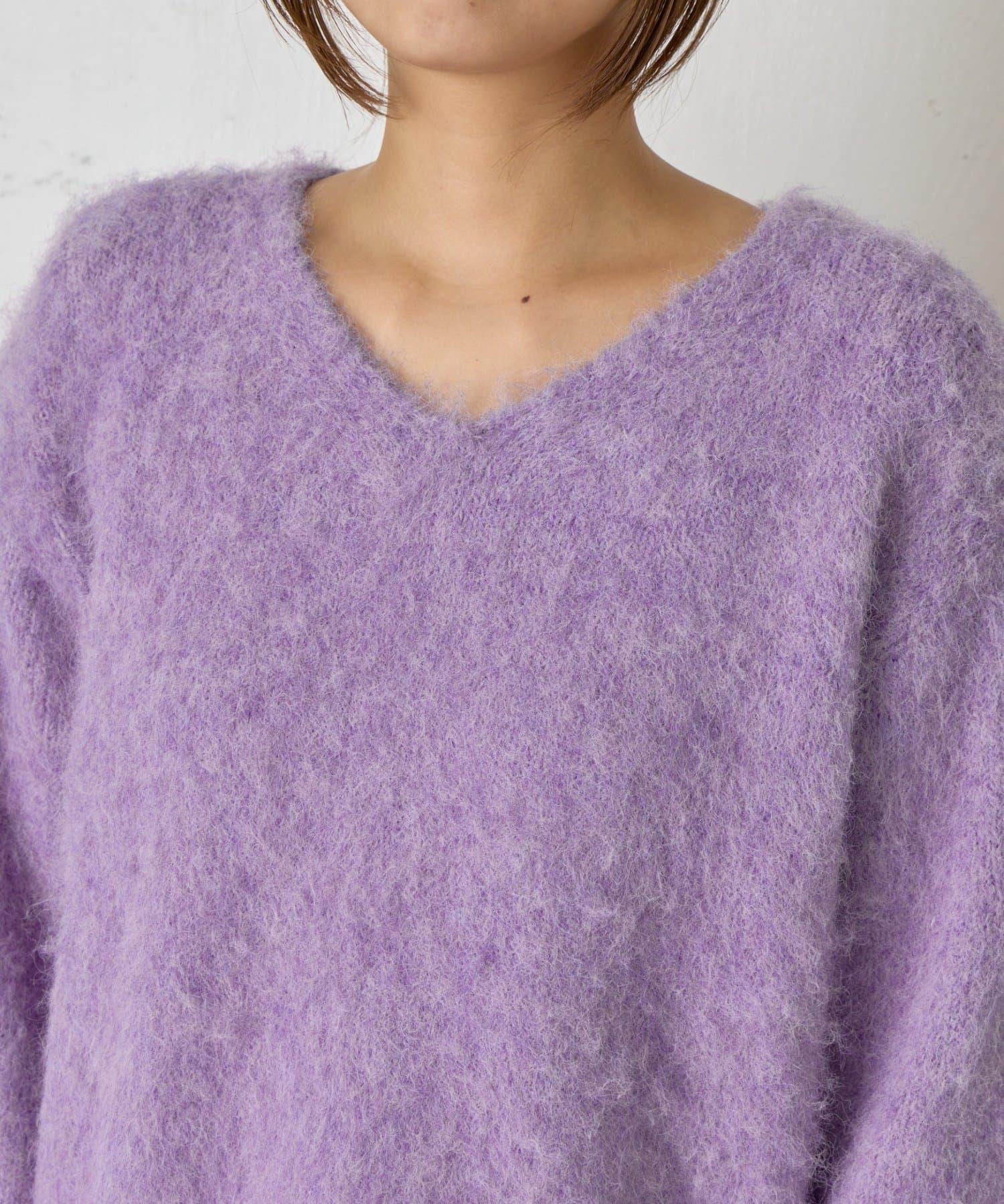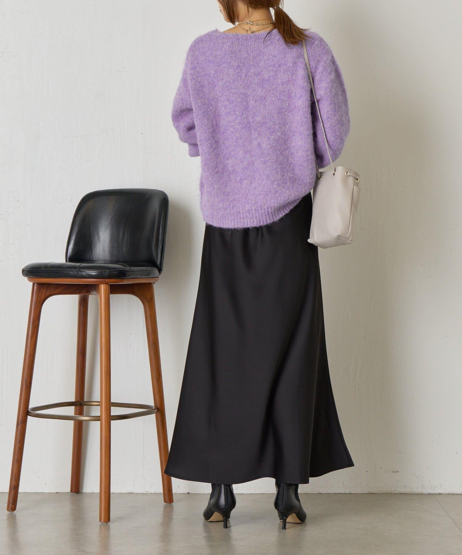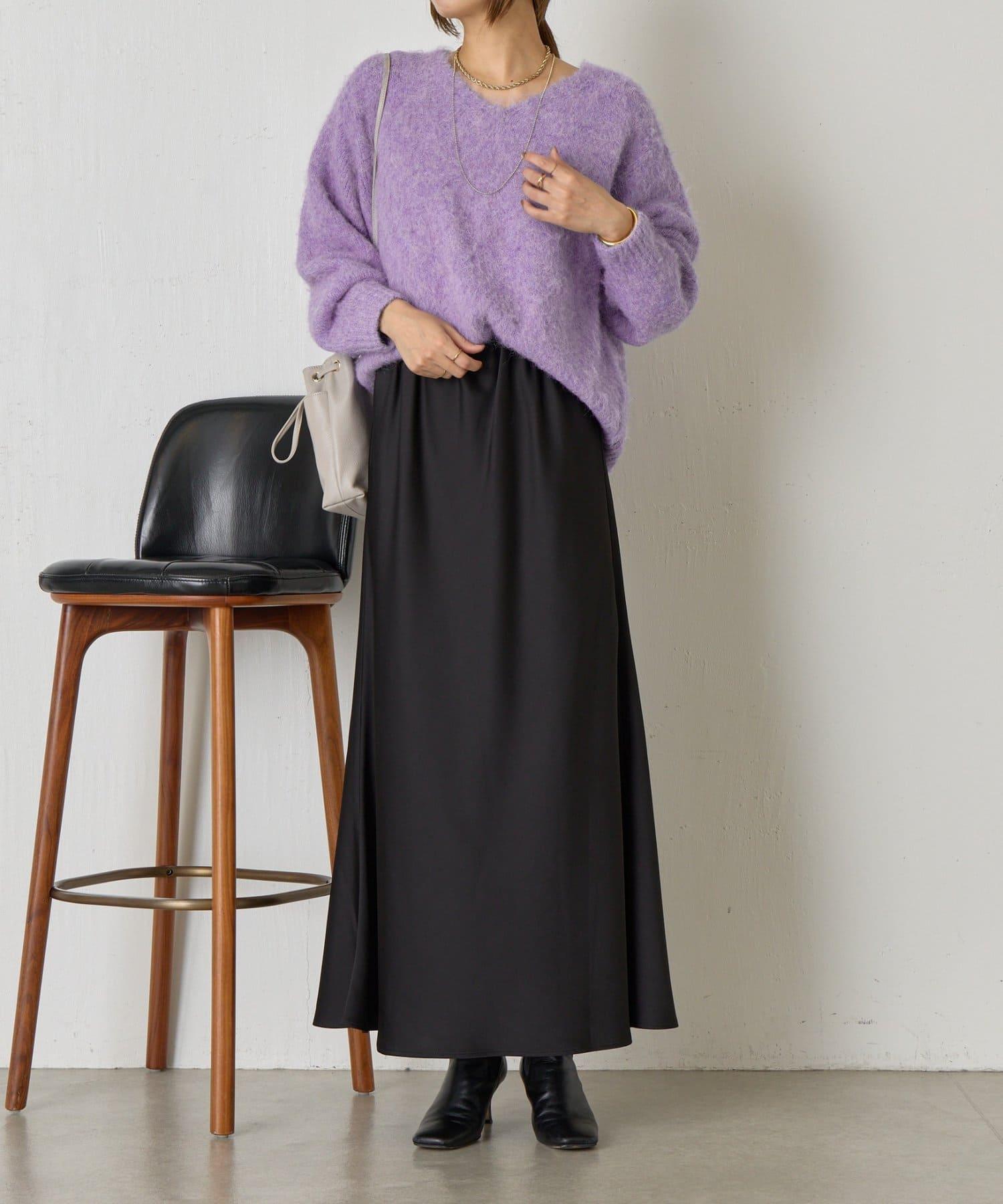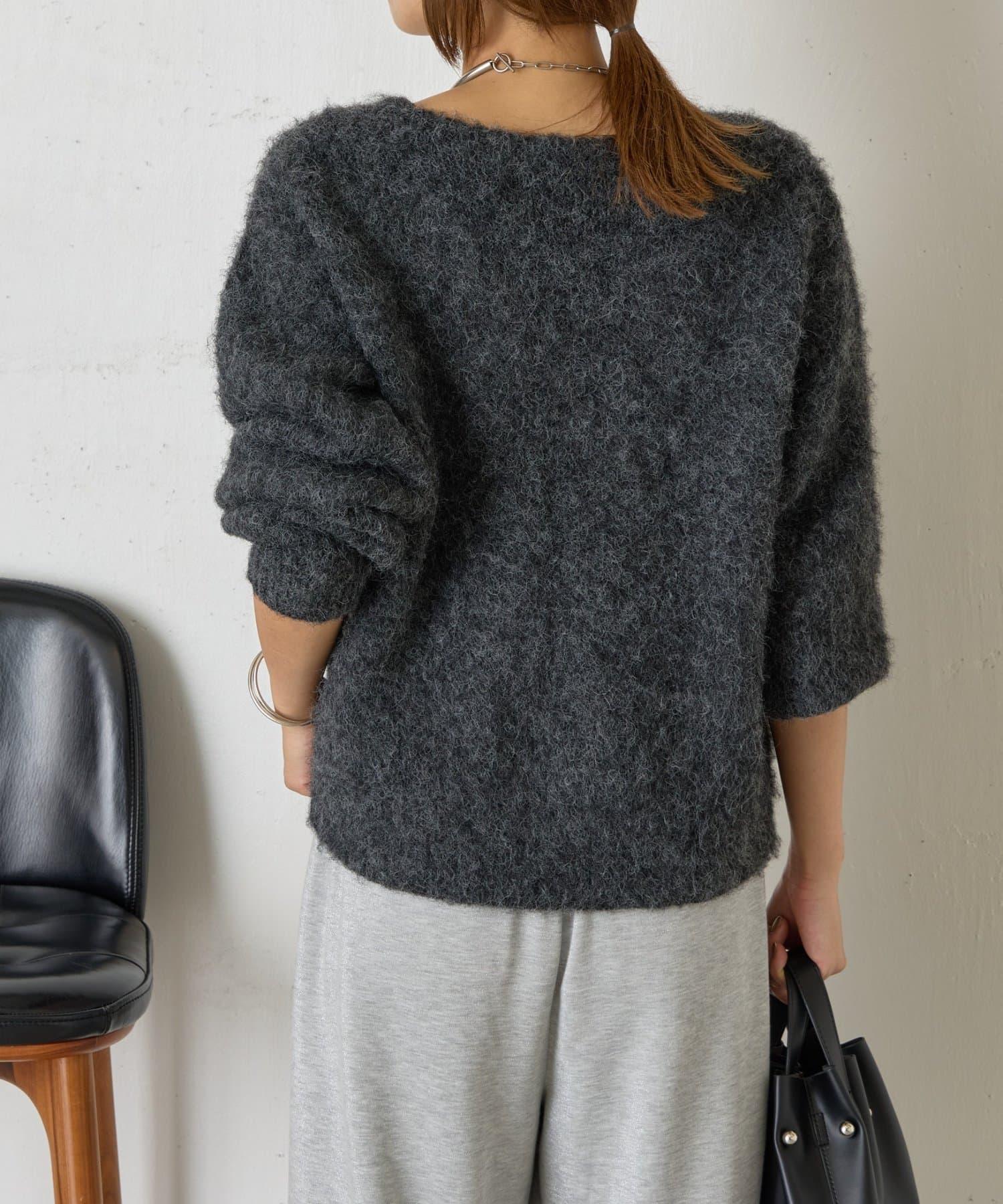 適度的 V 形領口和下垂的肩部設計,即使隨意穿著,也能給人寬鬆、女性化的印象。