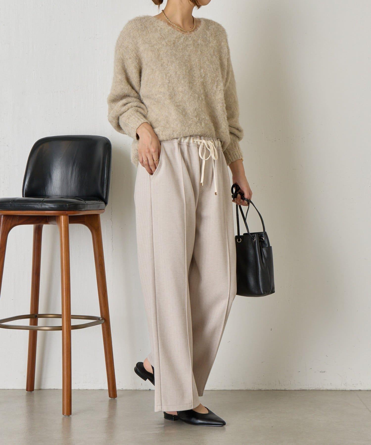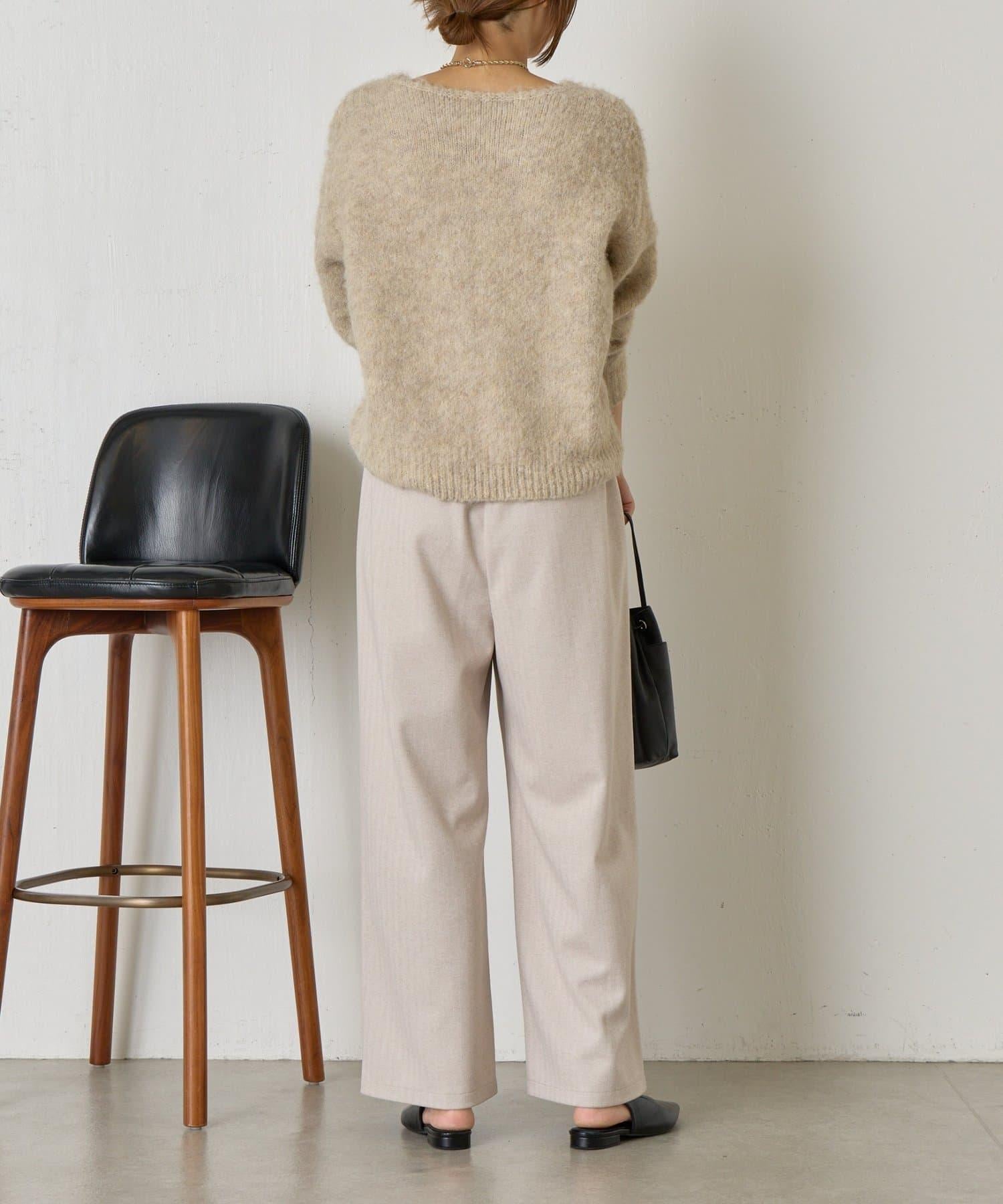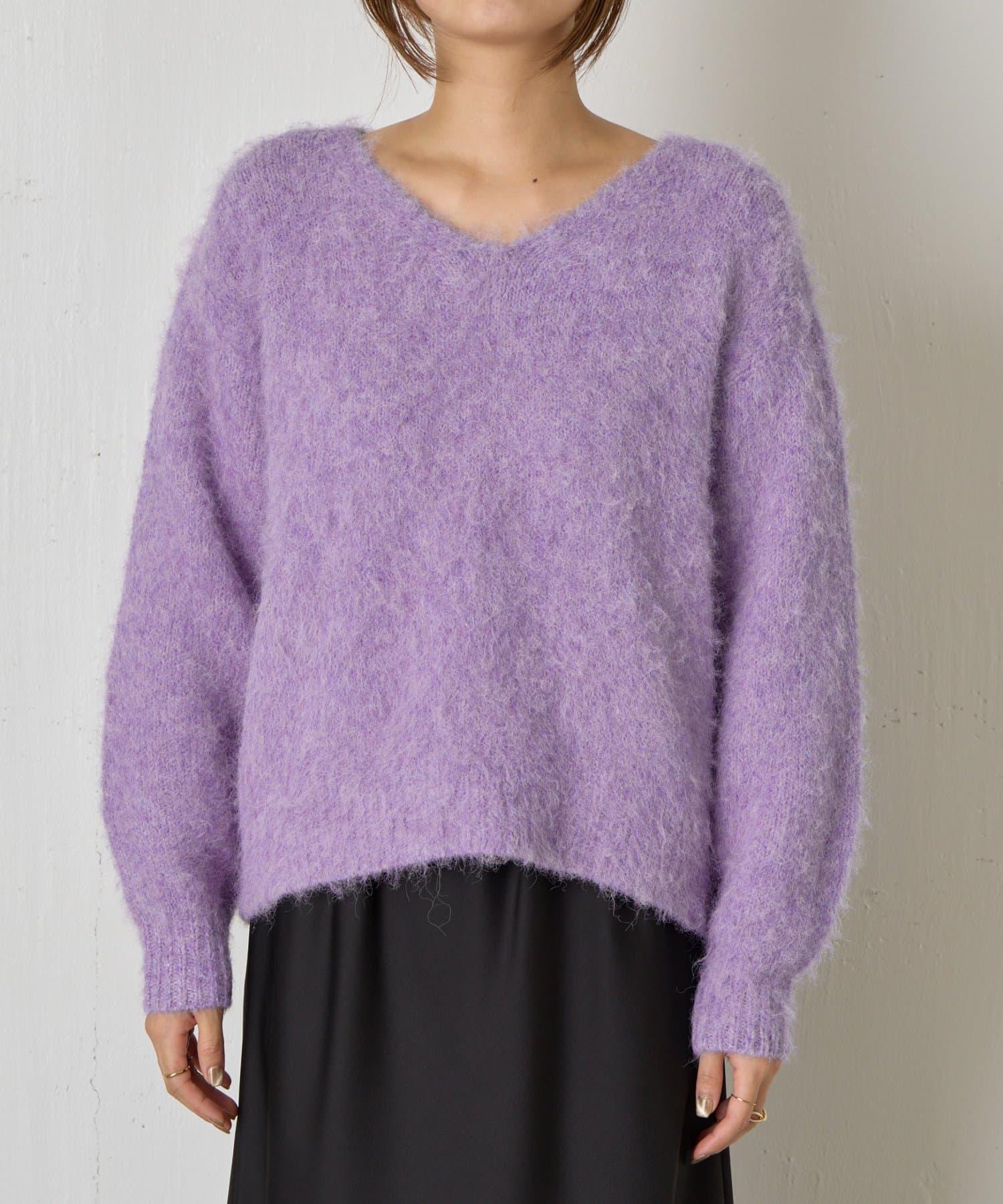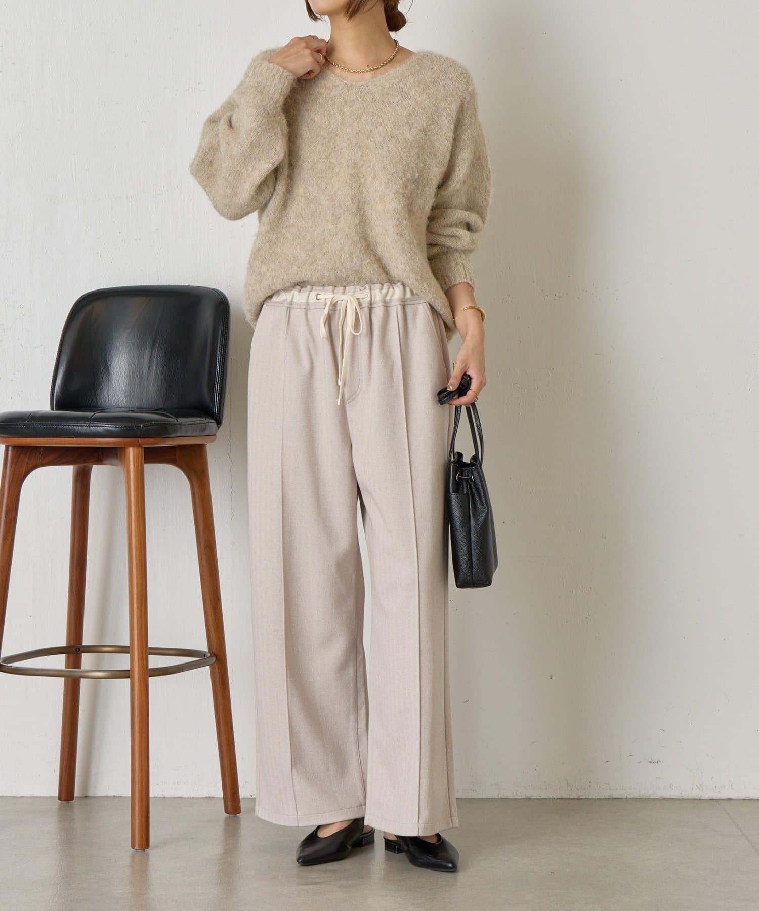 適度的 V 形領口和下垂的肩部設計,即使隨意穿著,也能給人寬鬆、女性化的印象。