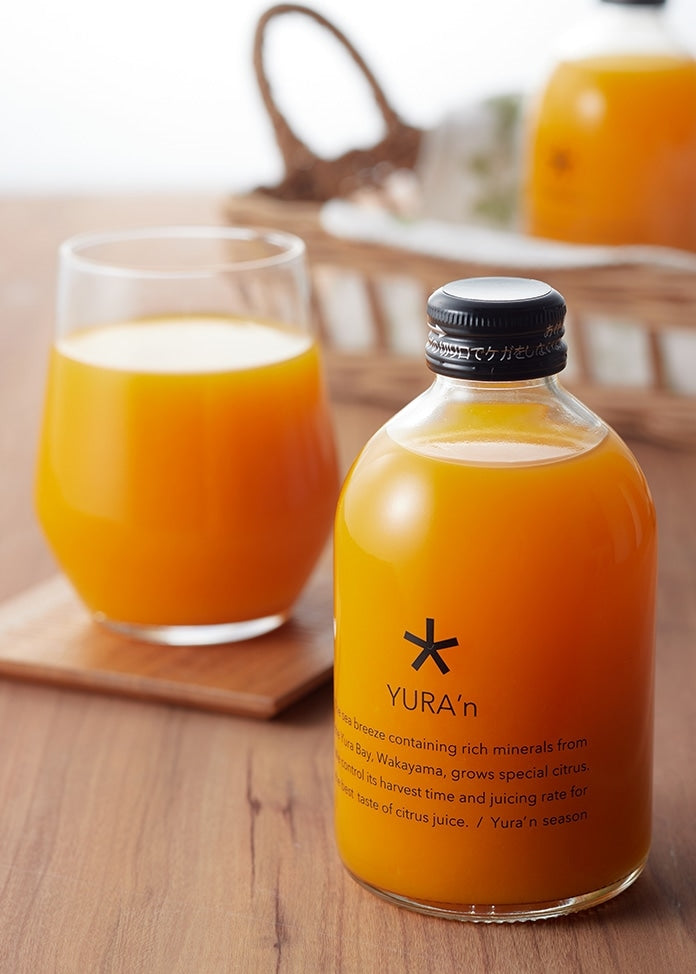 享受Yura Mikan果汁的豐富口感,它充分利用了和歌山縣的溫暖氣候,這裡是Mikan橙子的故鄉。