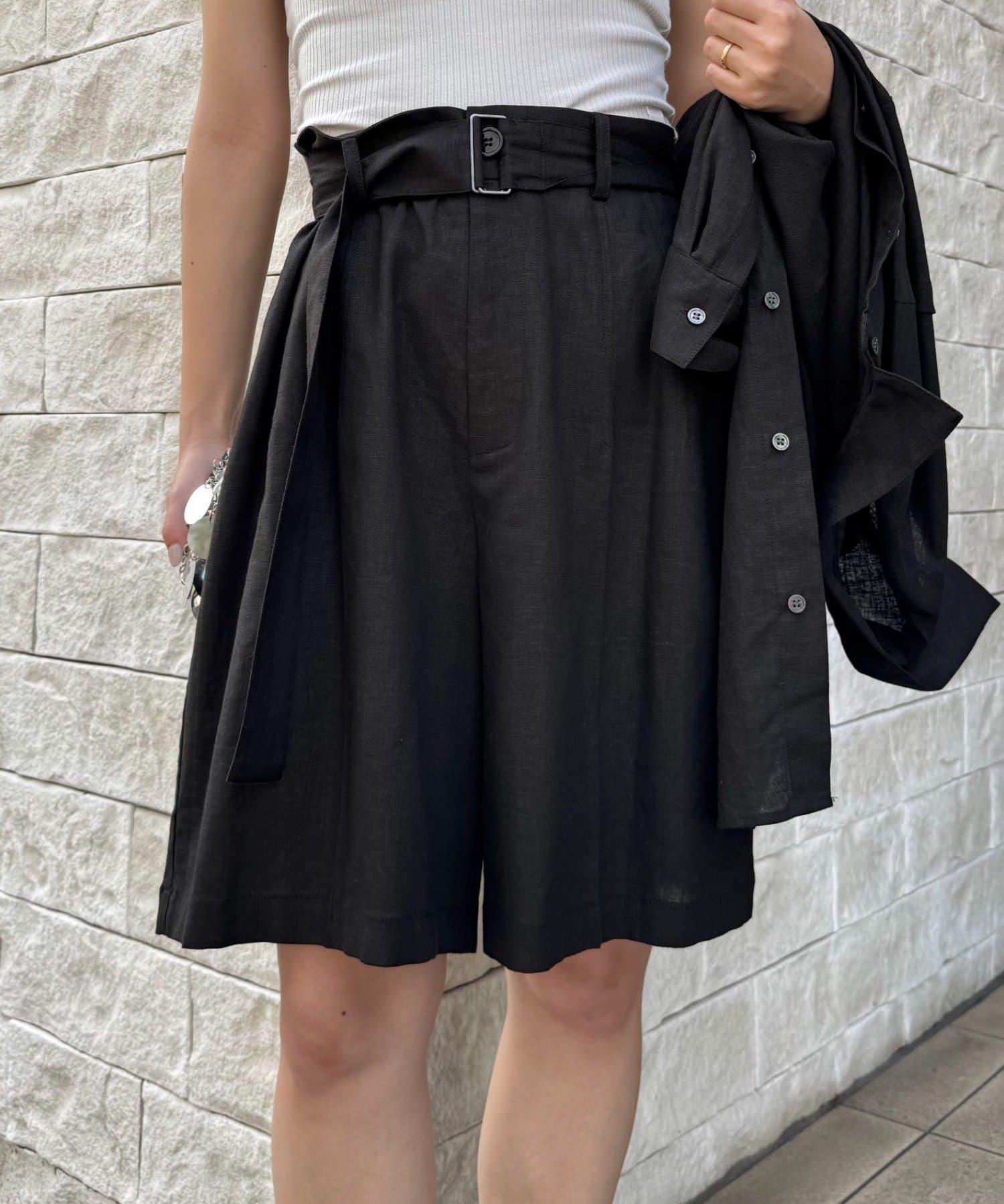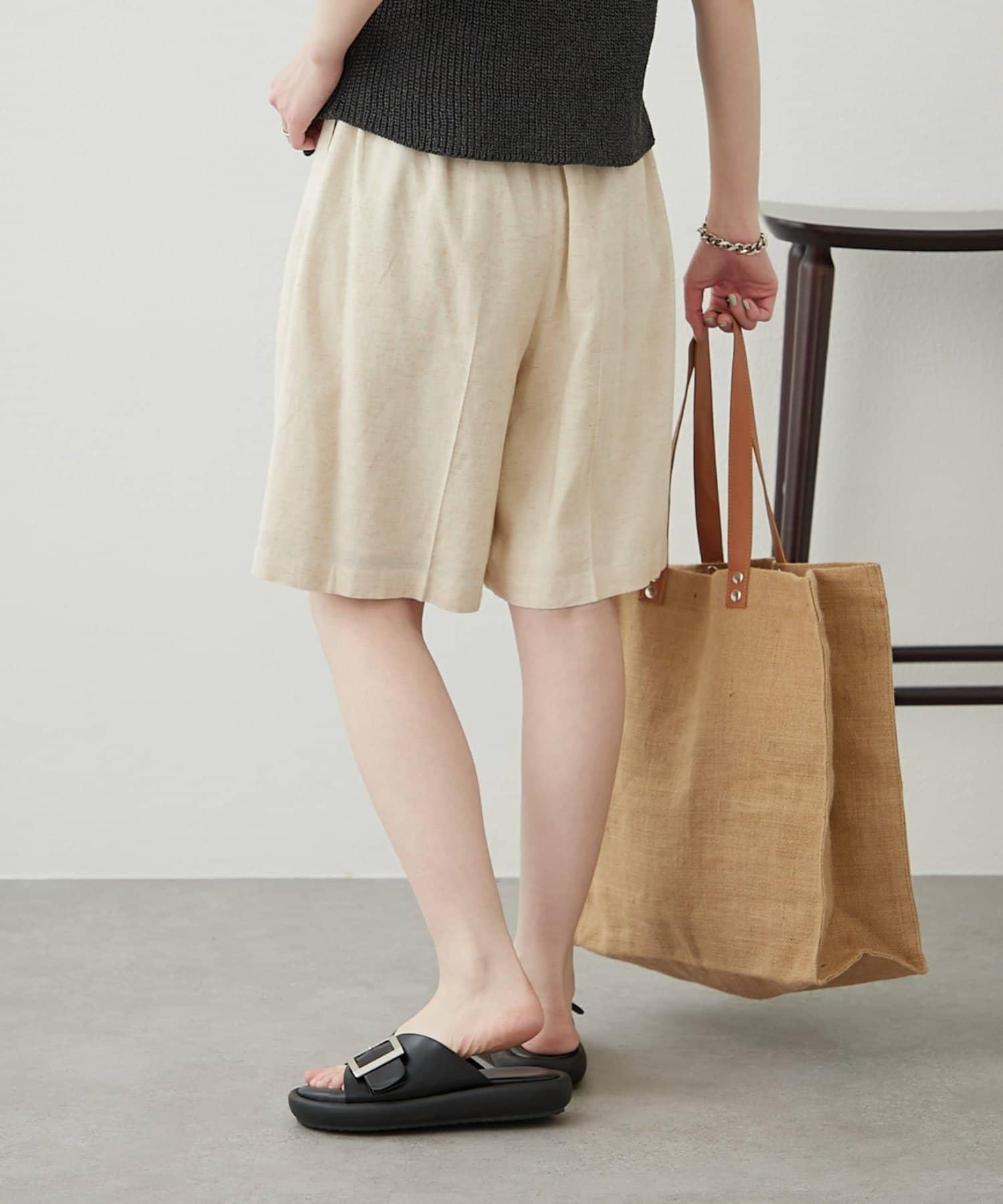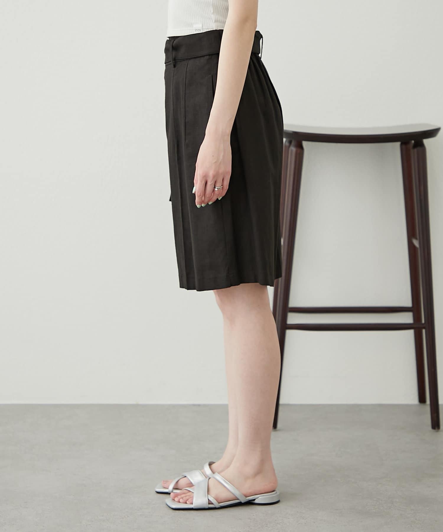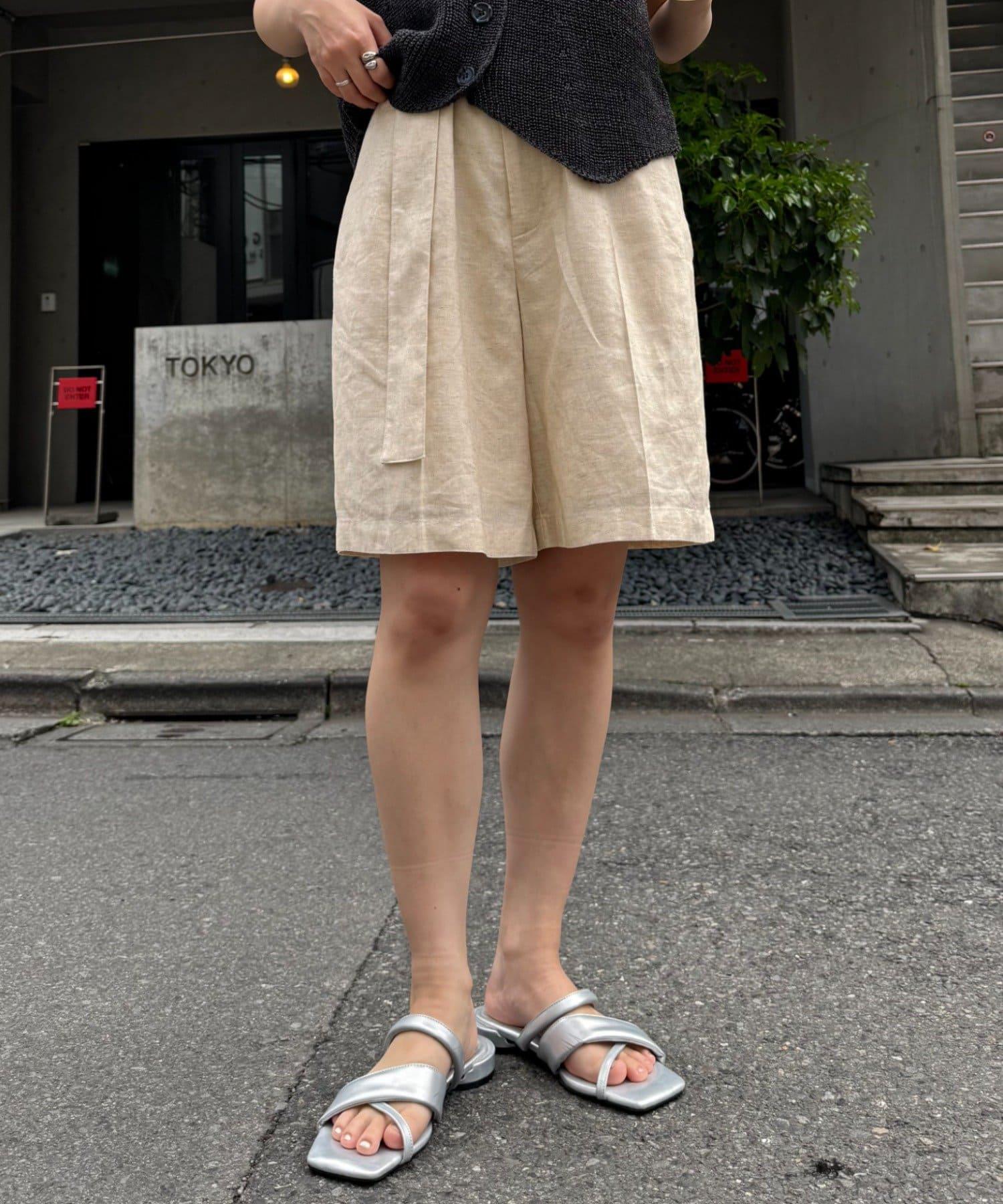 【柳樹】亞麻混紡帶腰帶的短褲