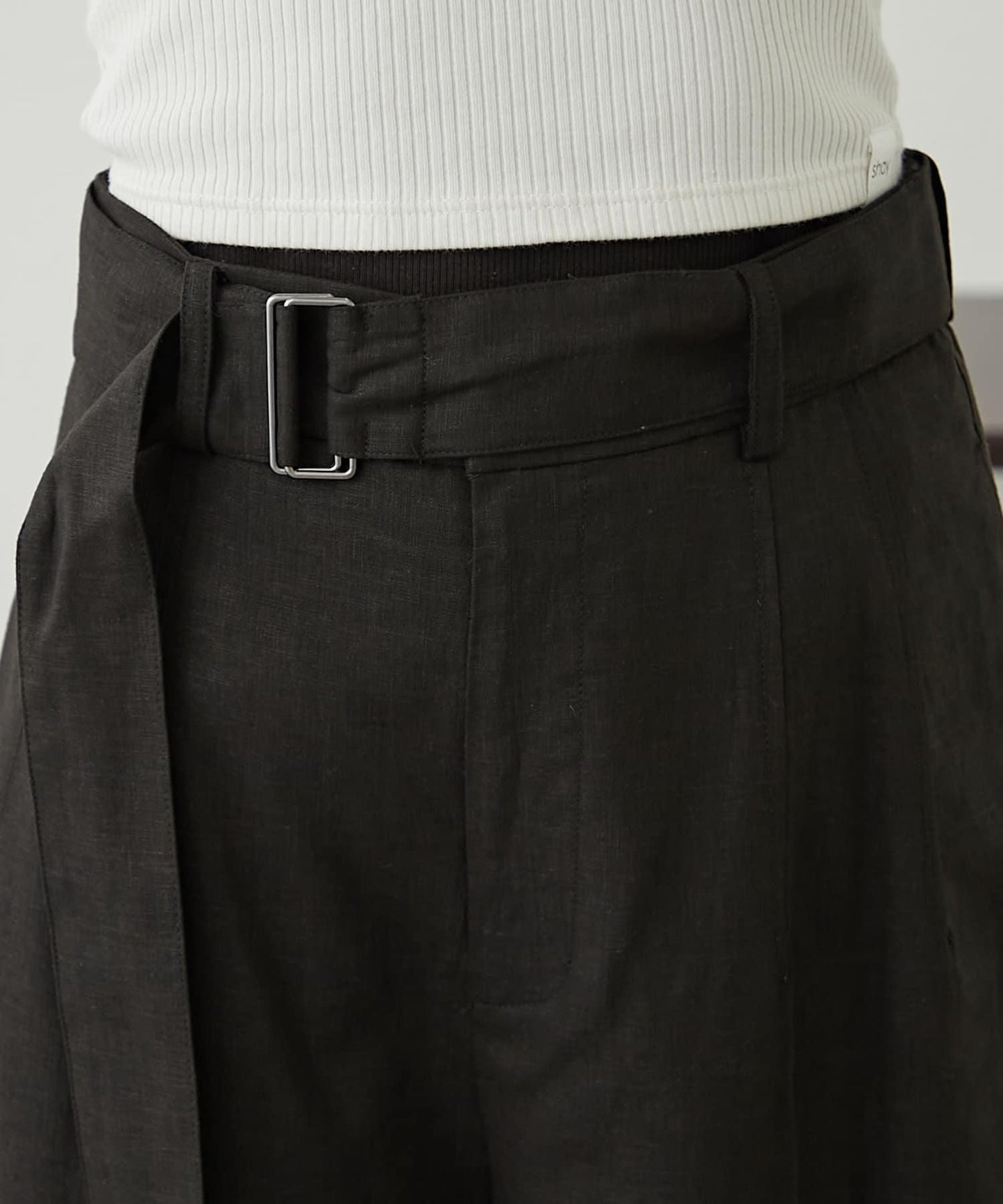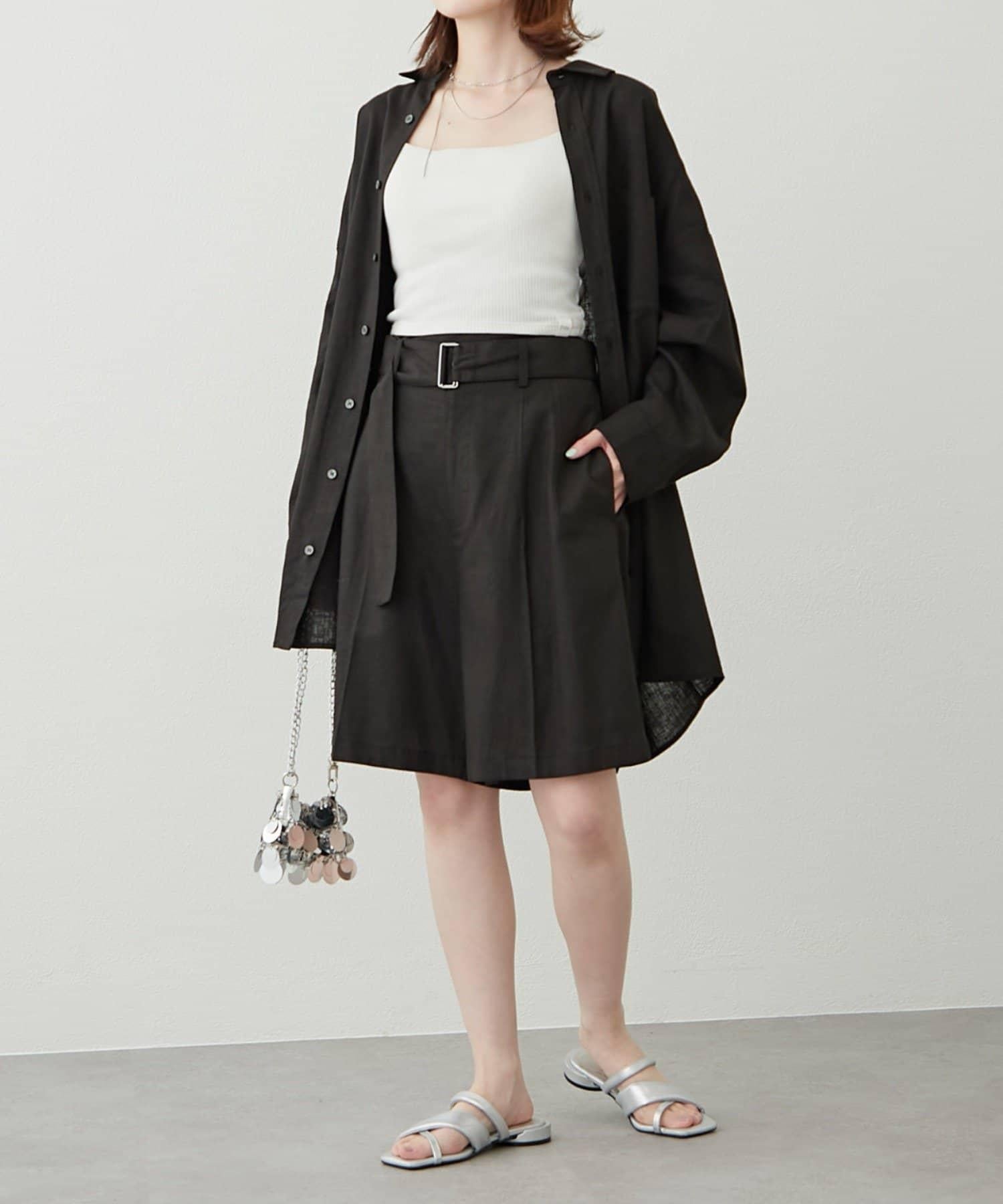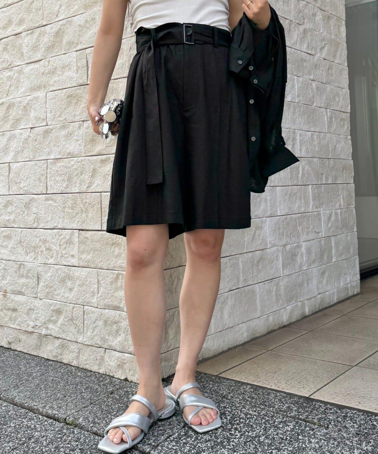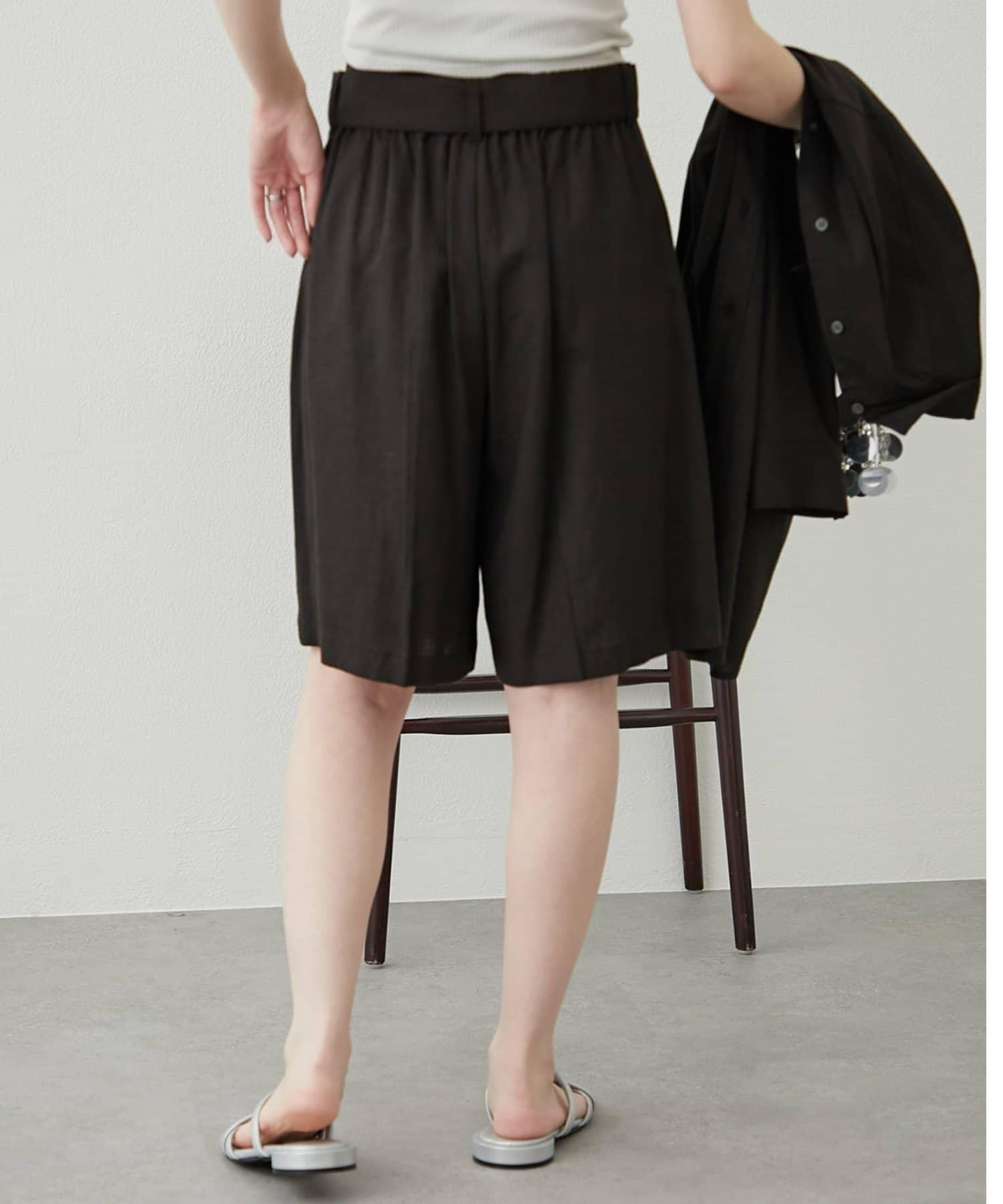 【柳樹】亞麻混紡帶腰帶的短褲