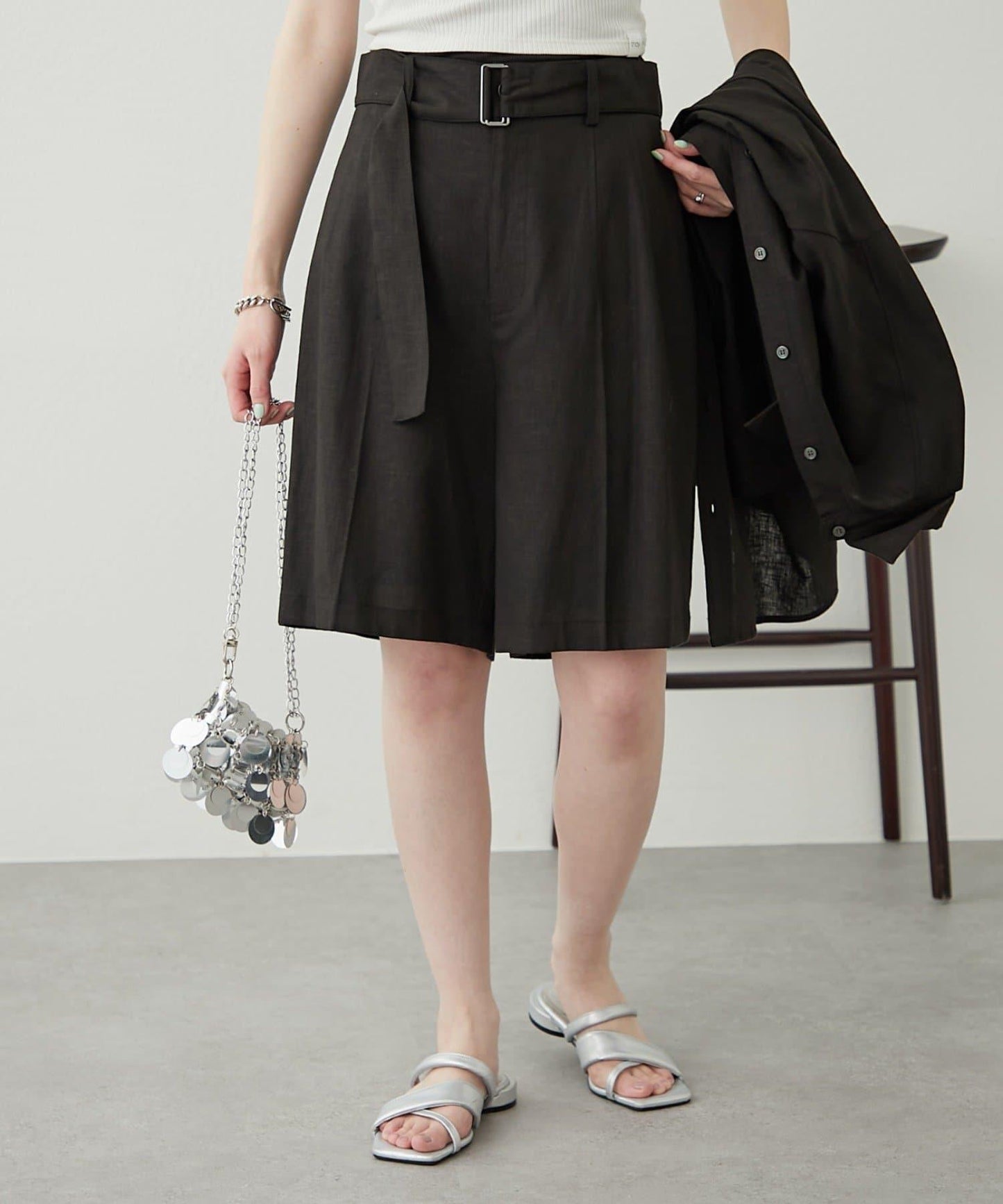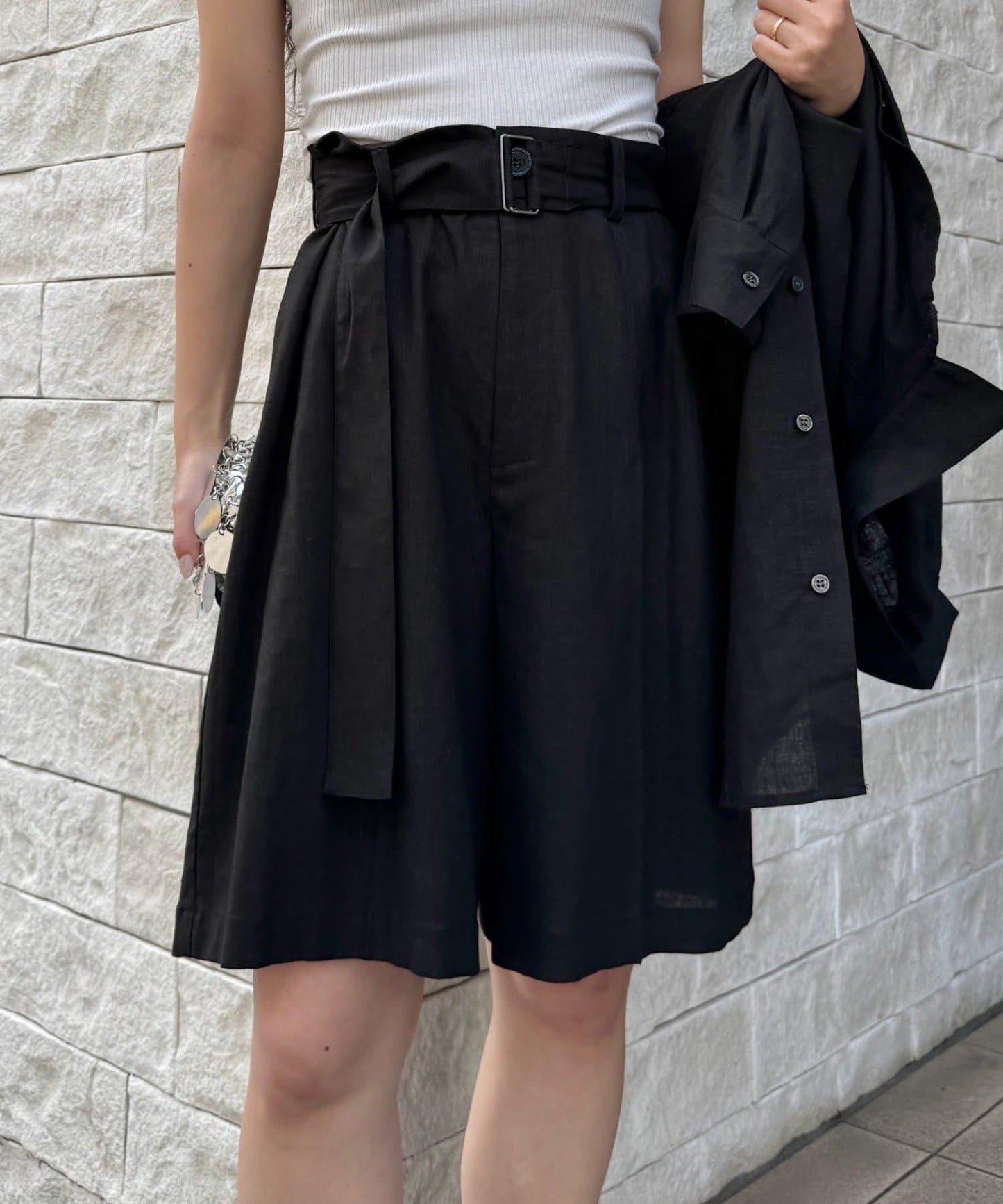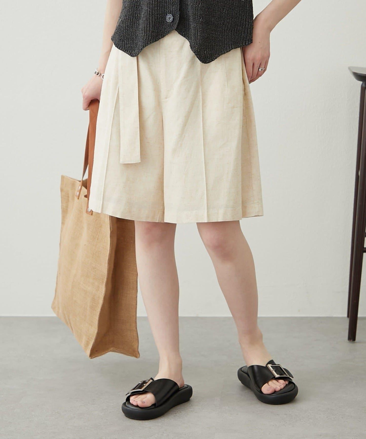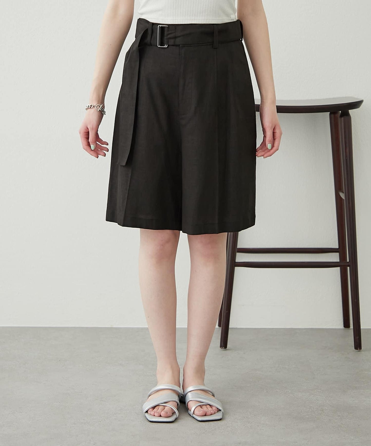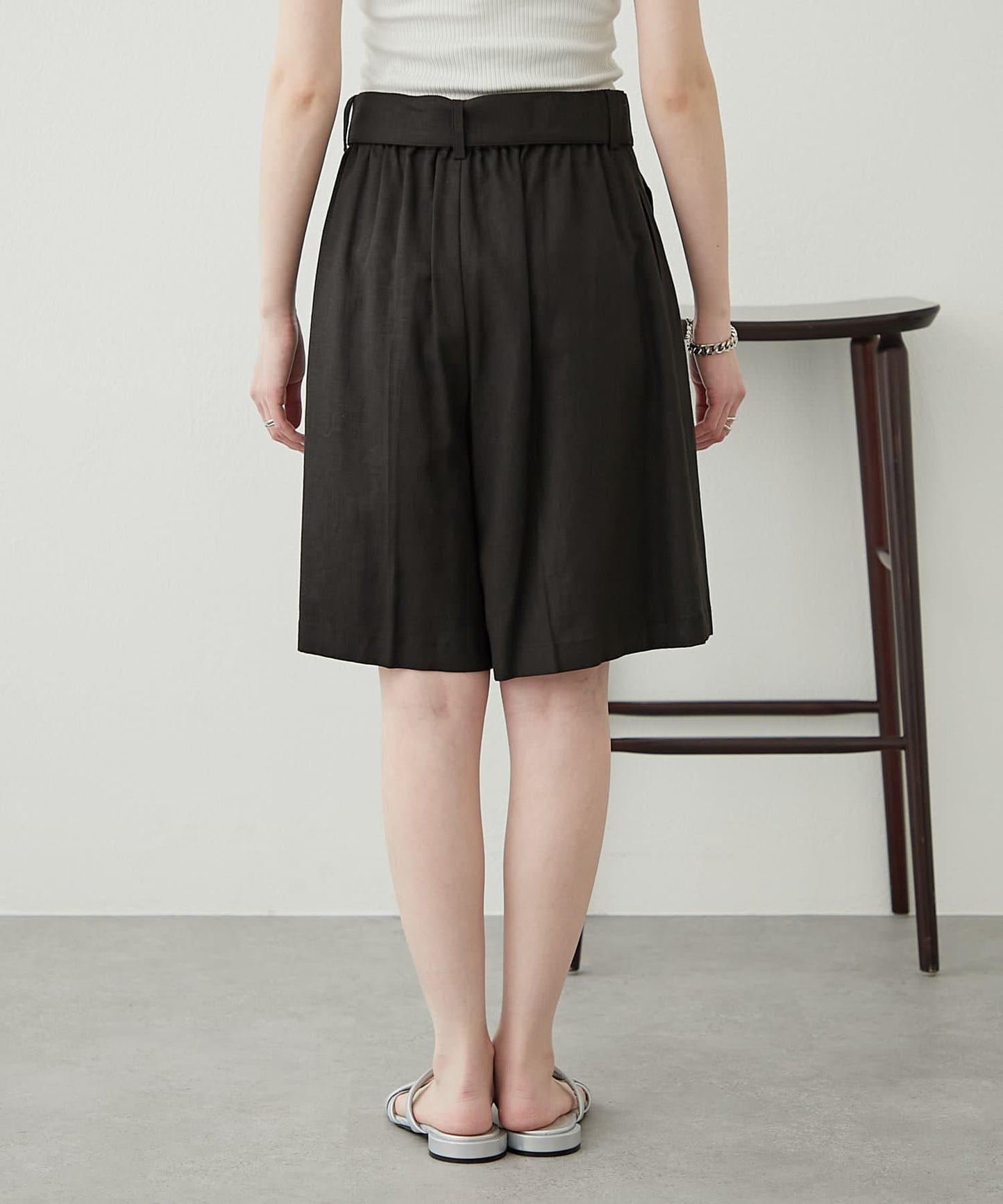 【柳樹】亞麻混紡帶腰帶的短褲