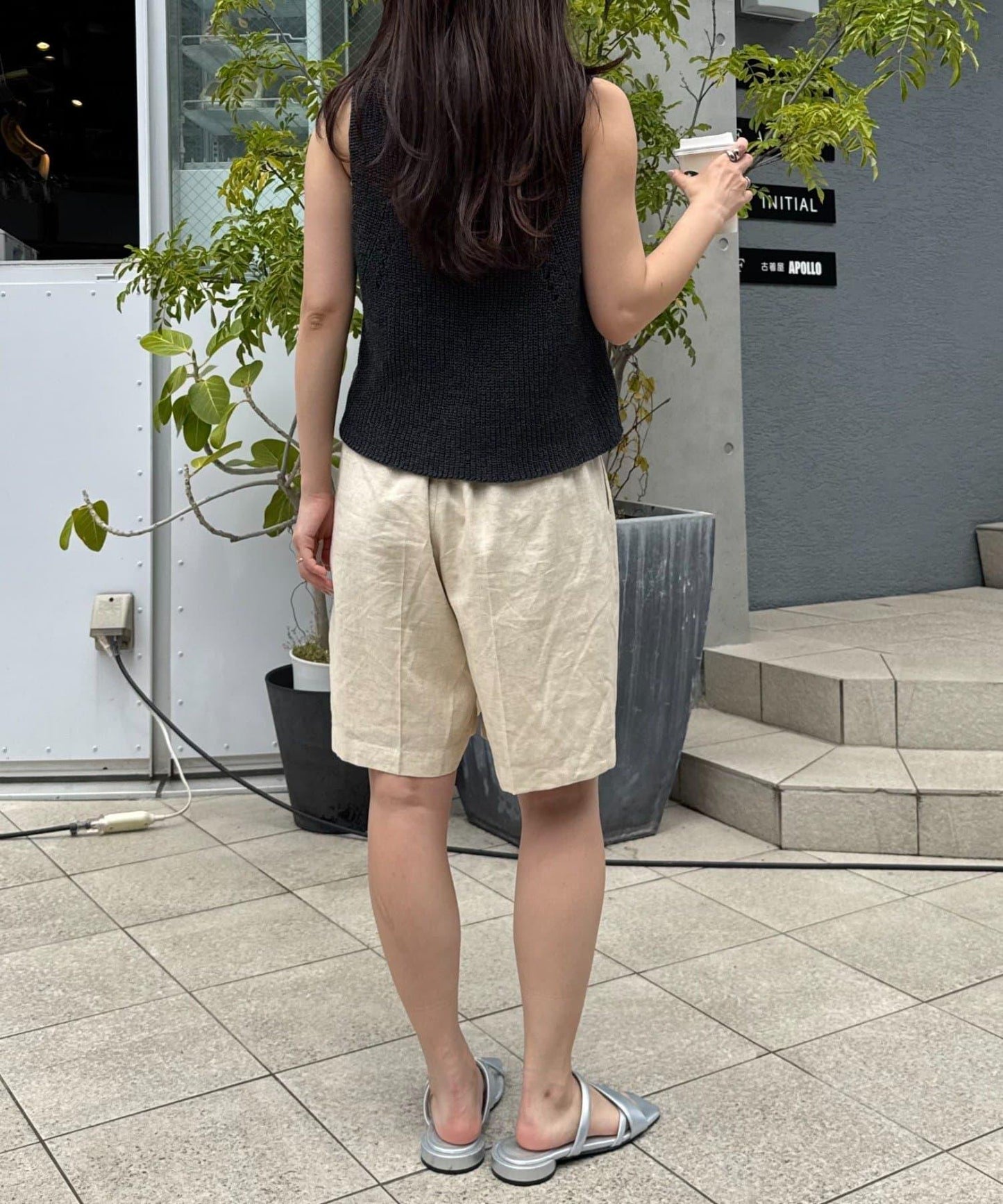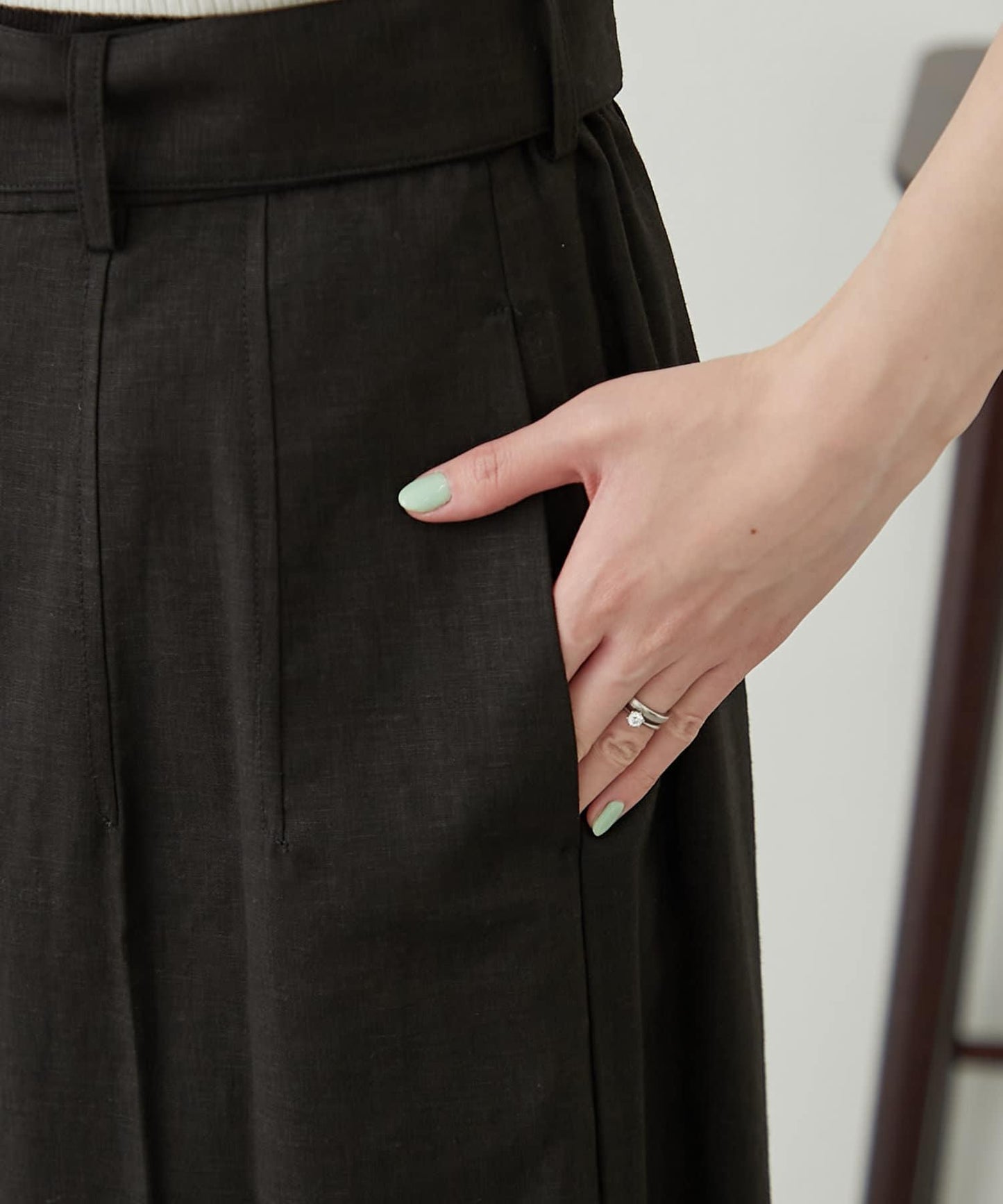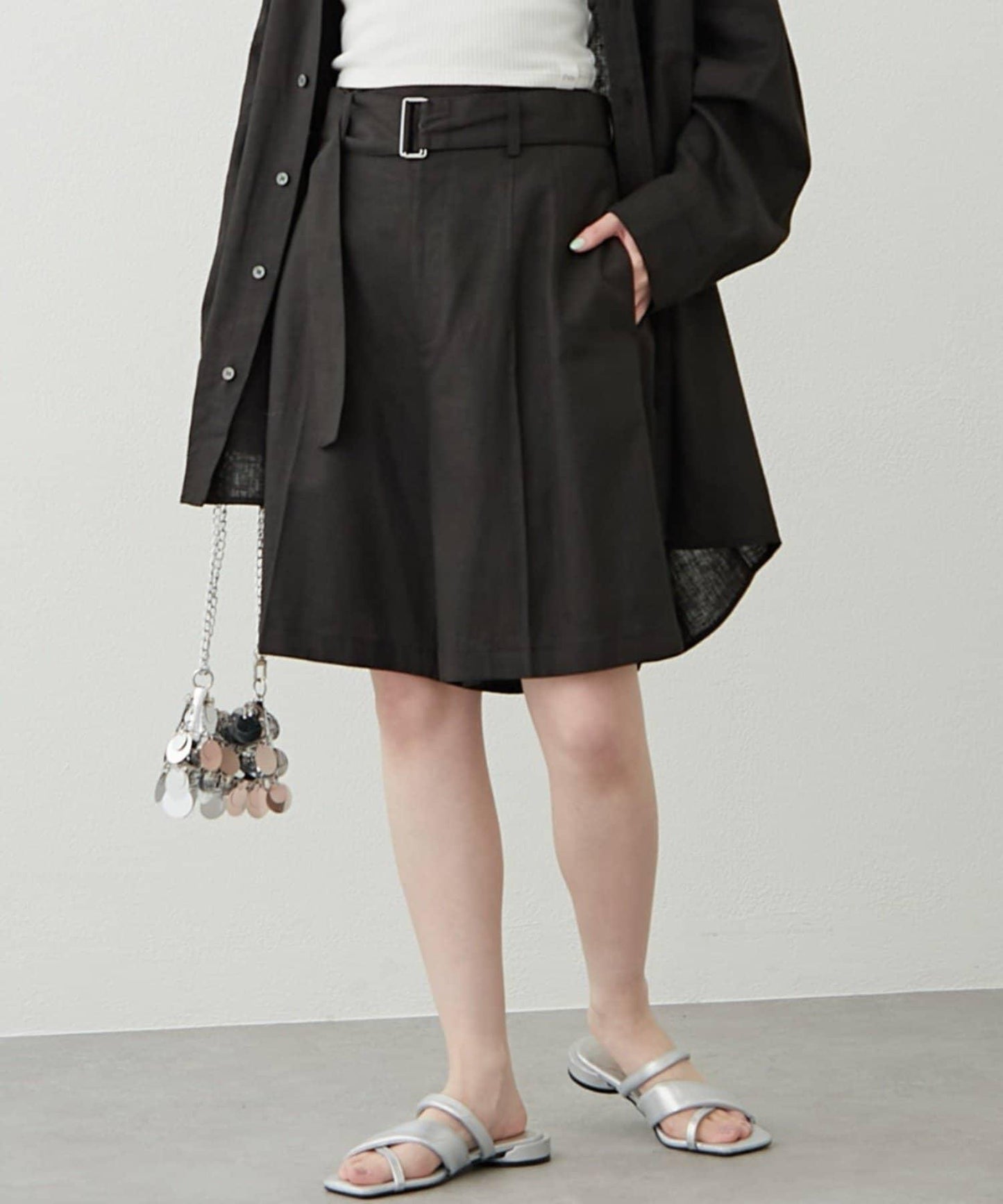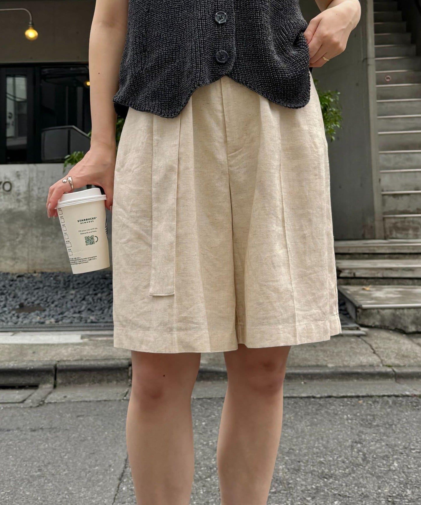 【柳樹】亞麻混紡帶腰帶的短褲