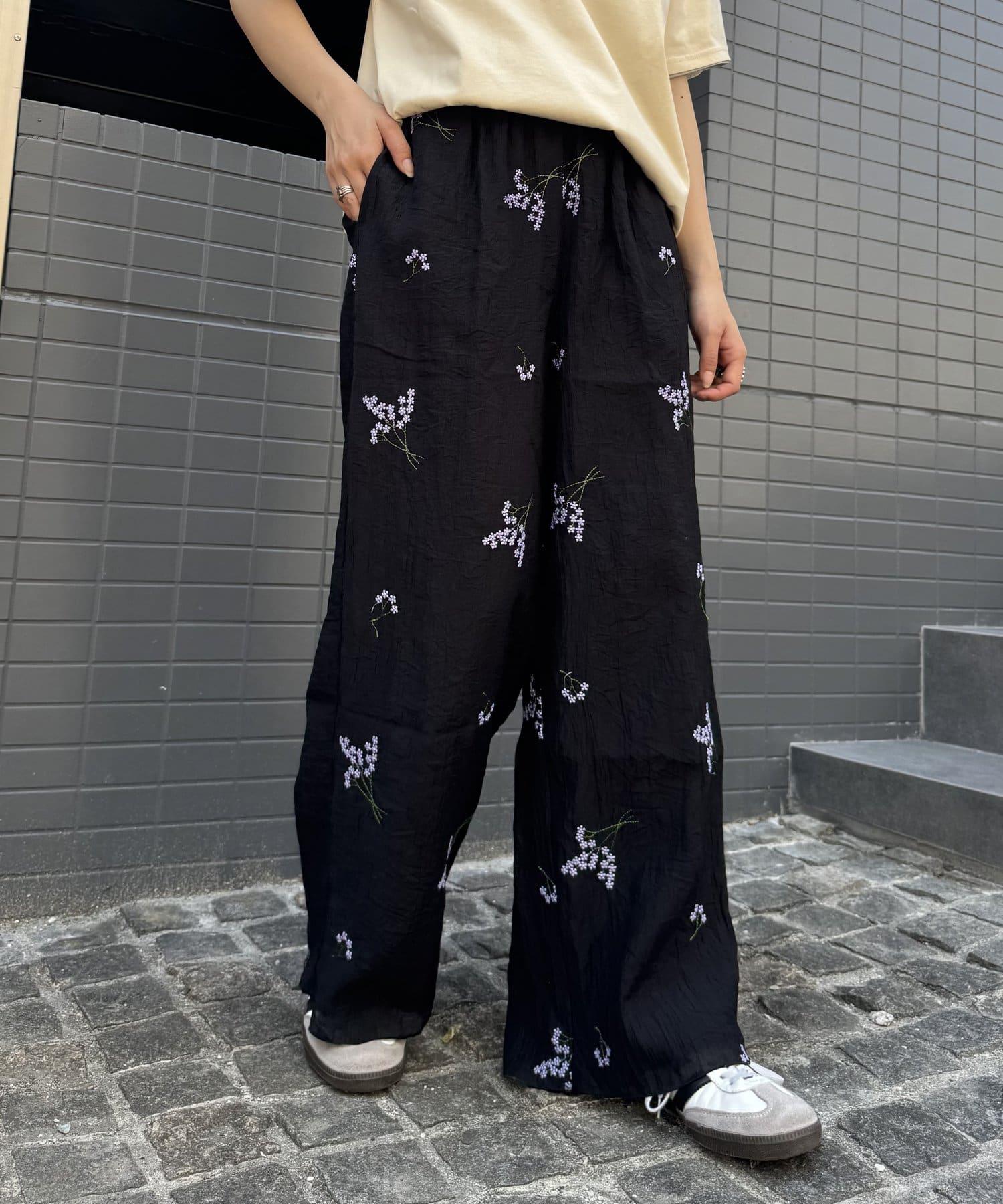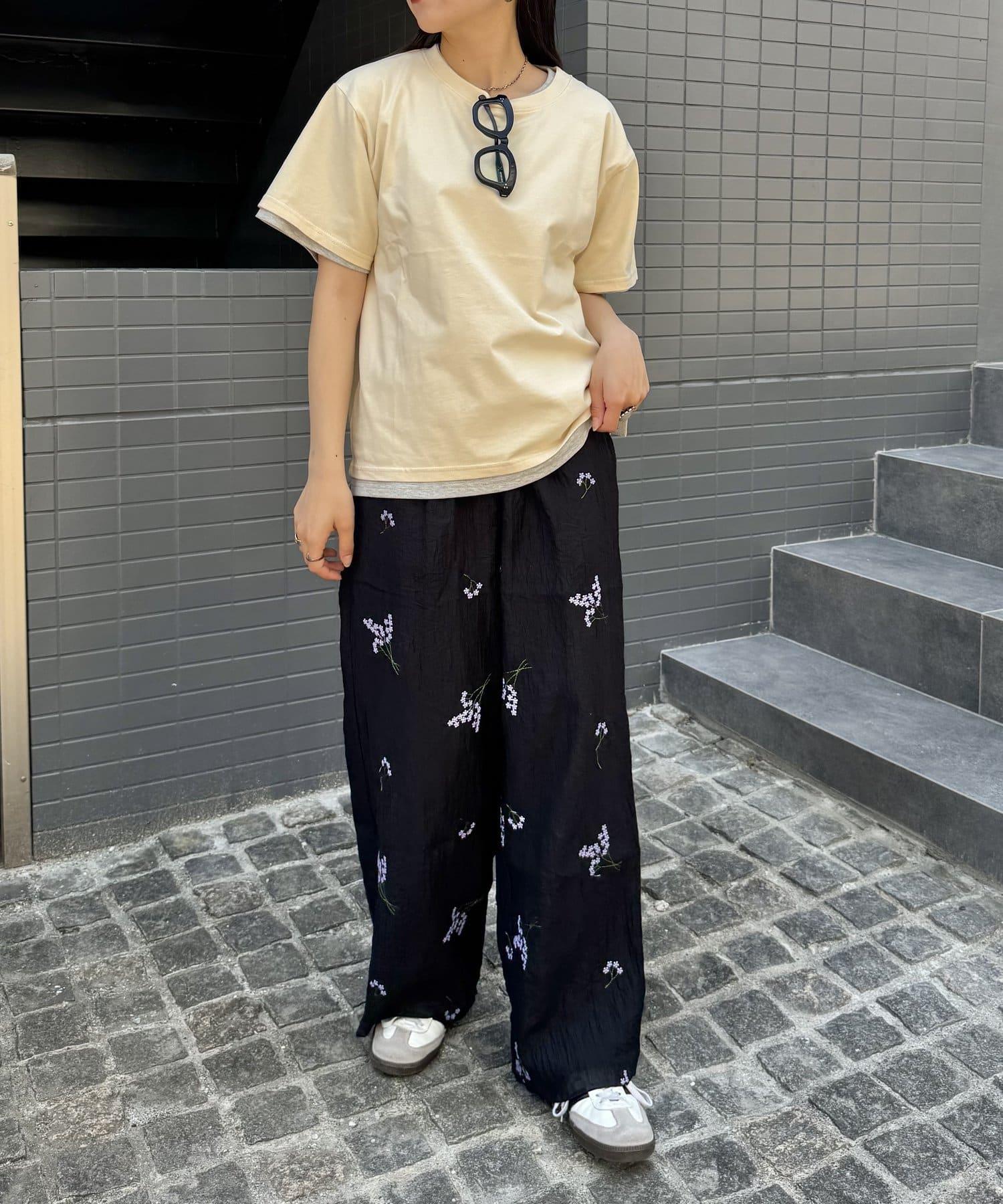 刺繡設計讓簡單的素色上衣也顯得時尚。