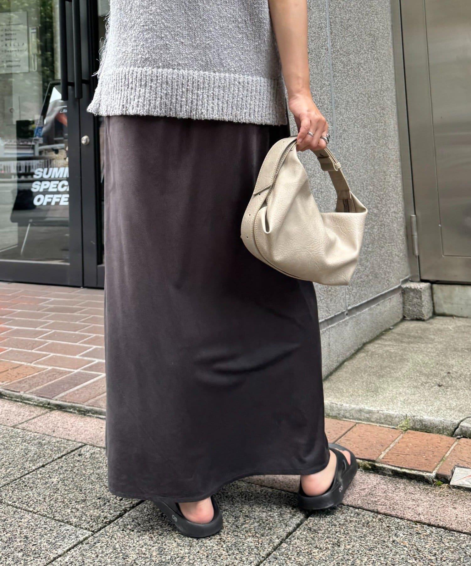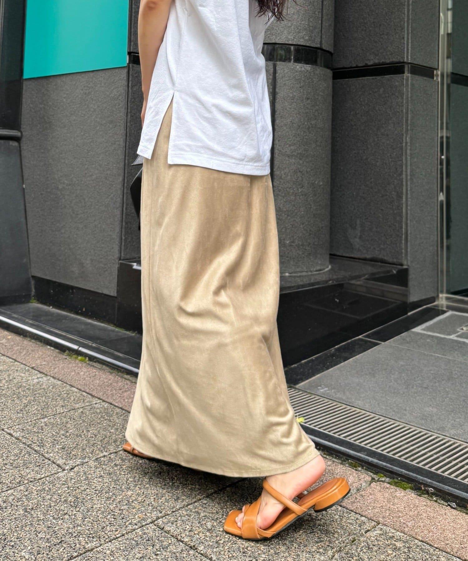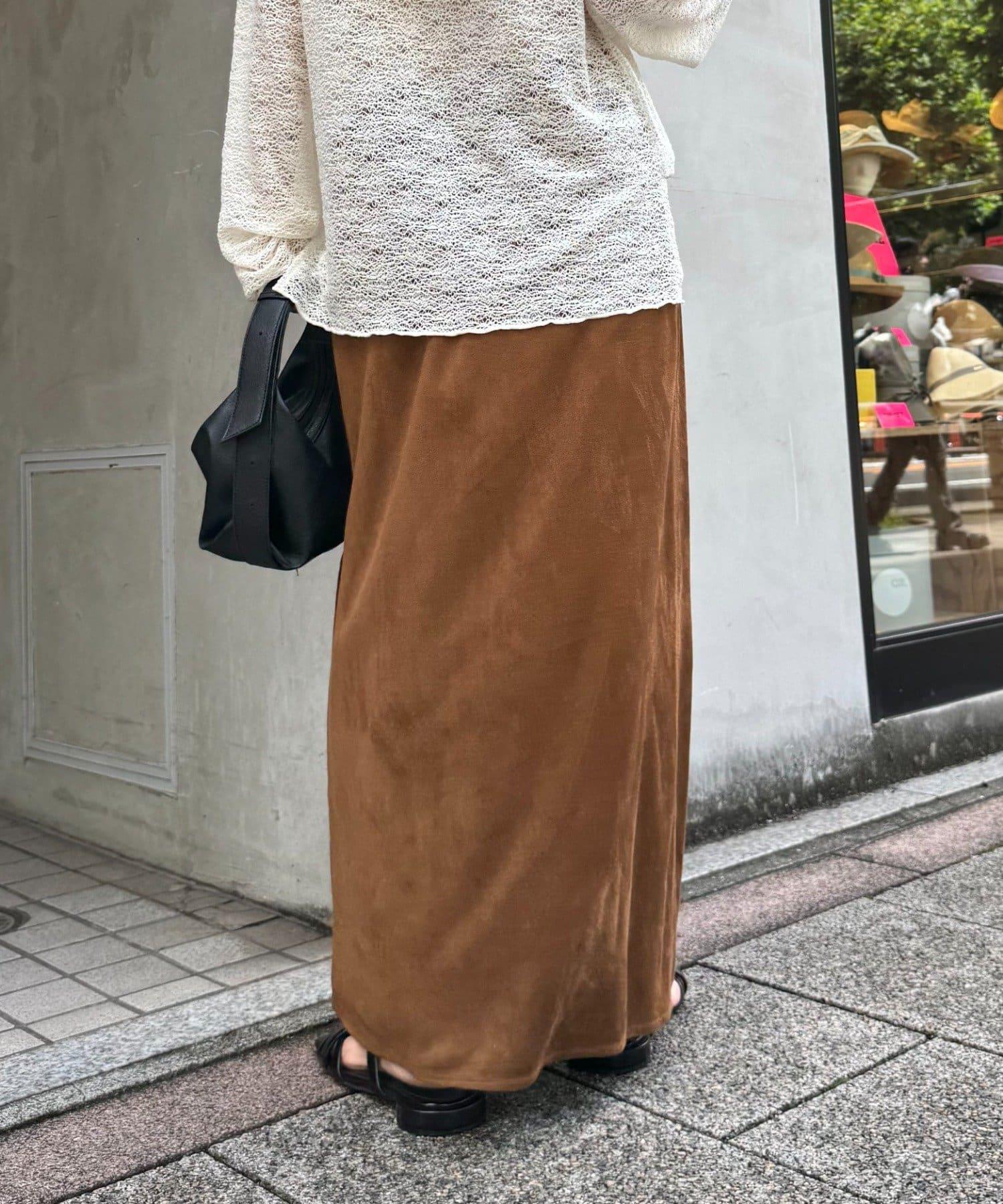 這款直筒裙採用觸感柔軟的麂皮絨面料製成。