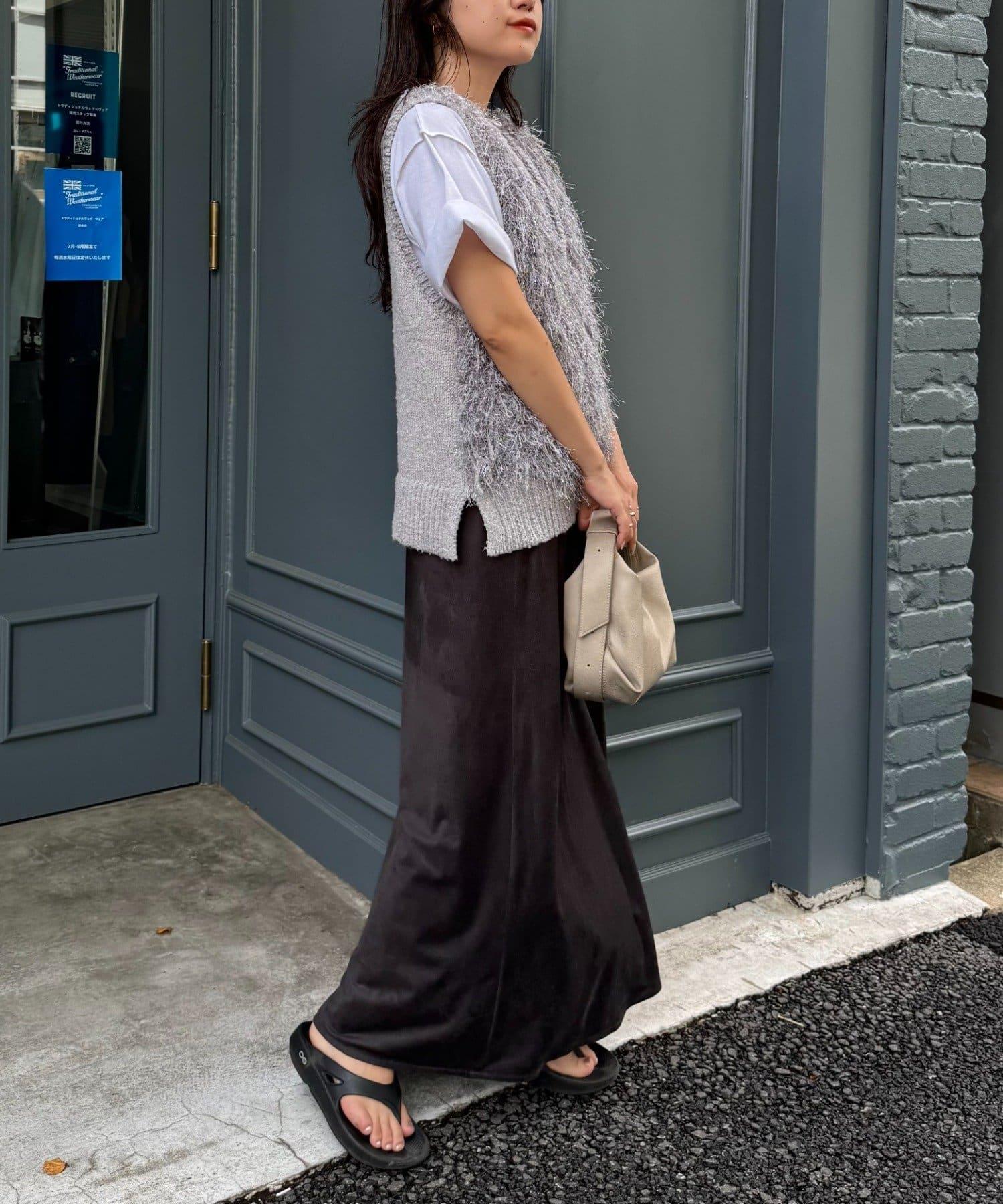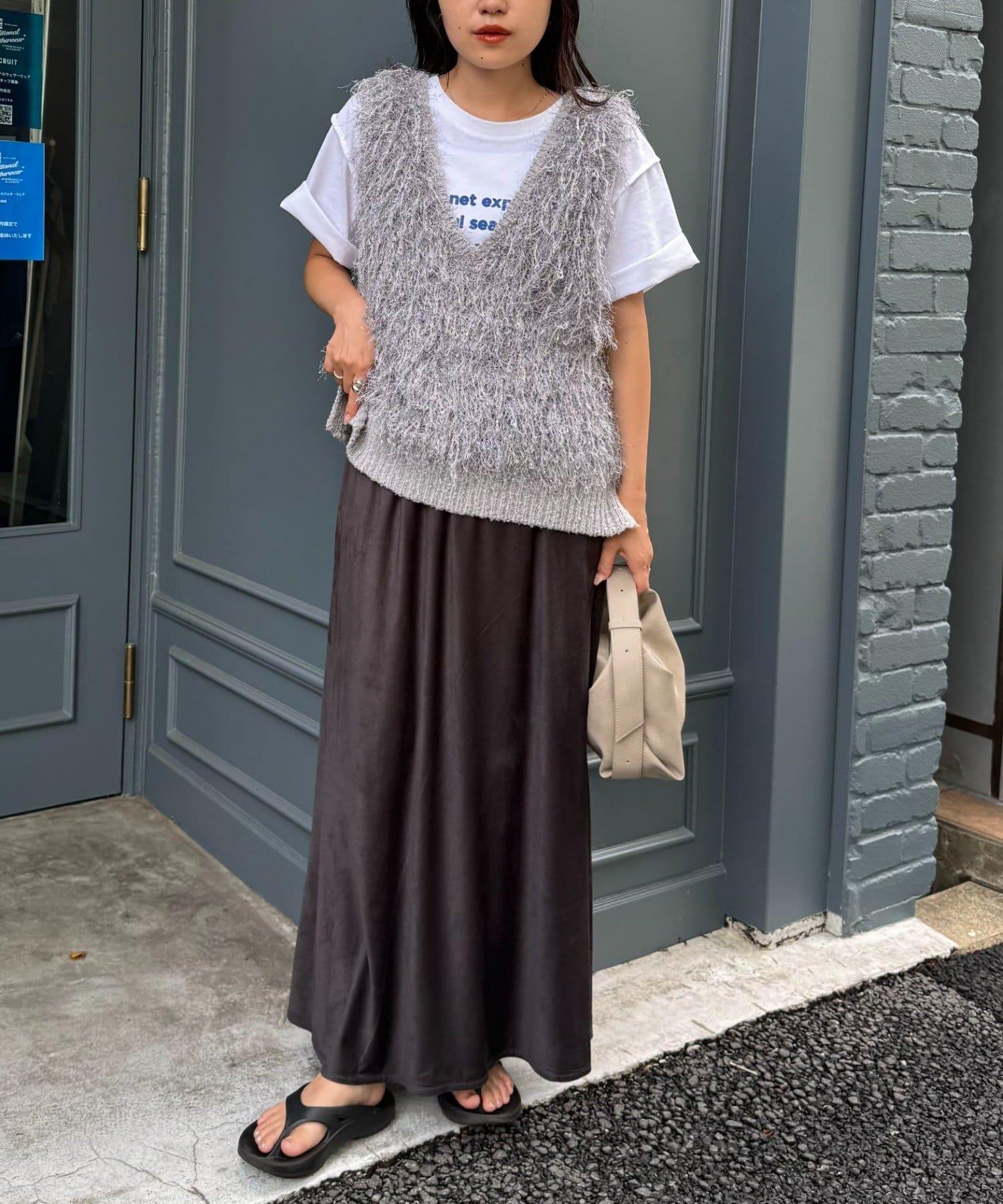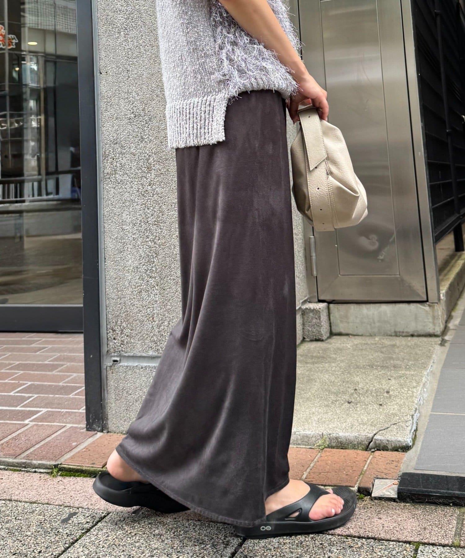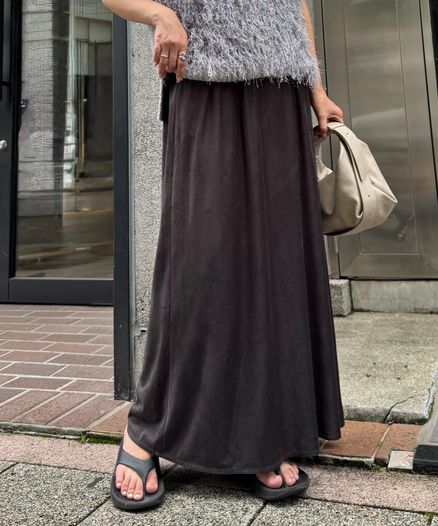 這款直筒裙採用觸感柔軟的麂皮絨面料製成。