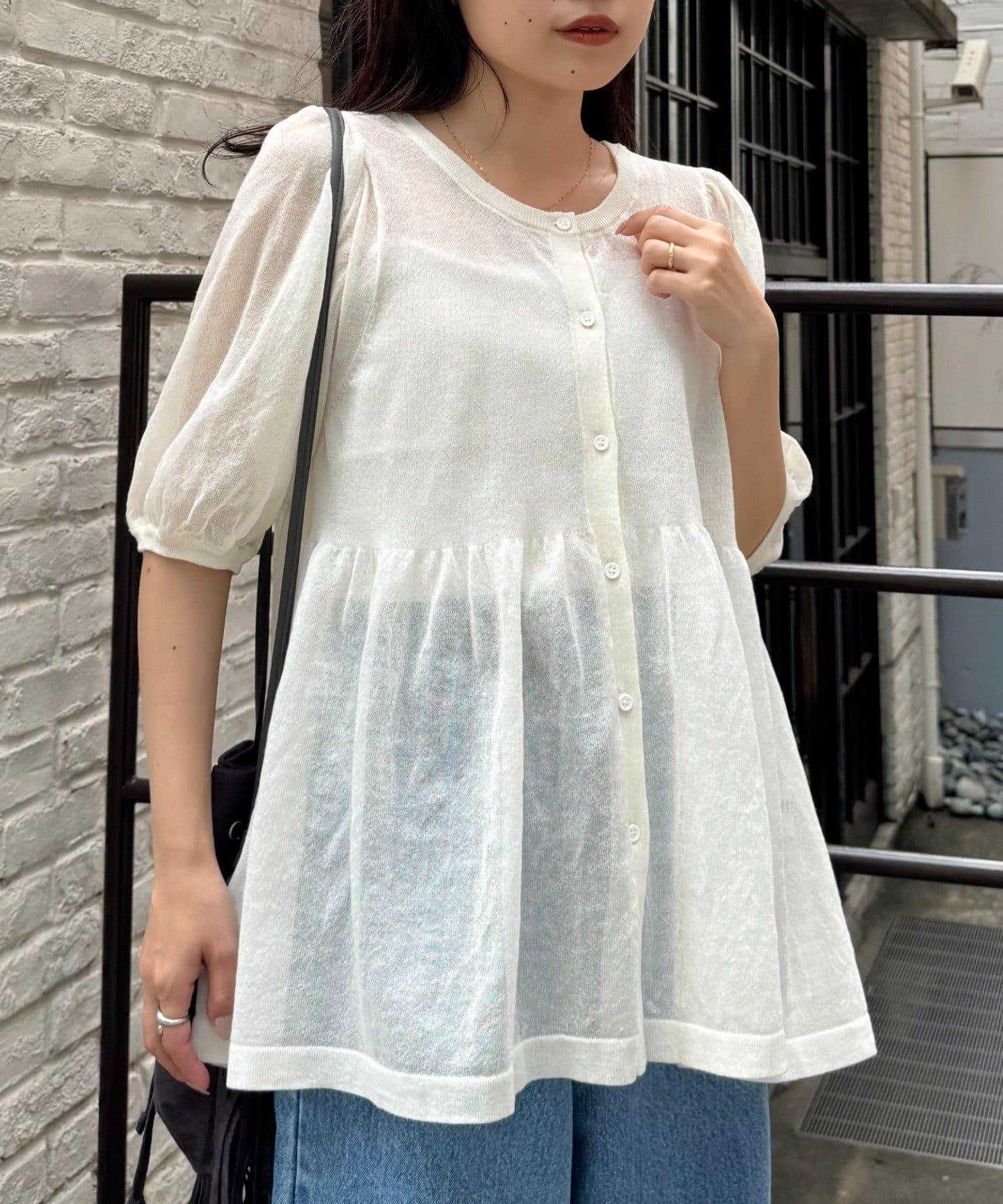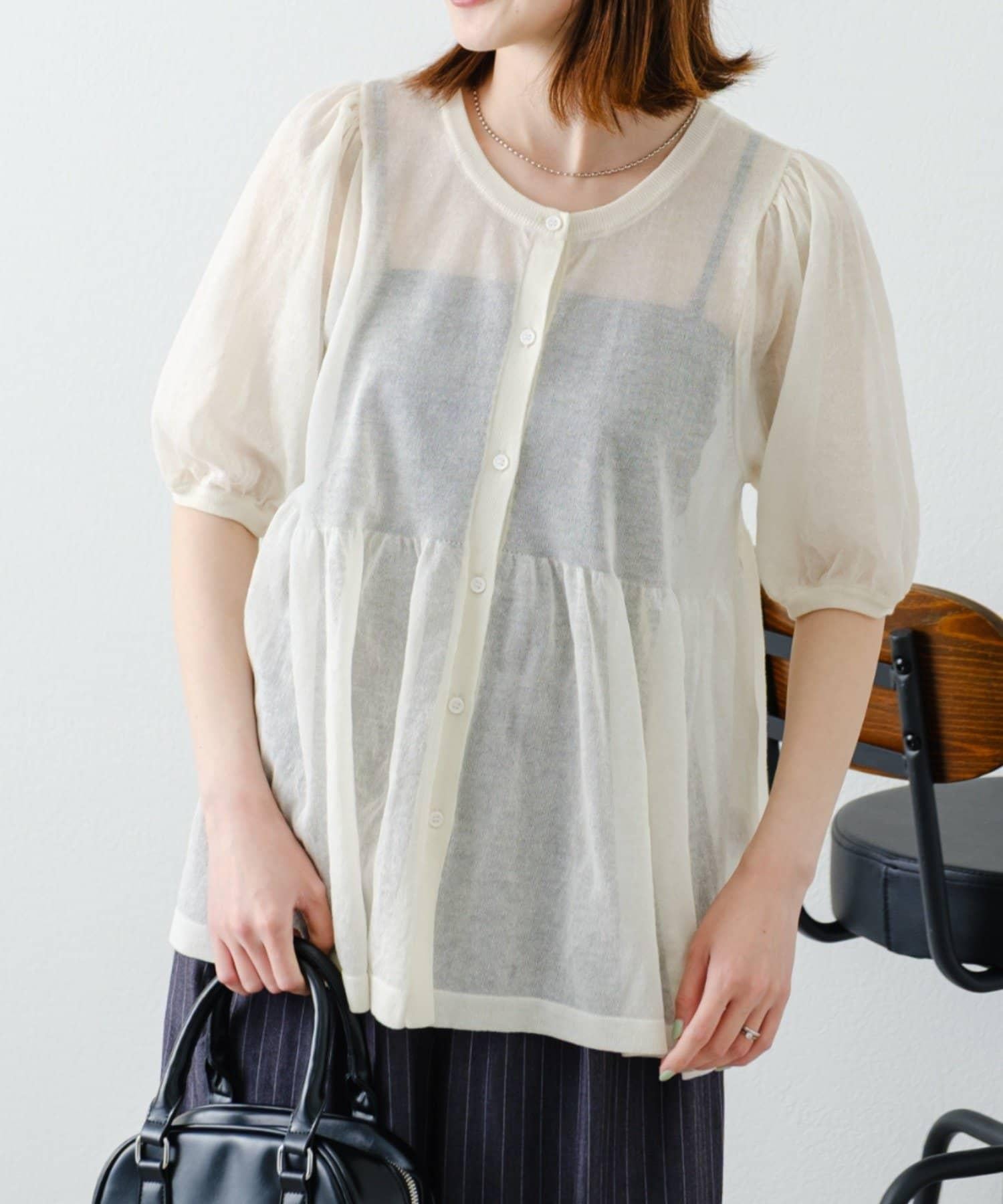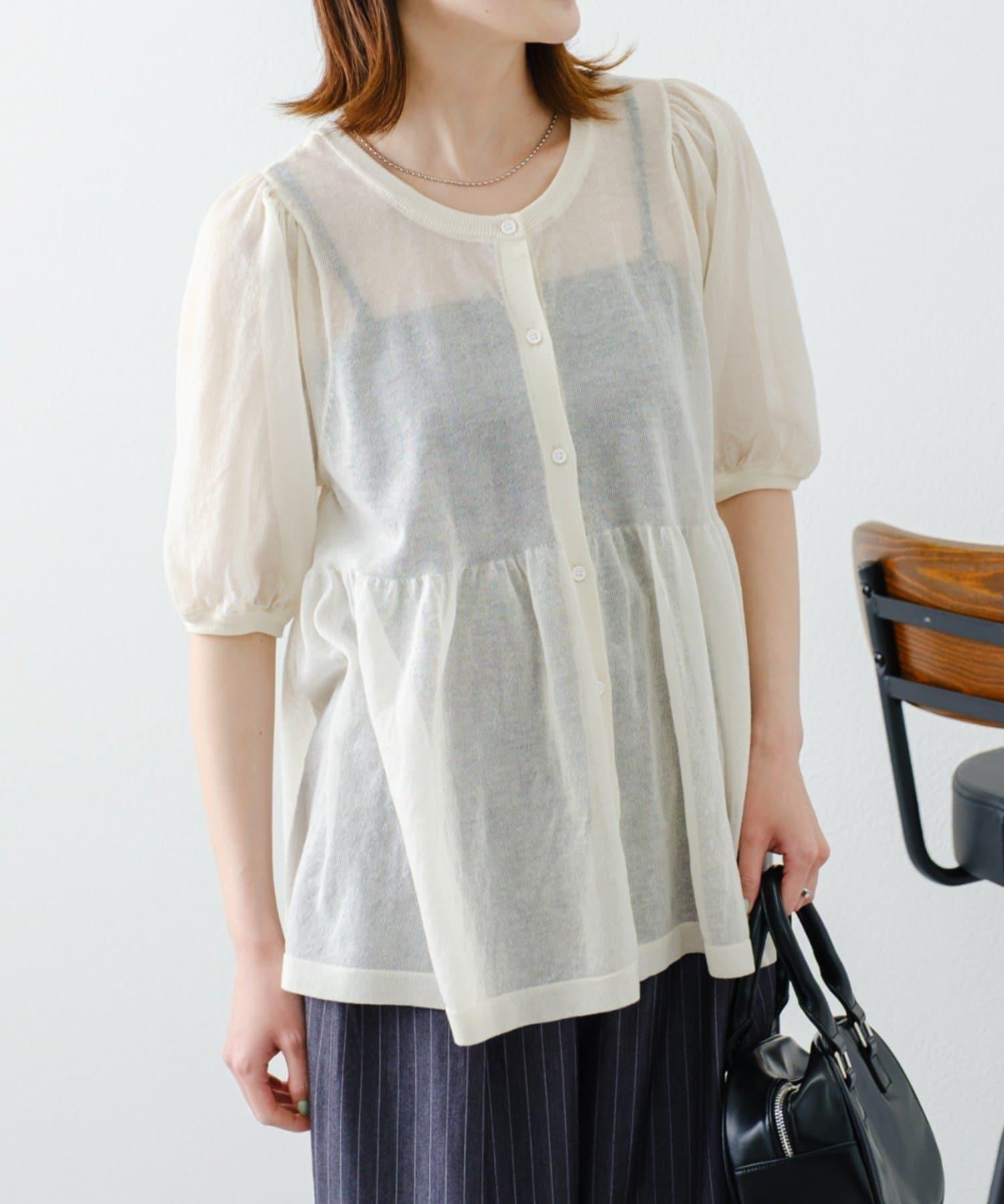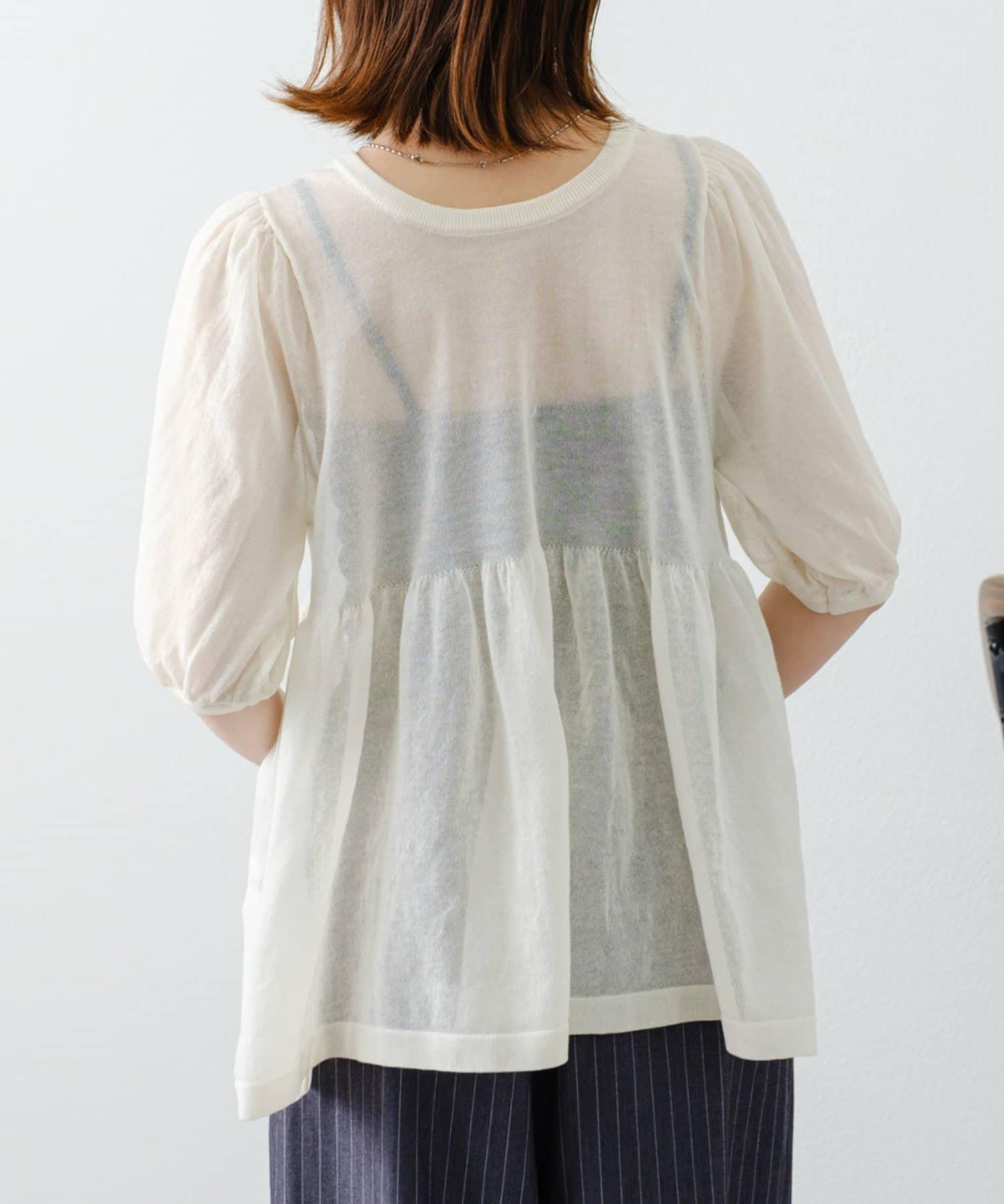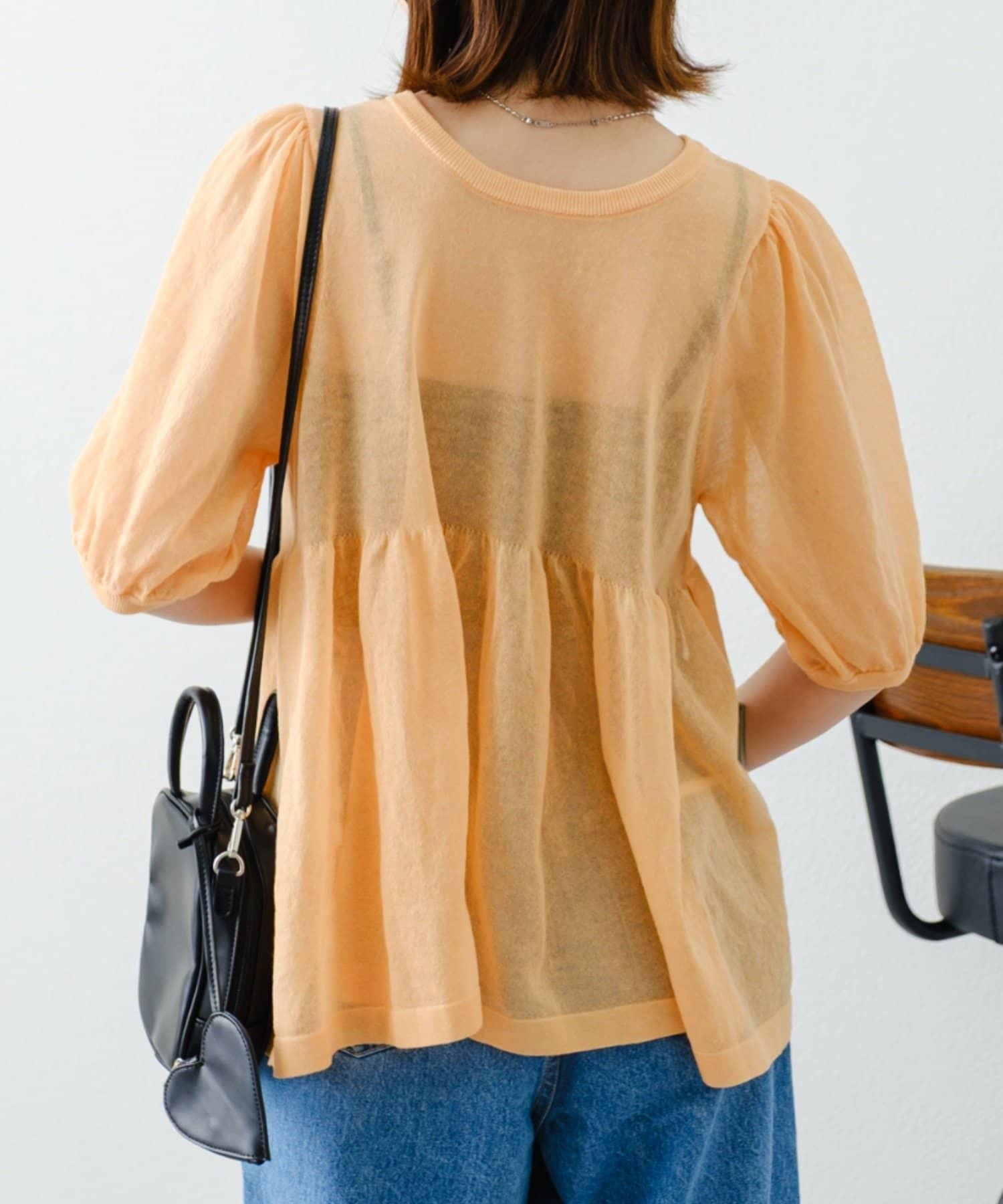 【柳】2WAY透視荷葉邊泡泡袖針織衫