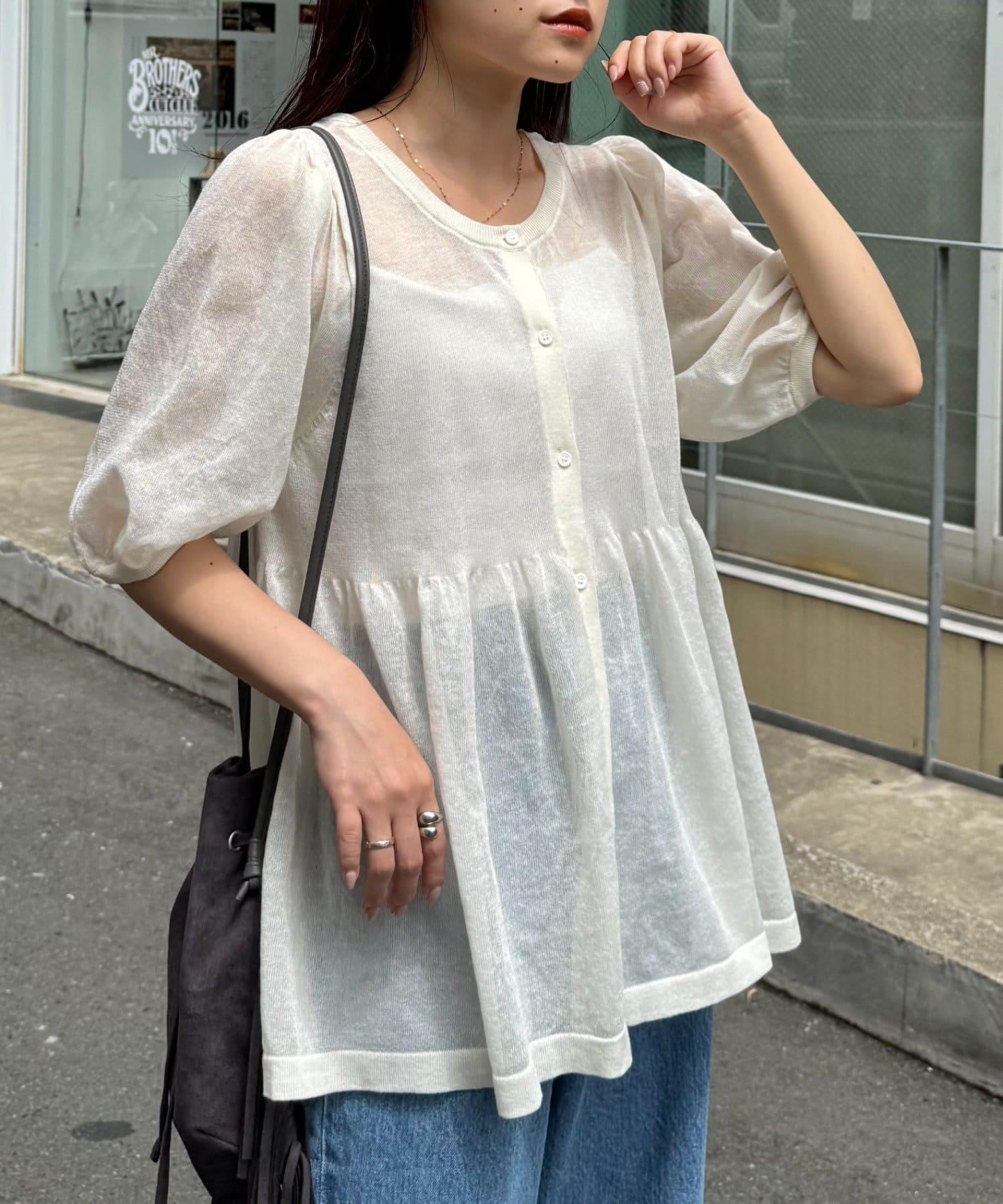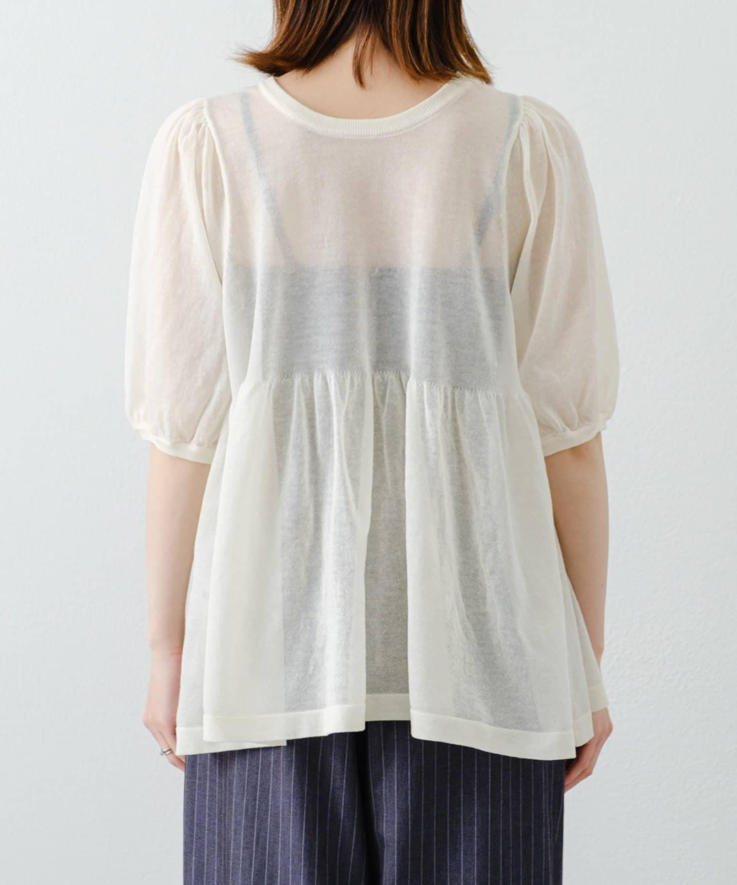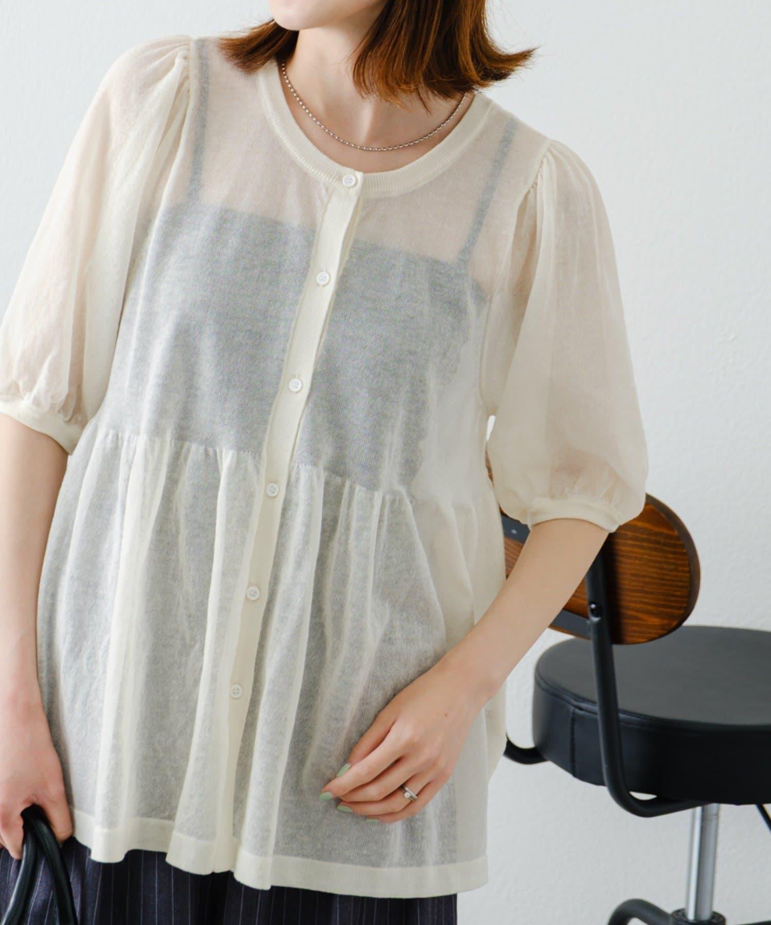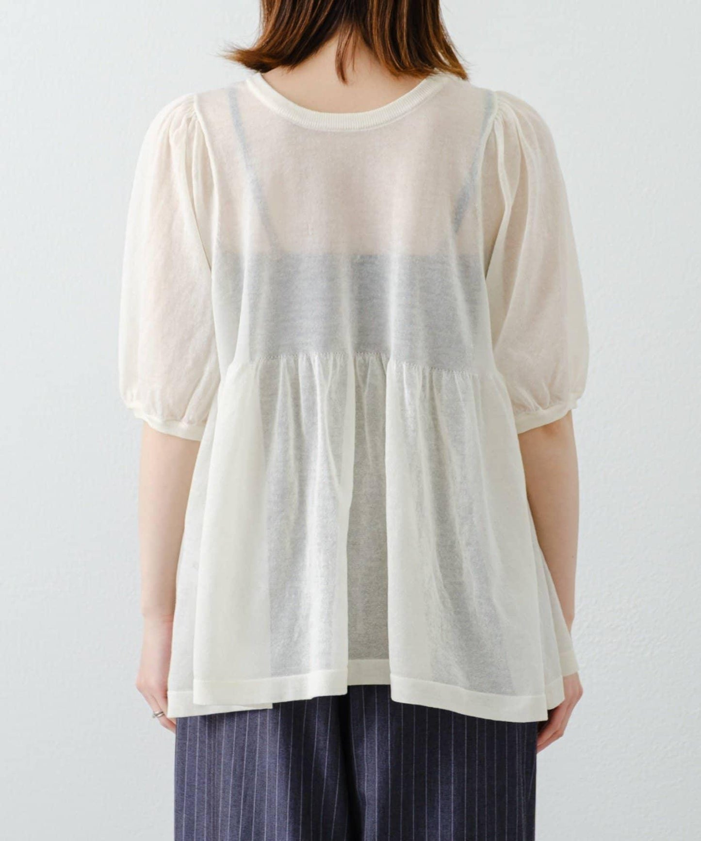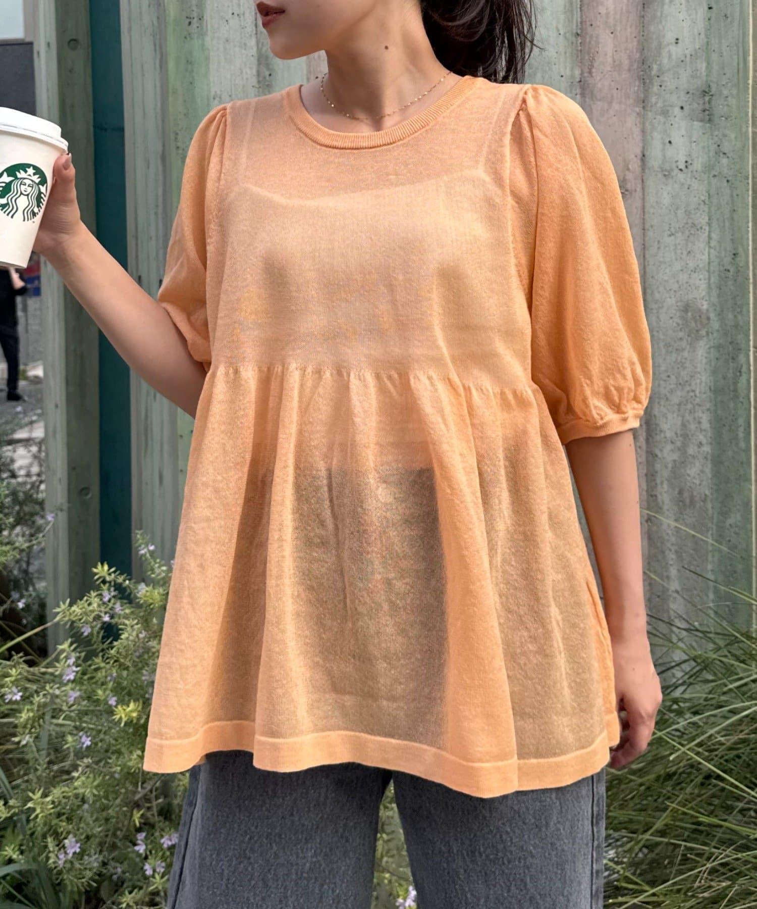 【柳】2WAY透視荷葉邊泡泡袖針織衫