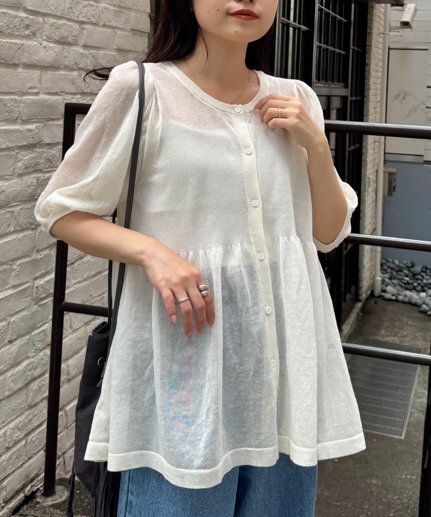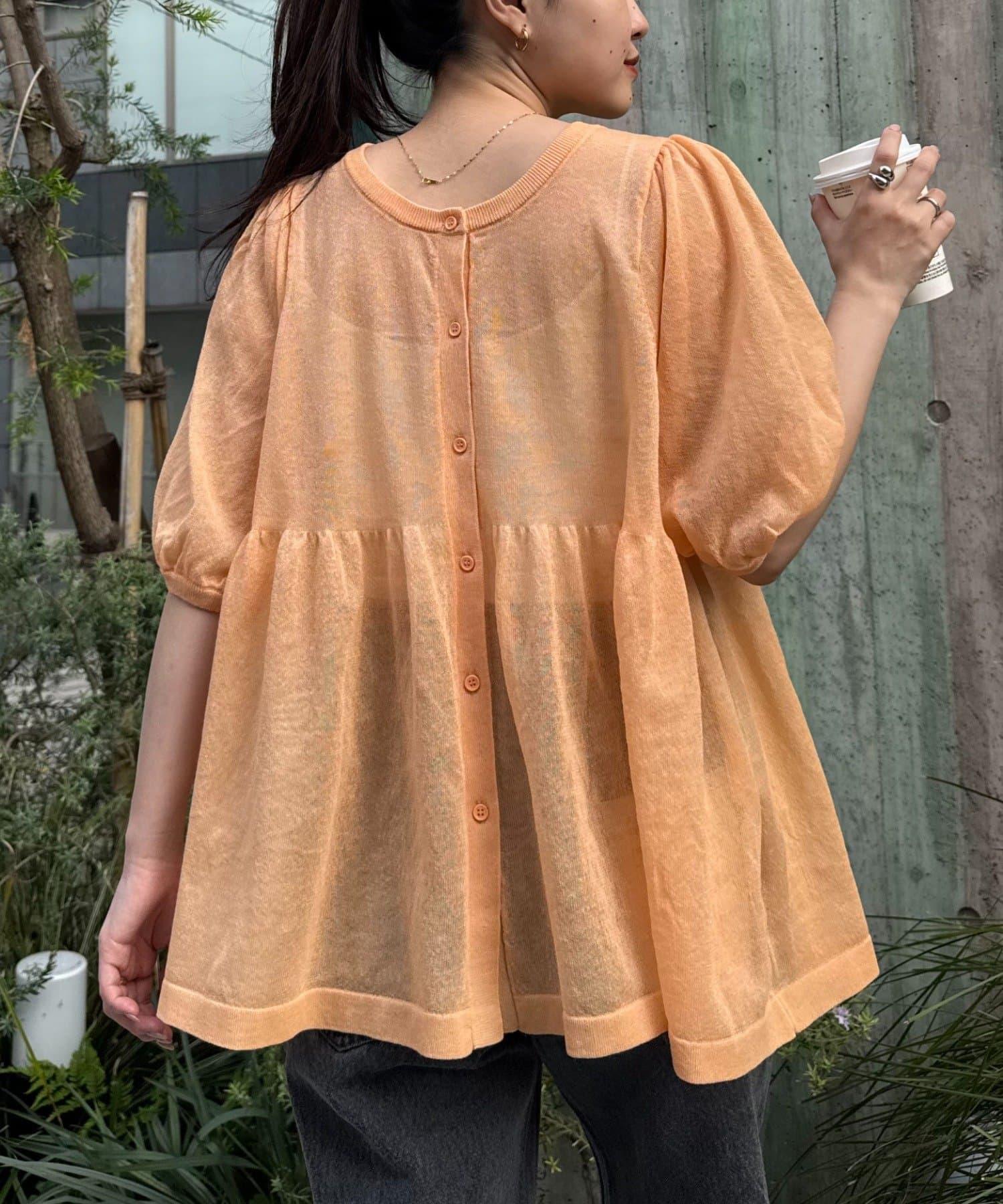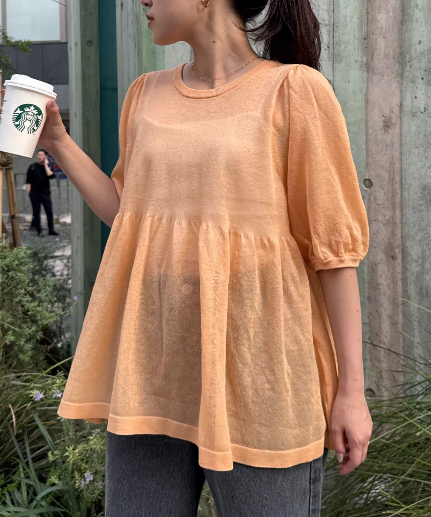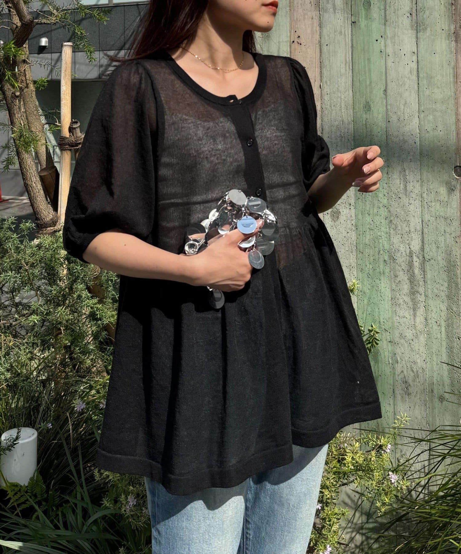 【柳】2WAY透視荷葉邊泡泡袖針織衫