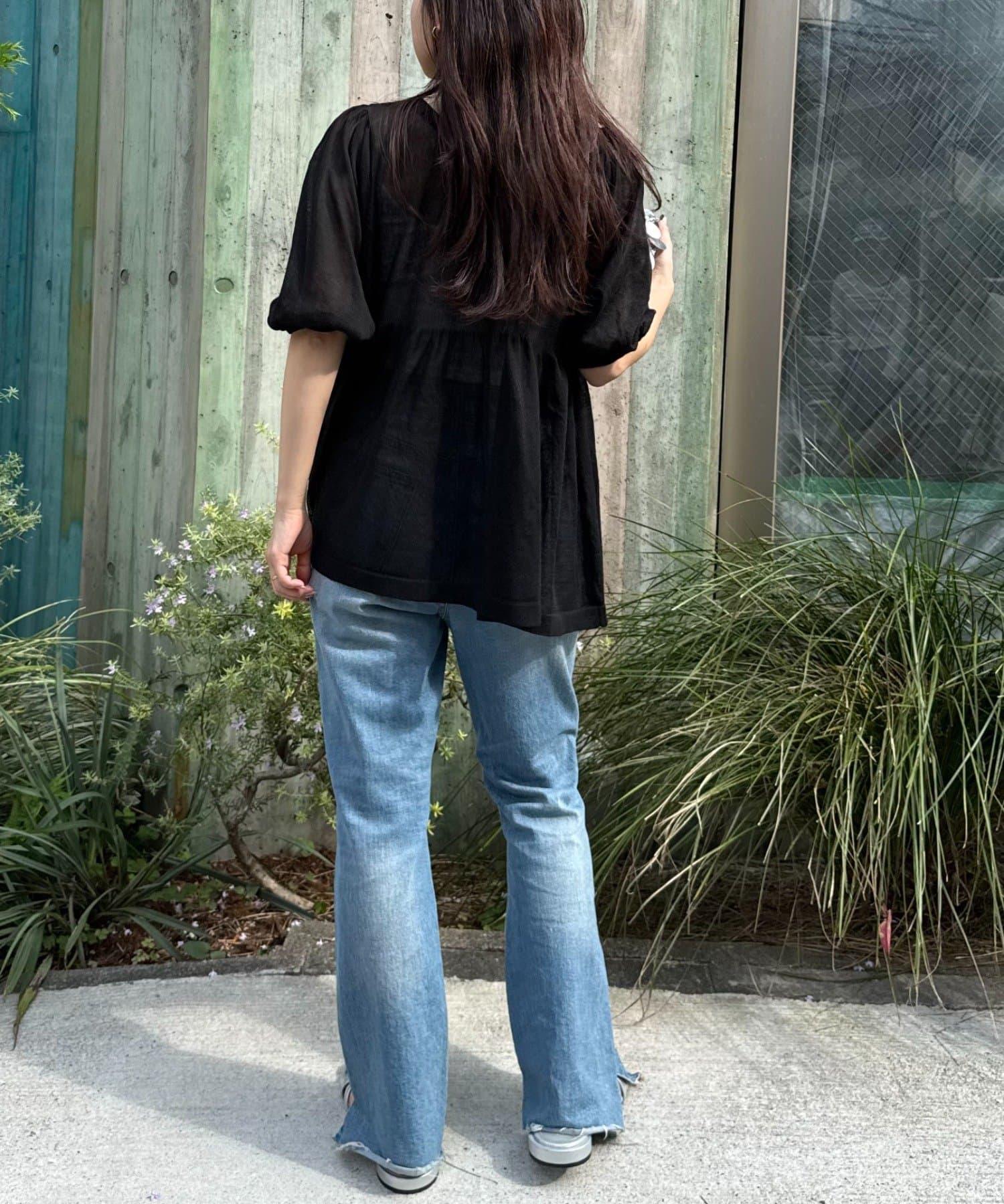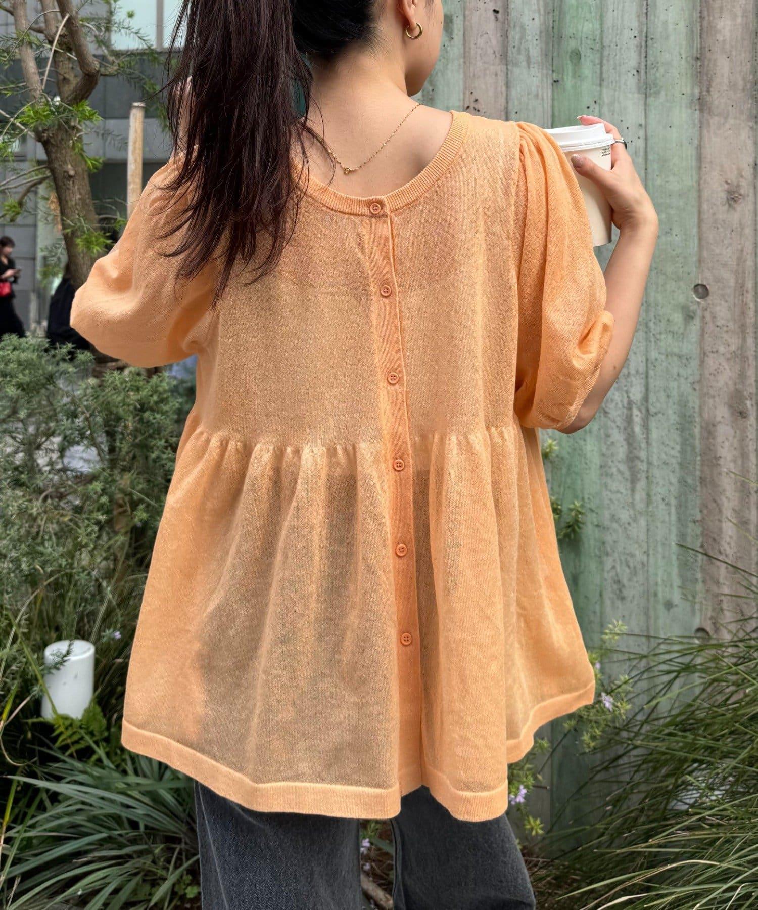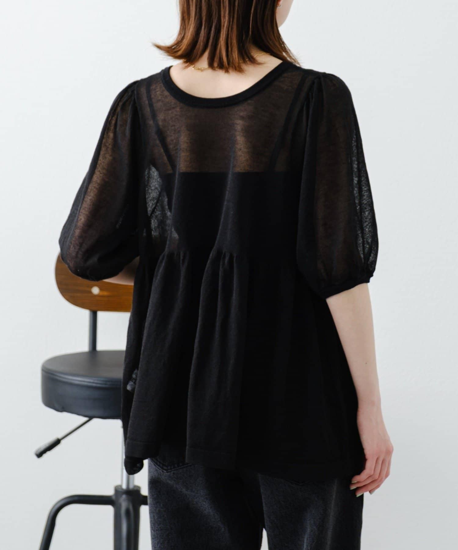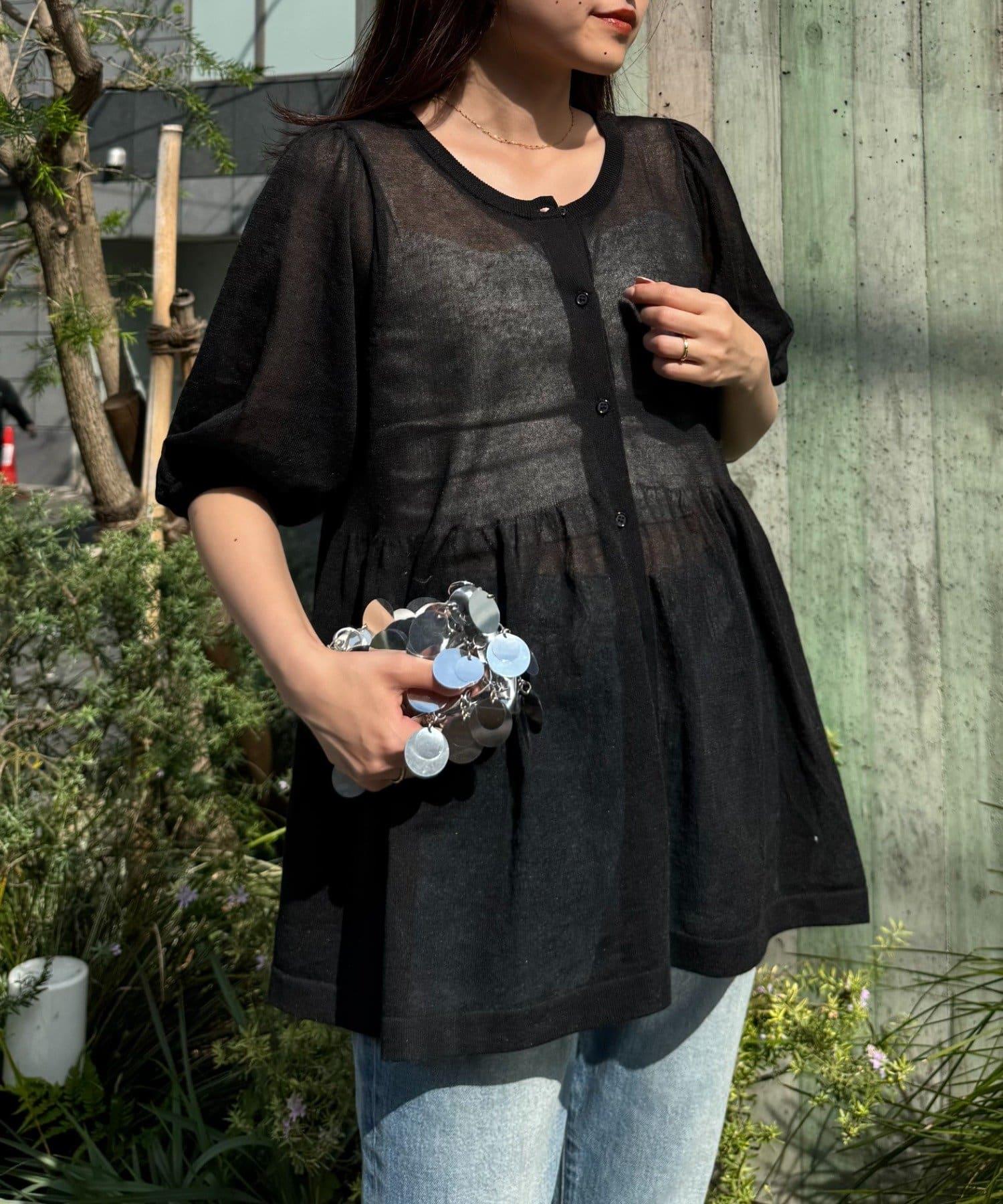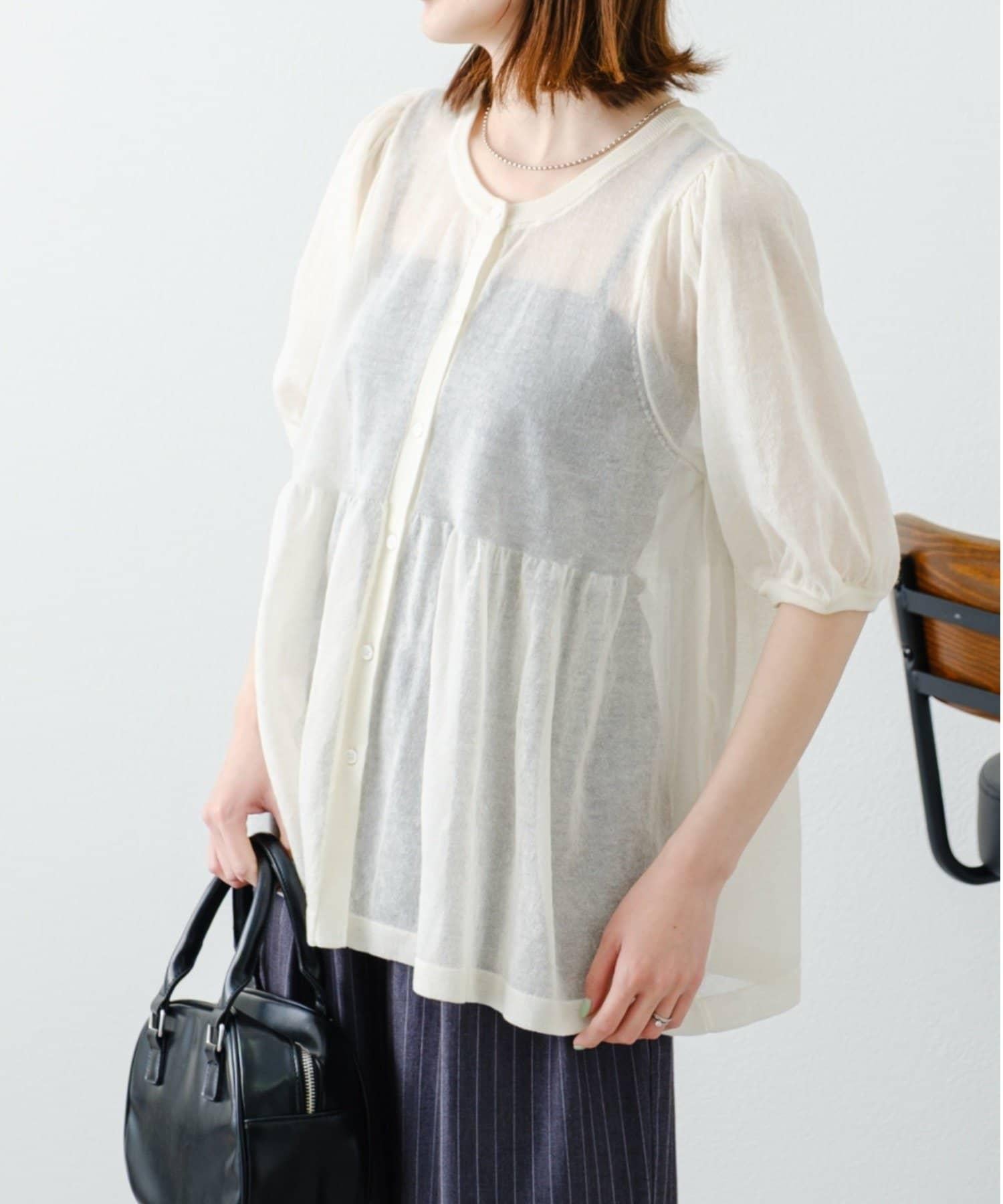 【柳】2WAY透視荷葉邊泡泡袖針織衫