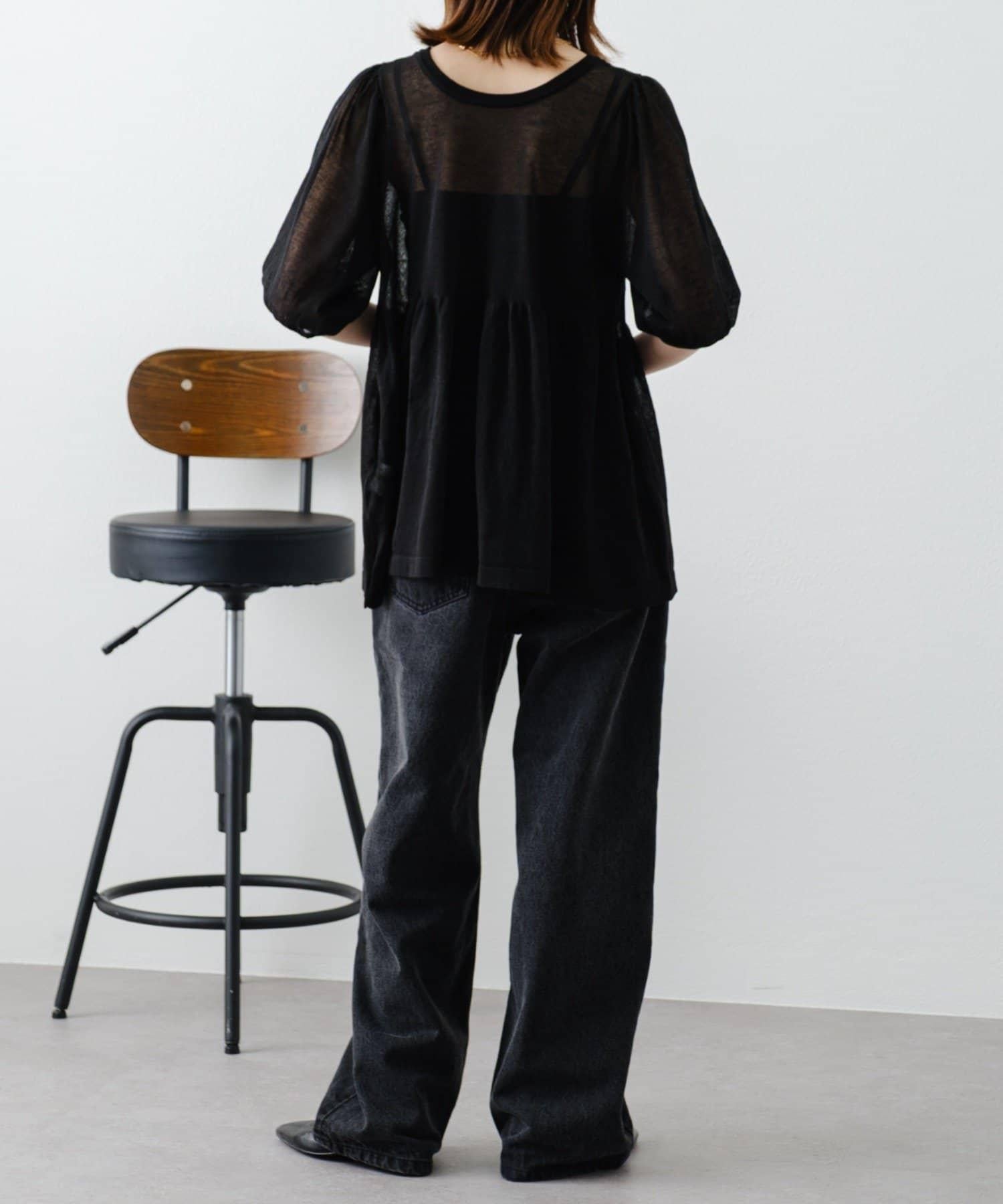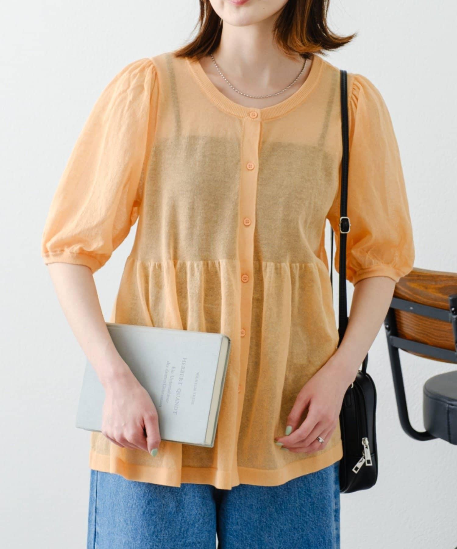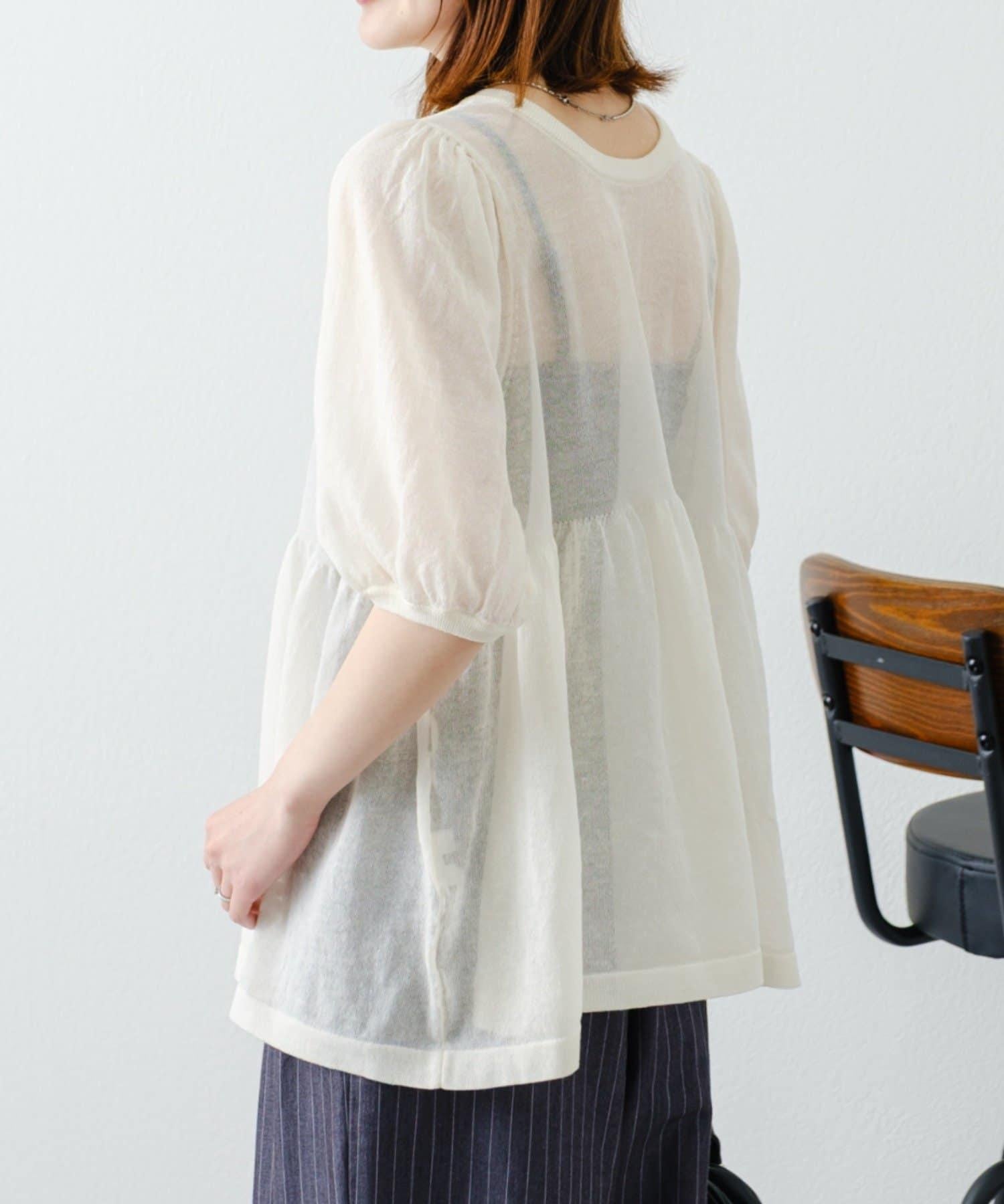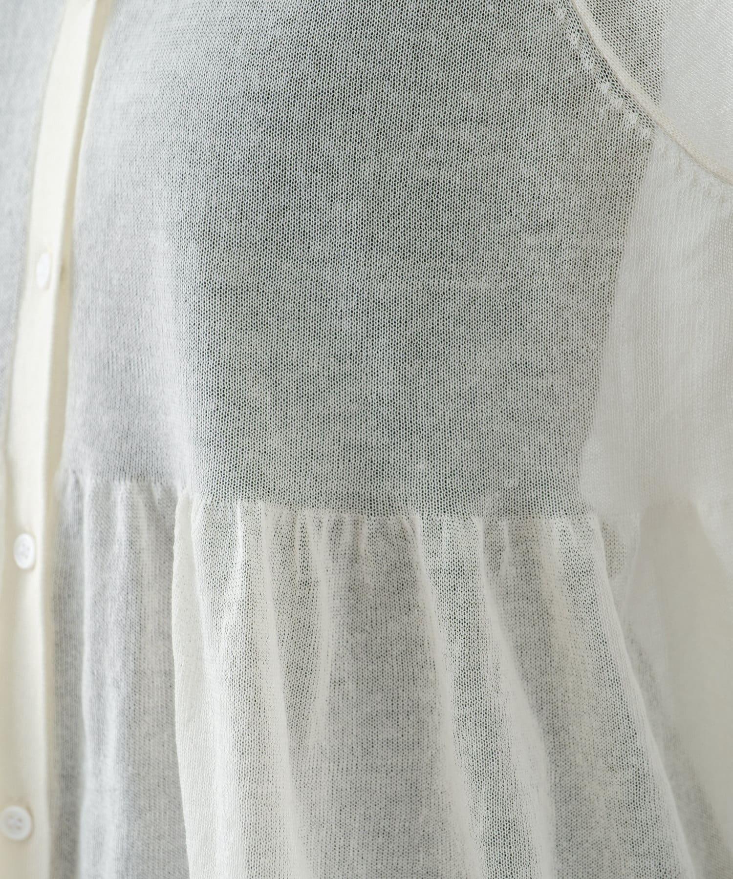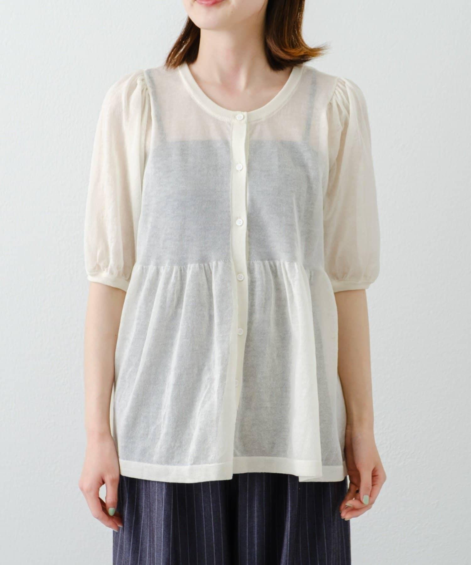 【柳】2WAY透視荷葉邊泡泡袖針織衫