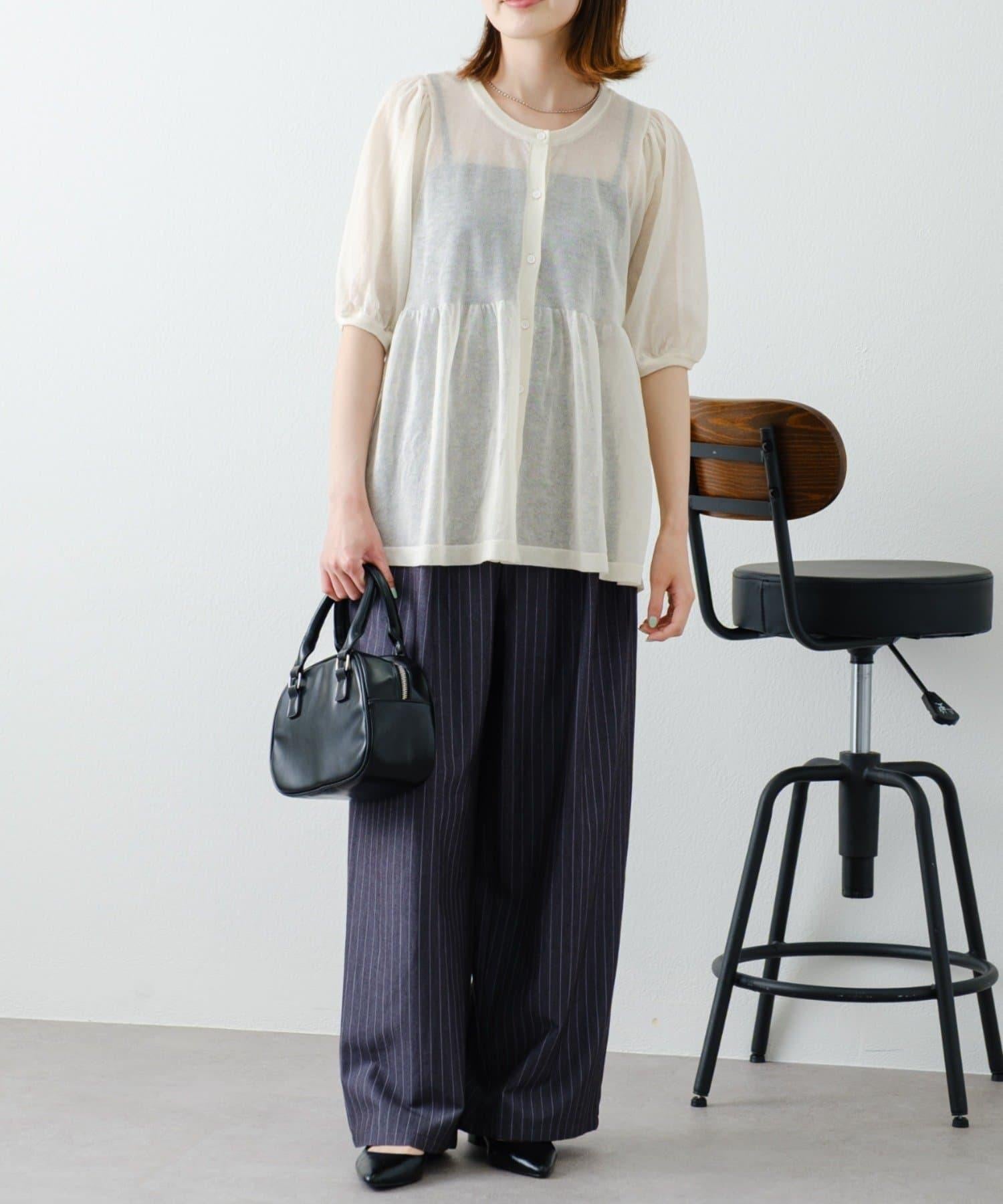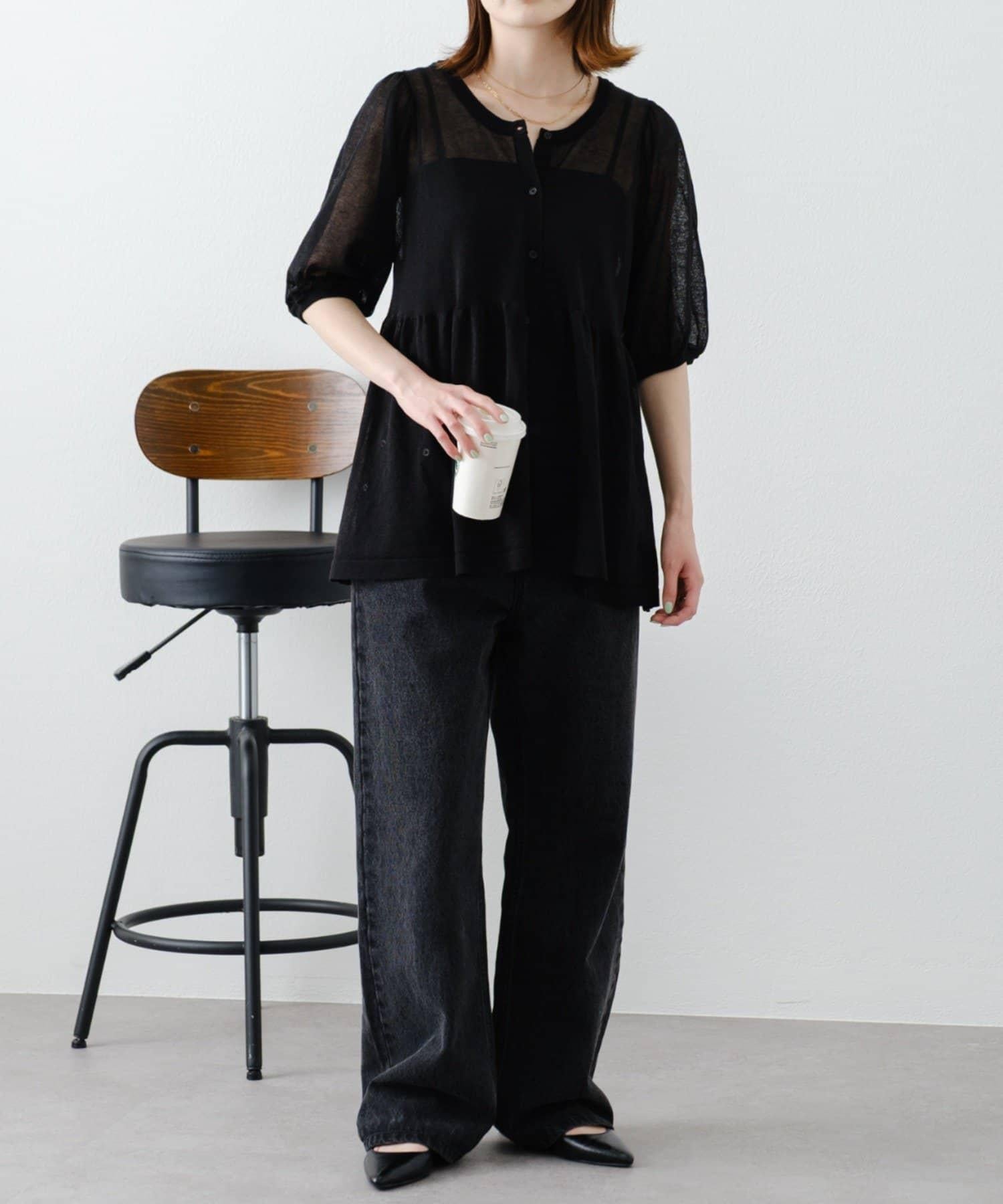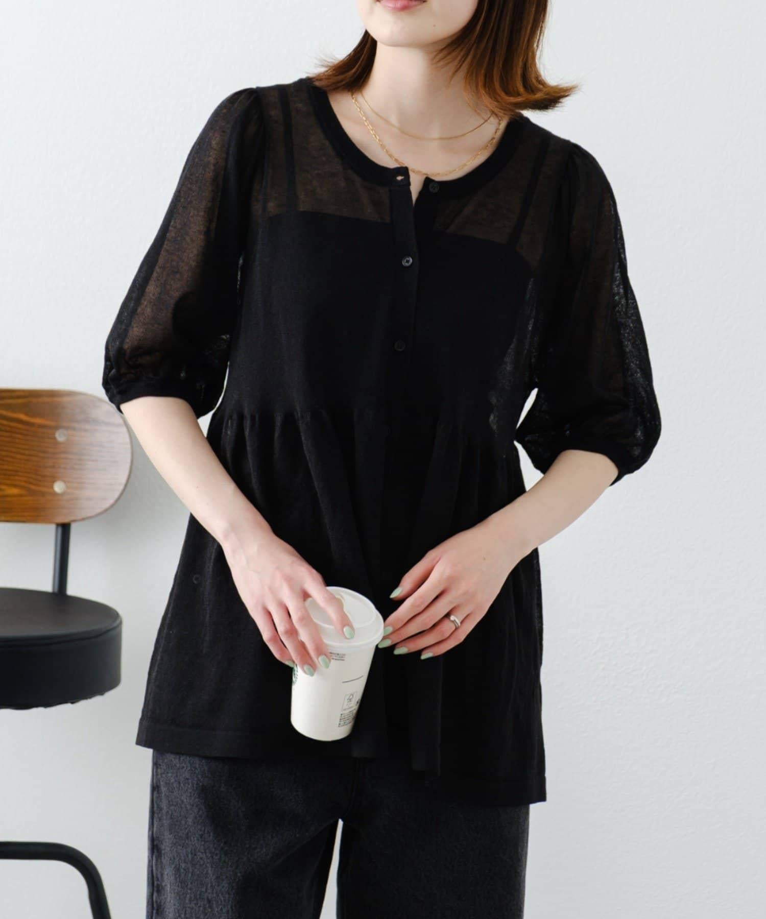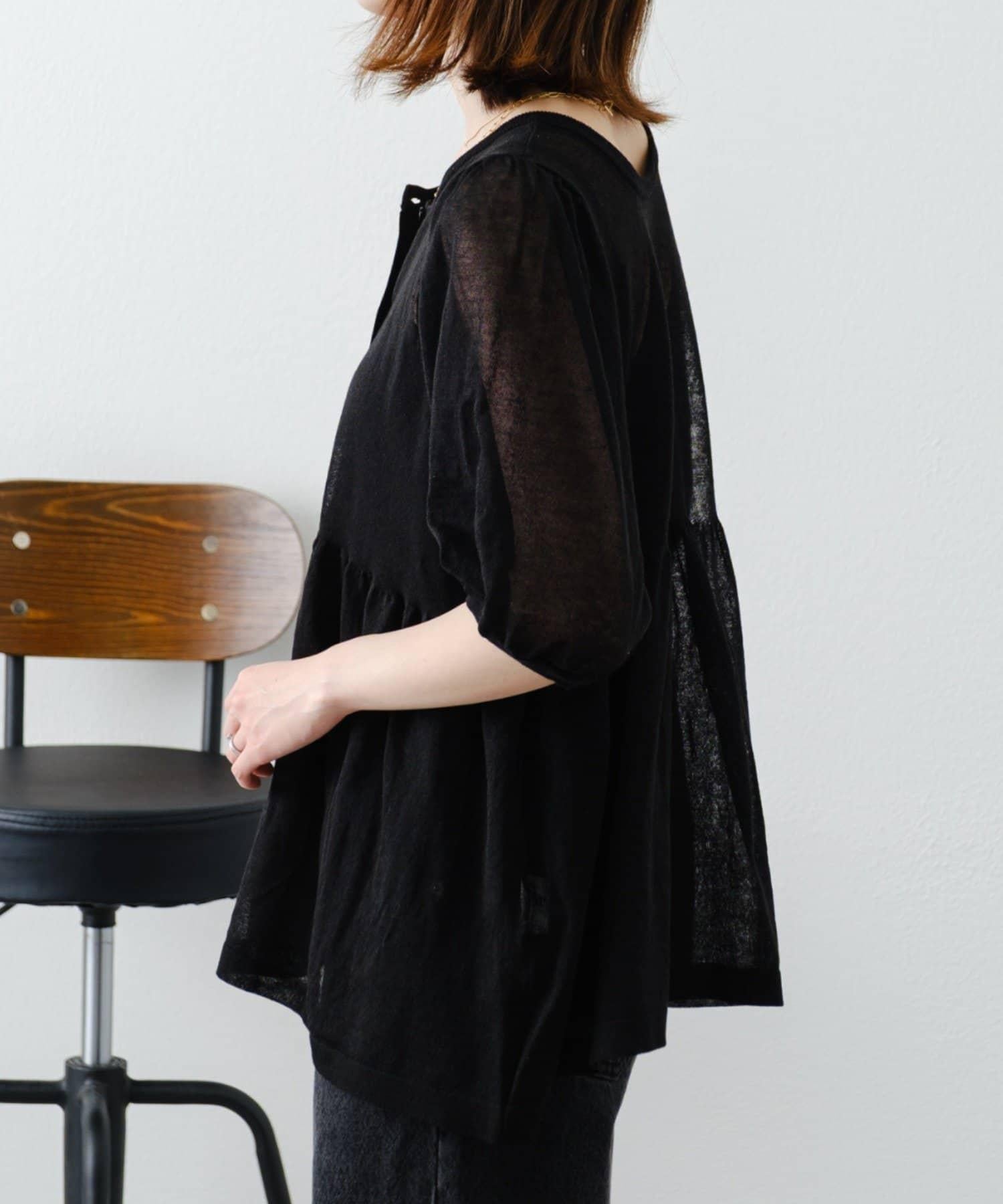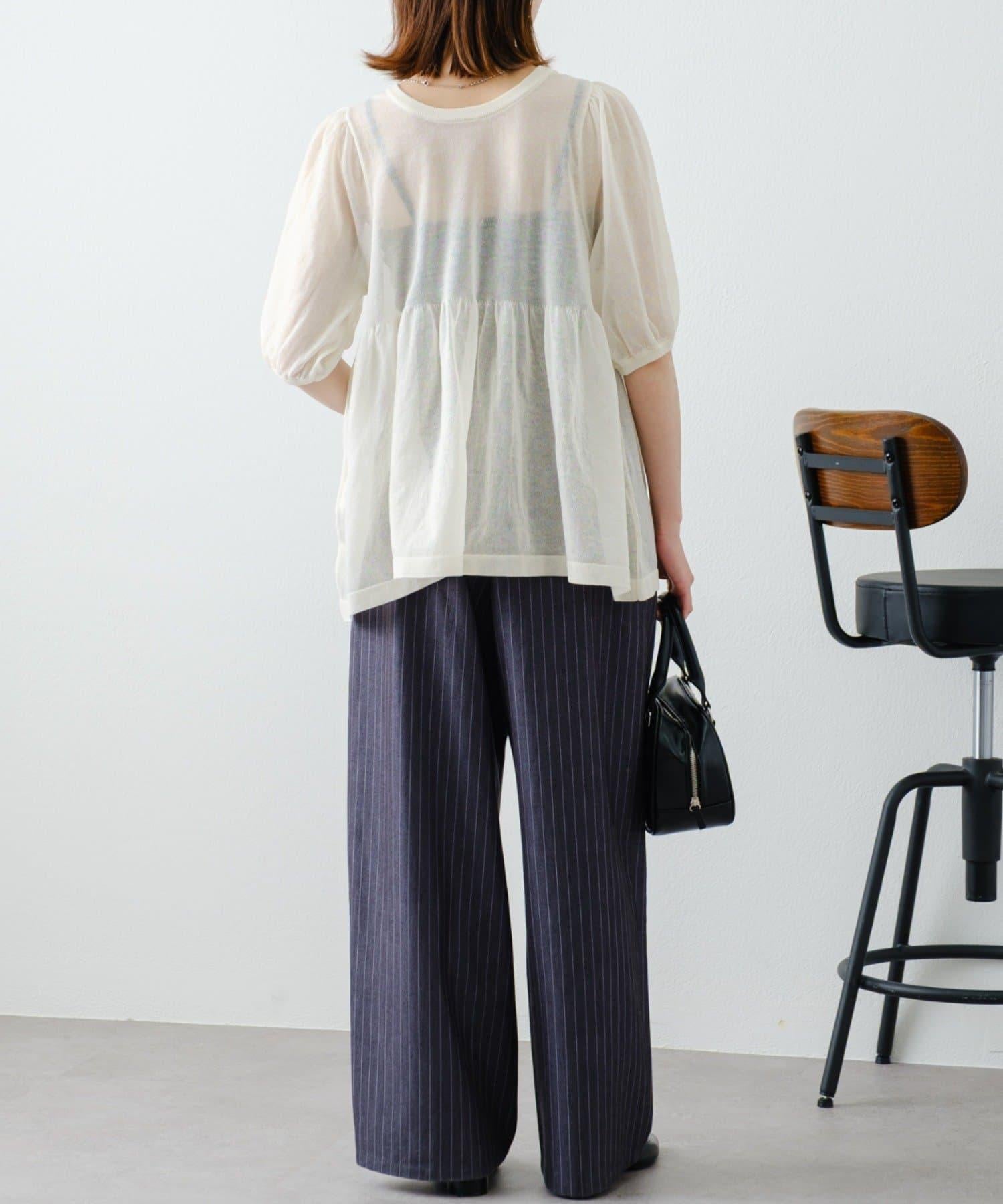 【柳】2WAY透視荷葉邊泡泡袖針織衫