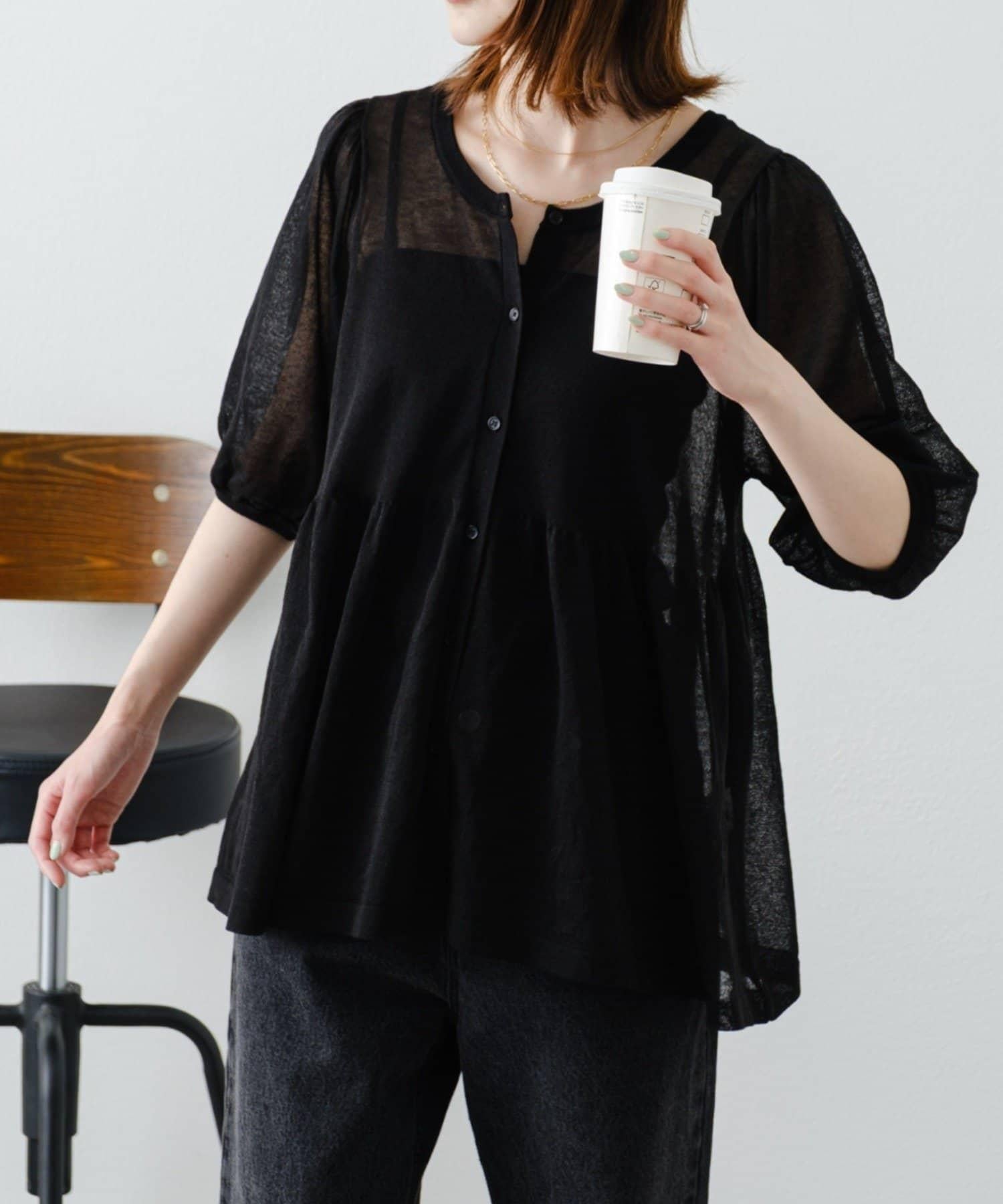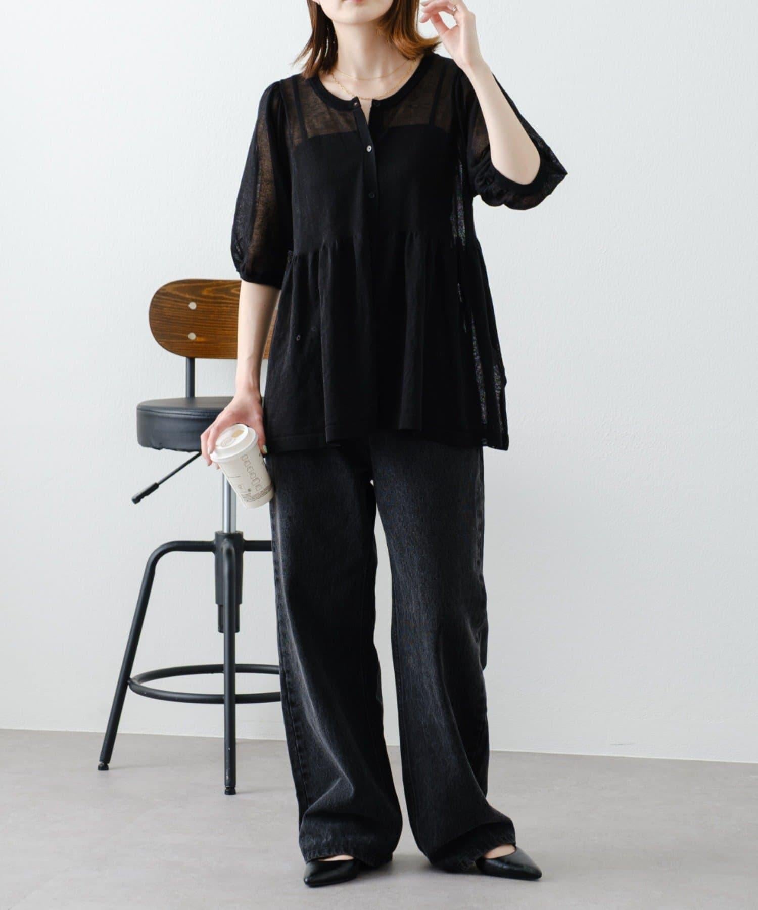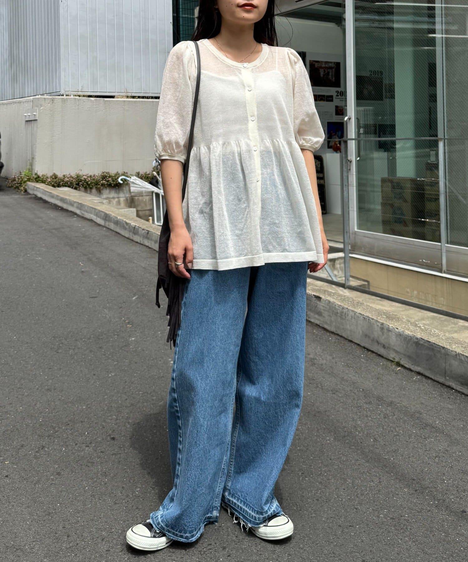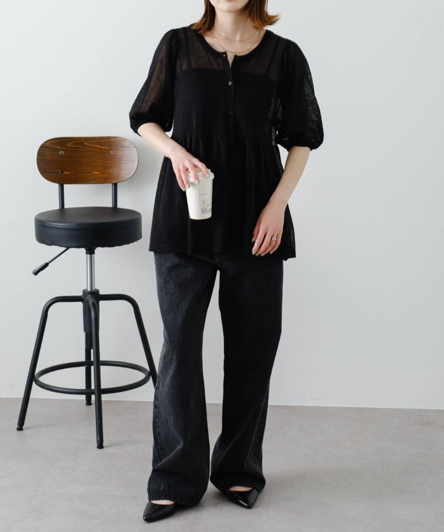 【柳】2WAY透視荷葉邊泡泡袖針織衫