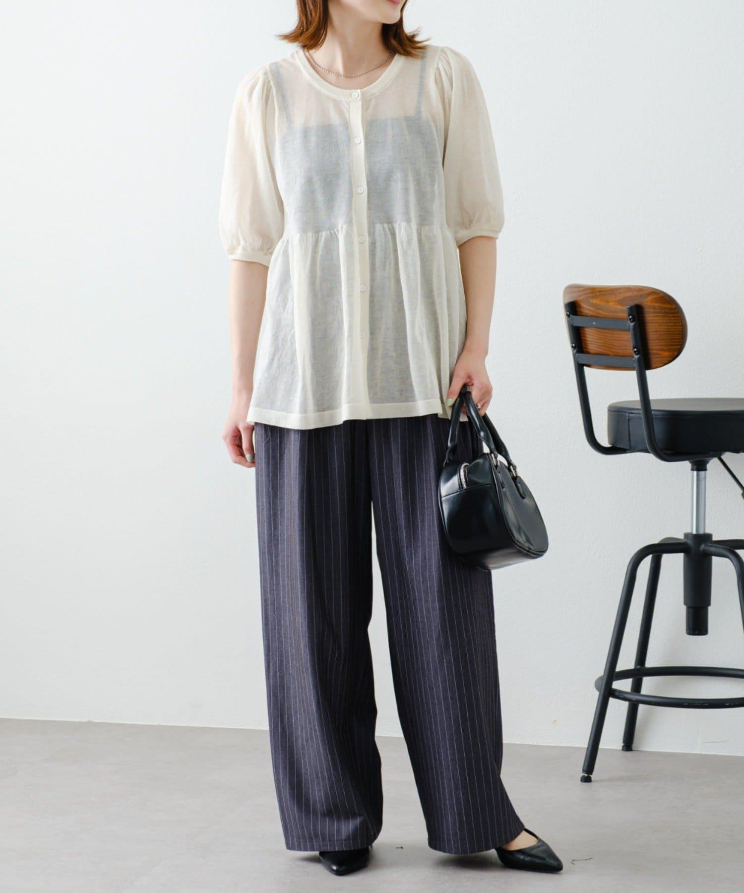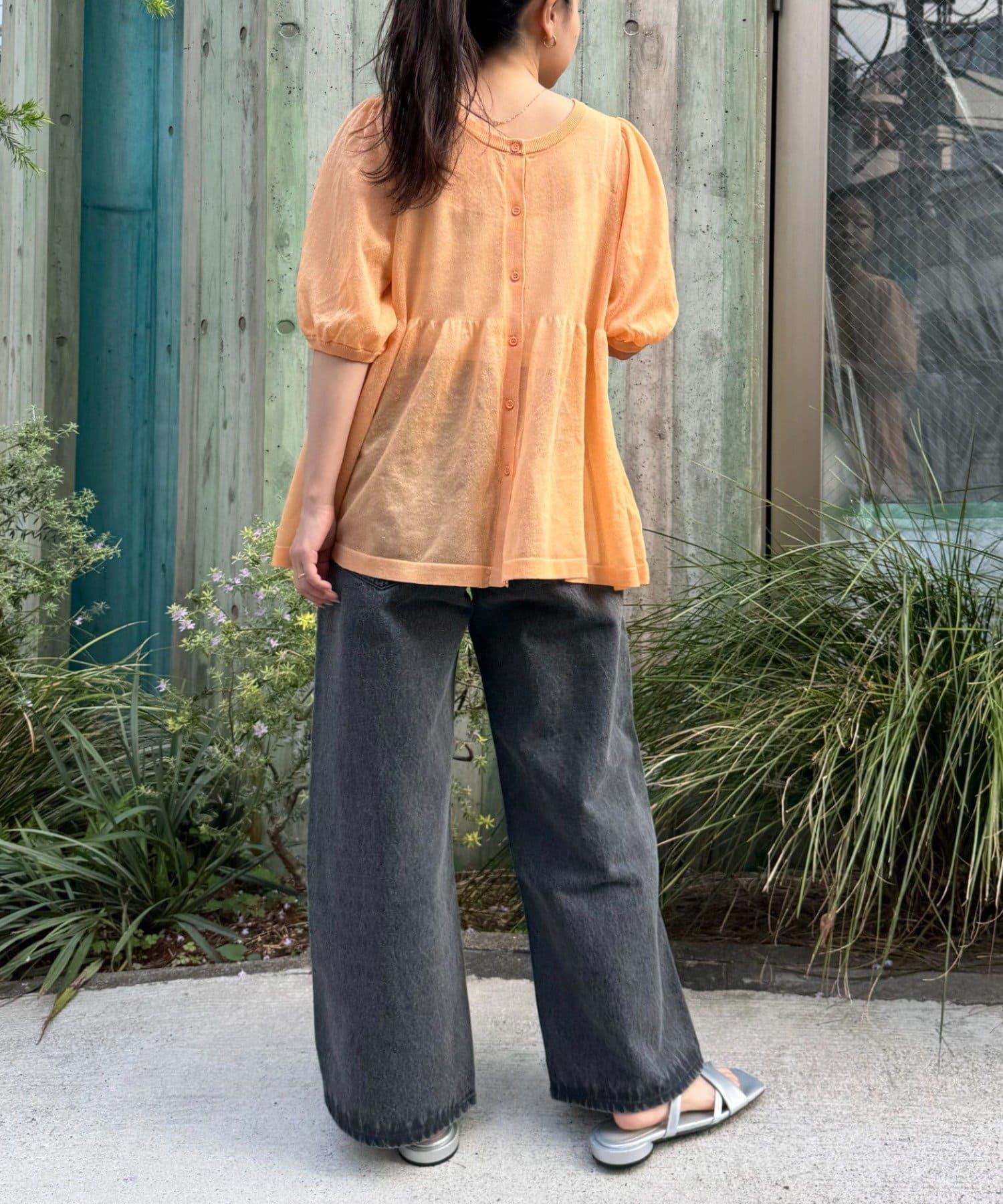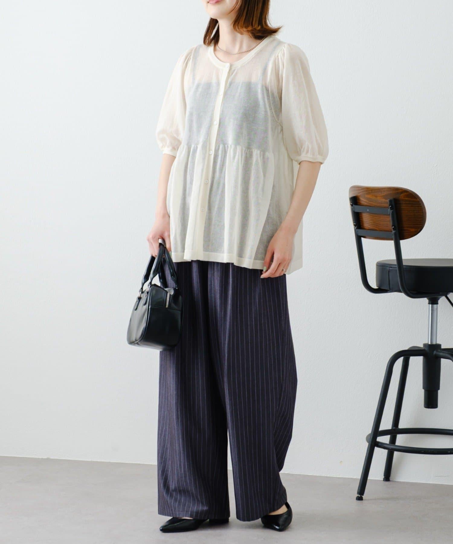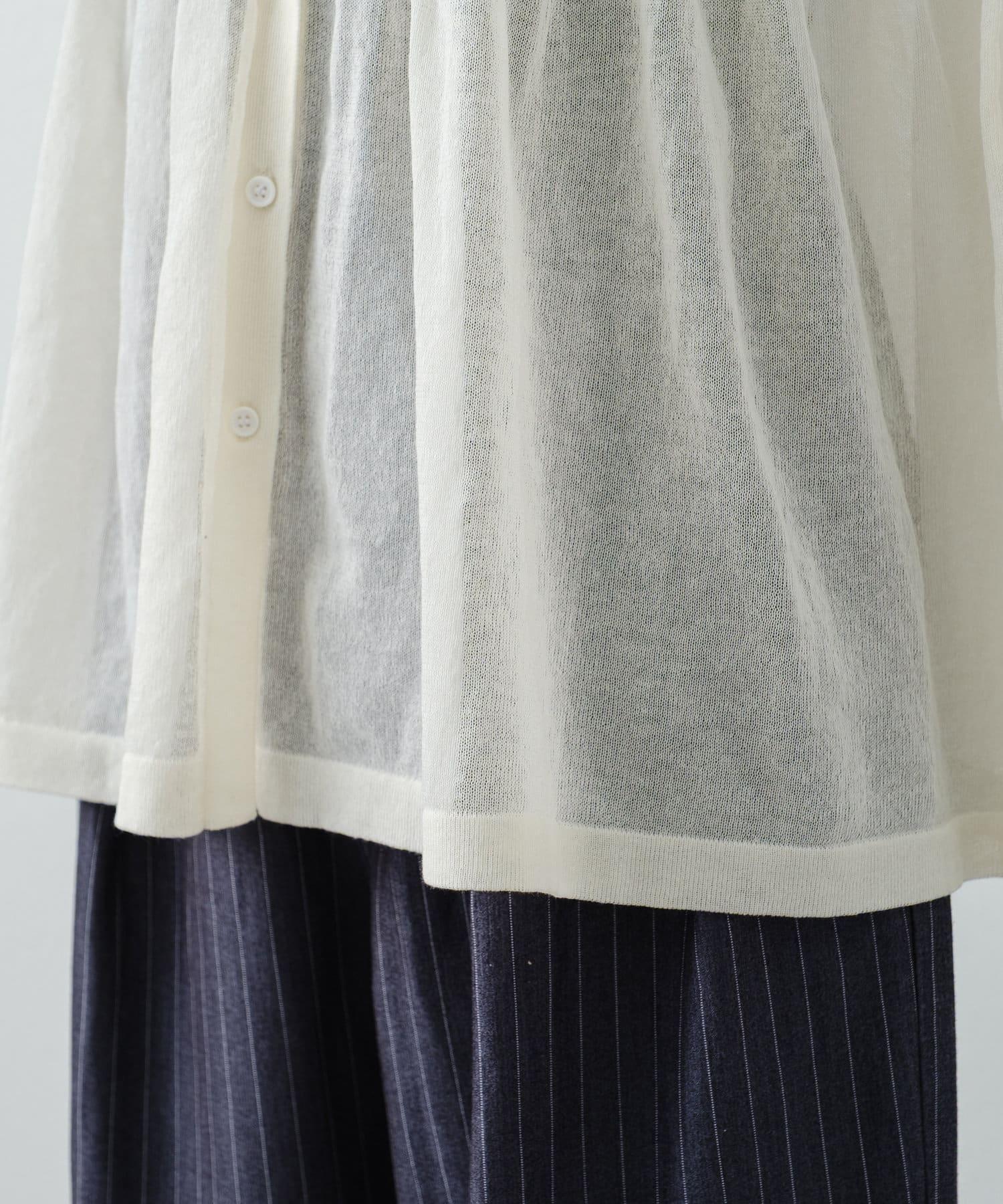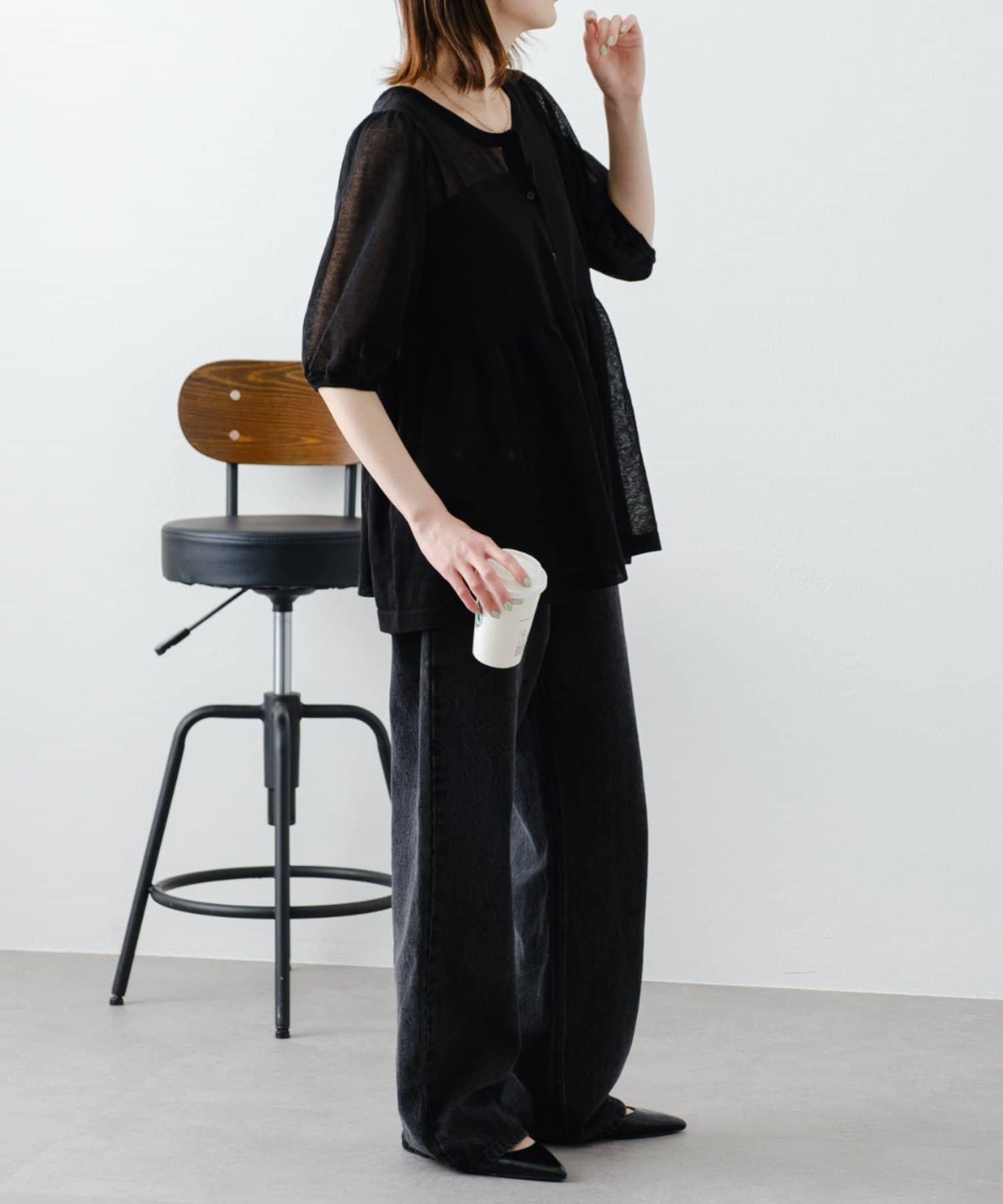 【柳】2WAY透視荷葉邊泡泡袖針織衫