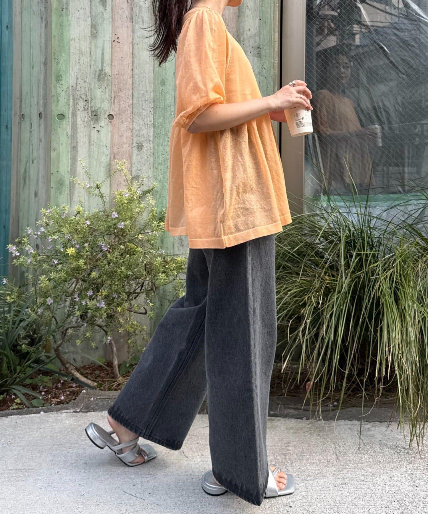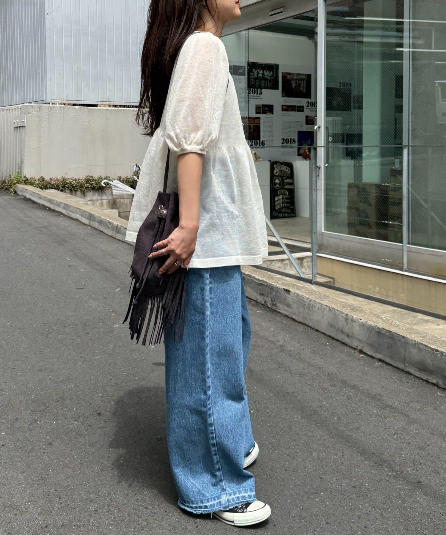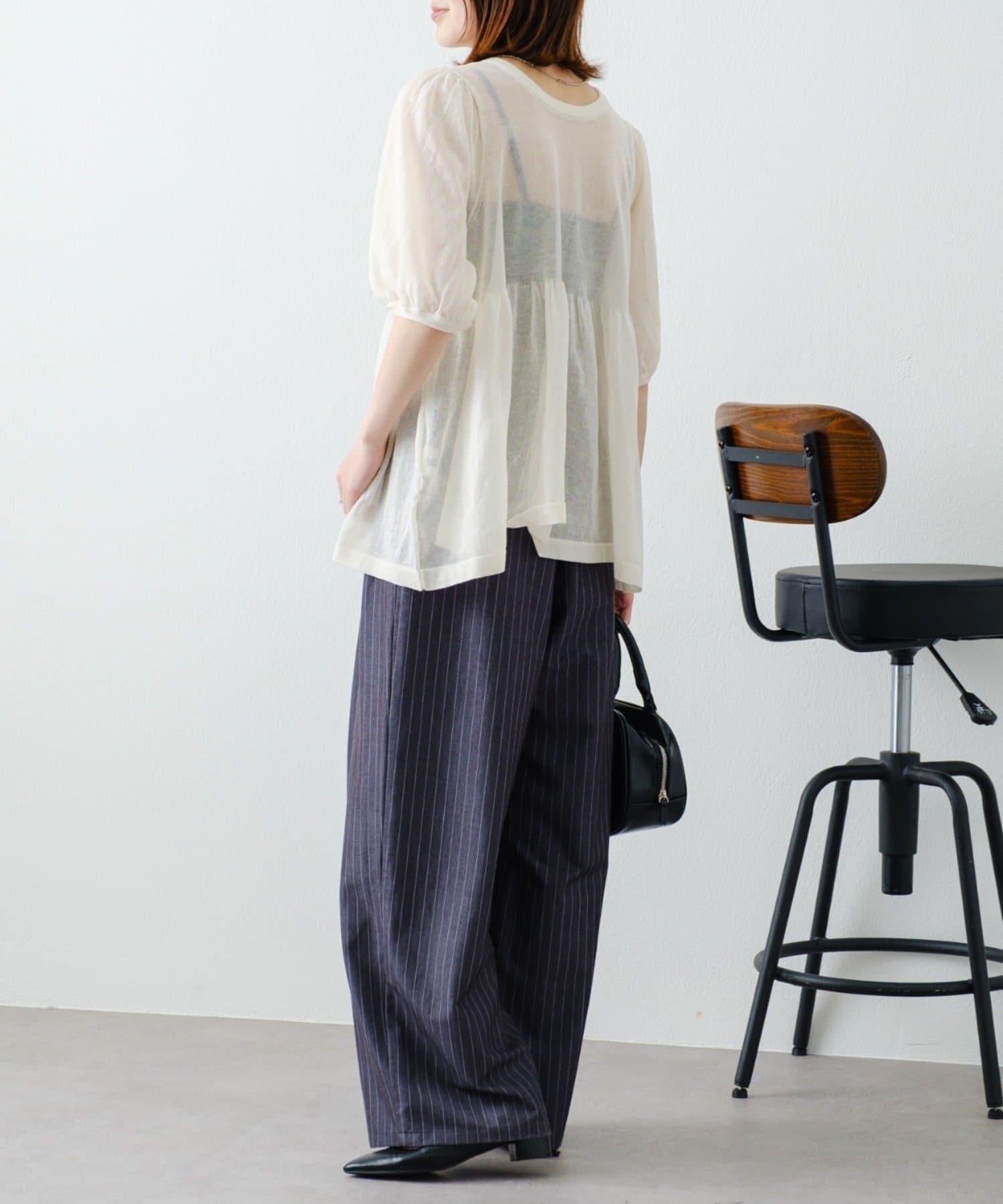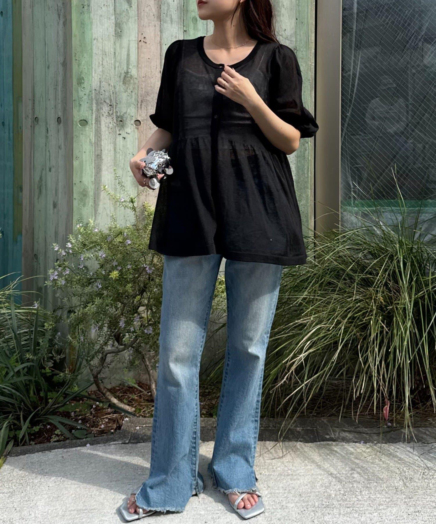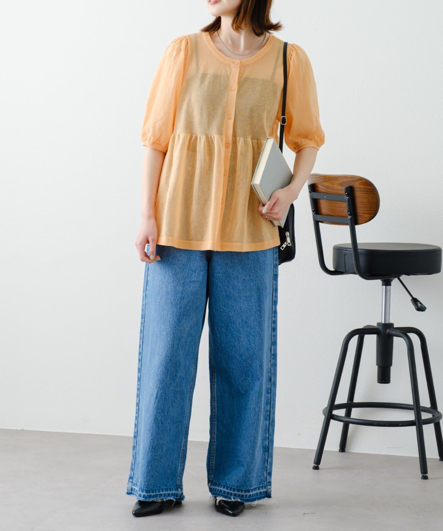 【柳】2WAY透視荷葉邊泡泡袖針織衫