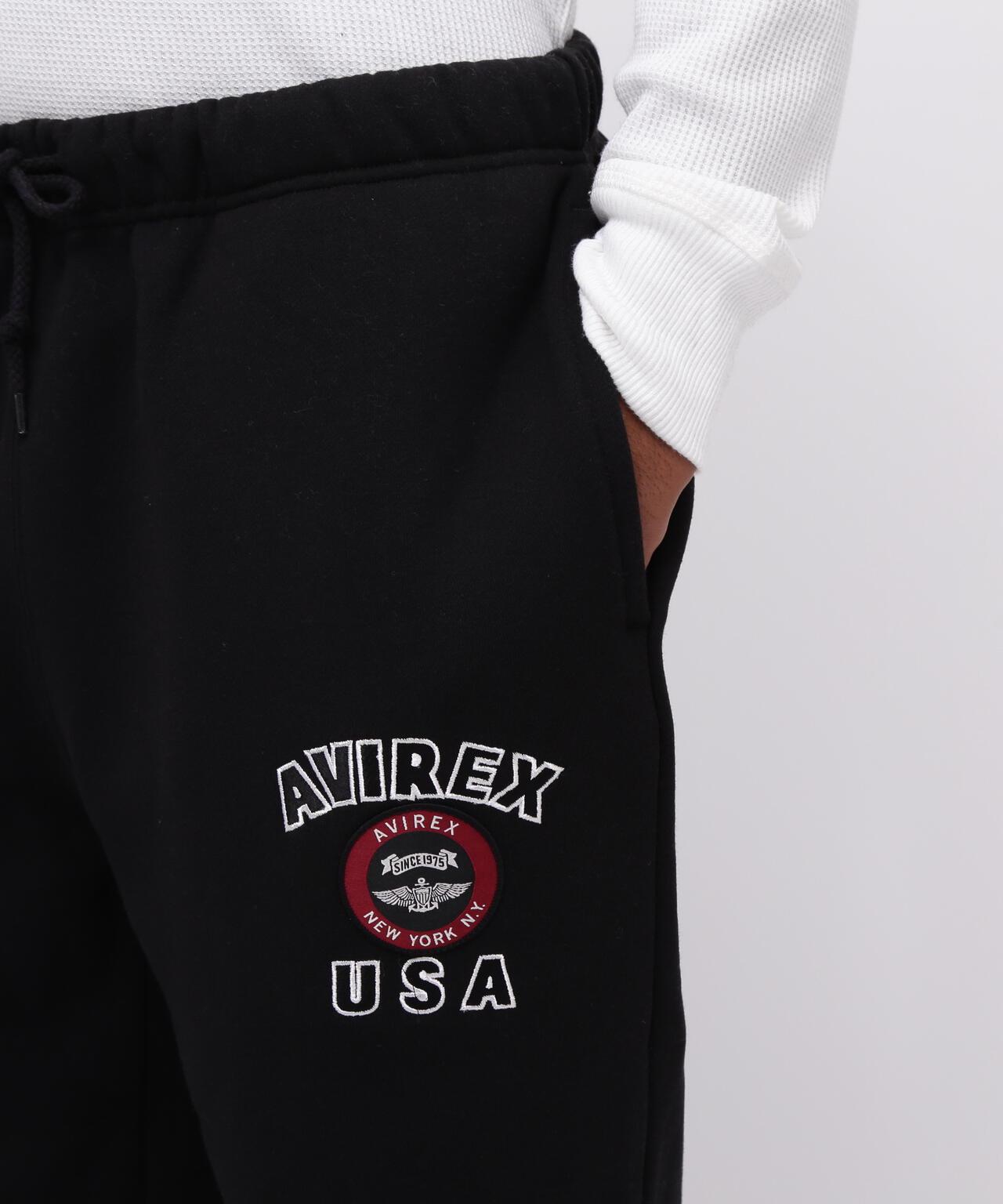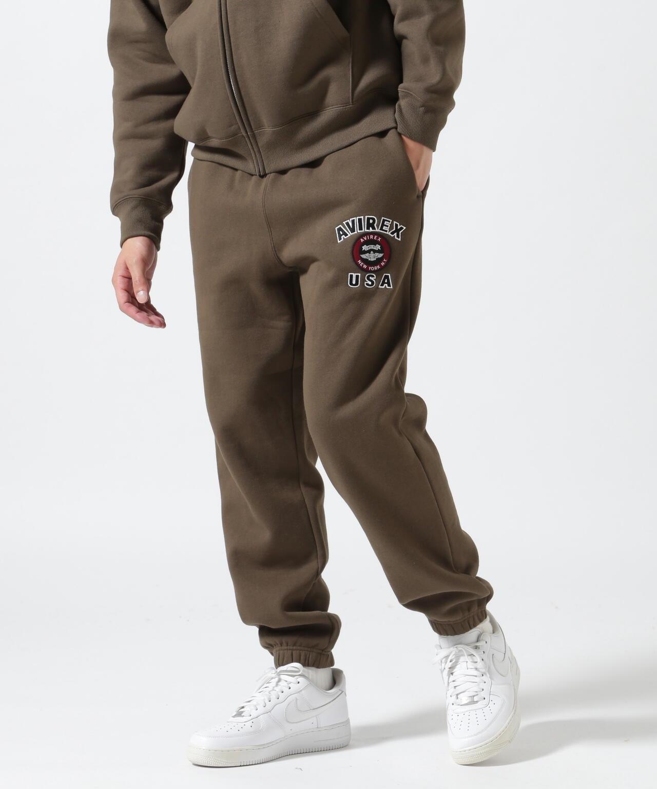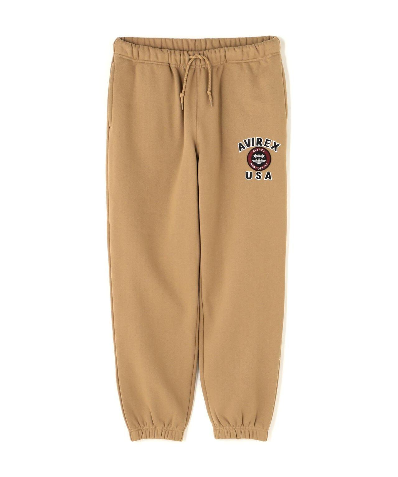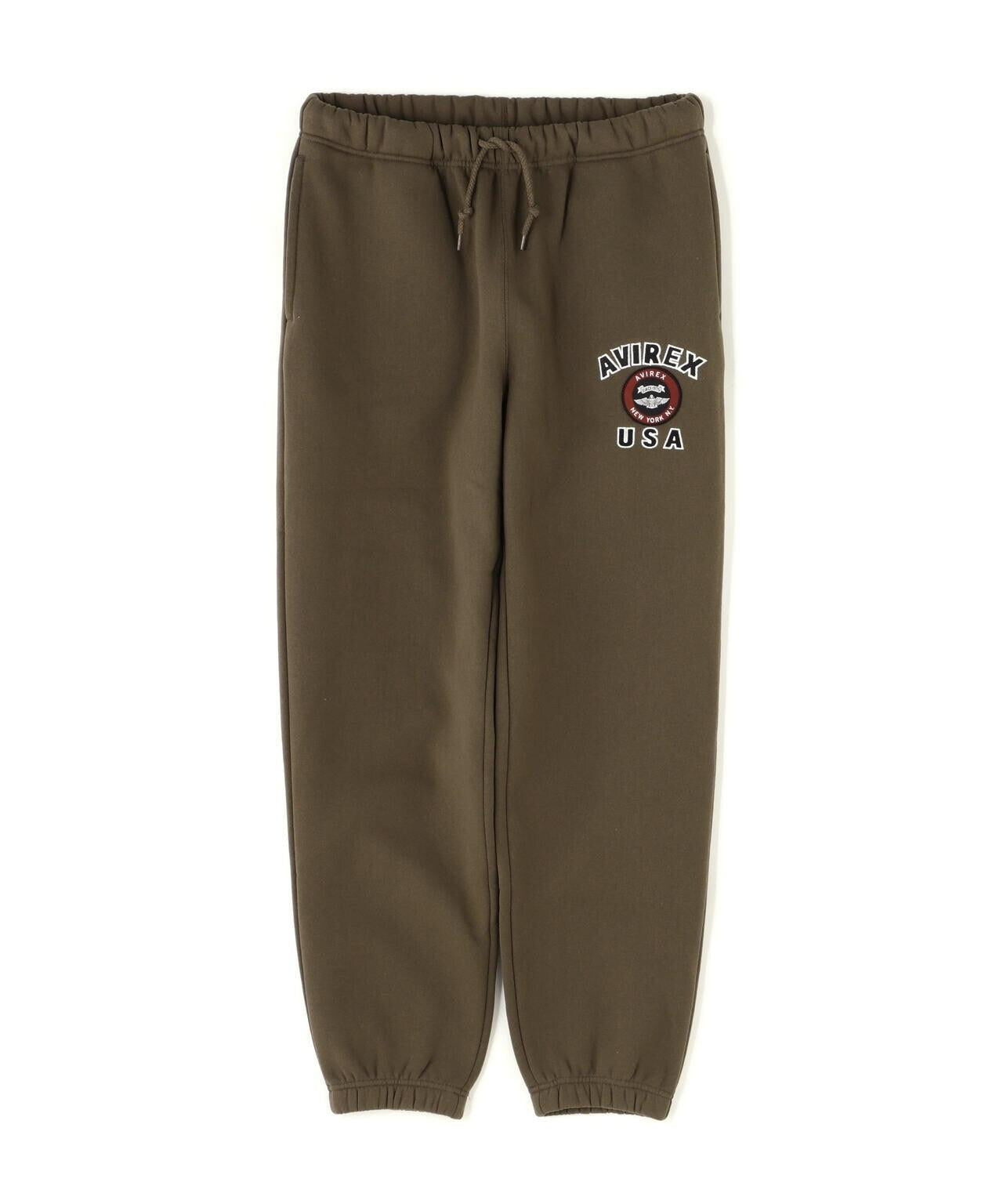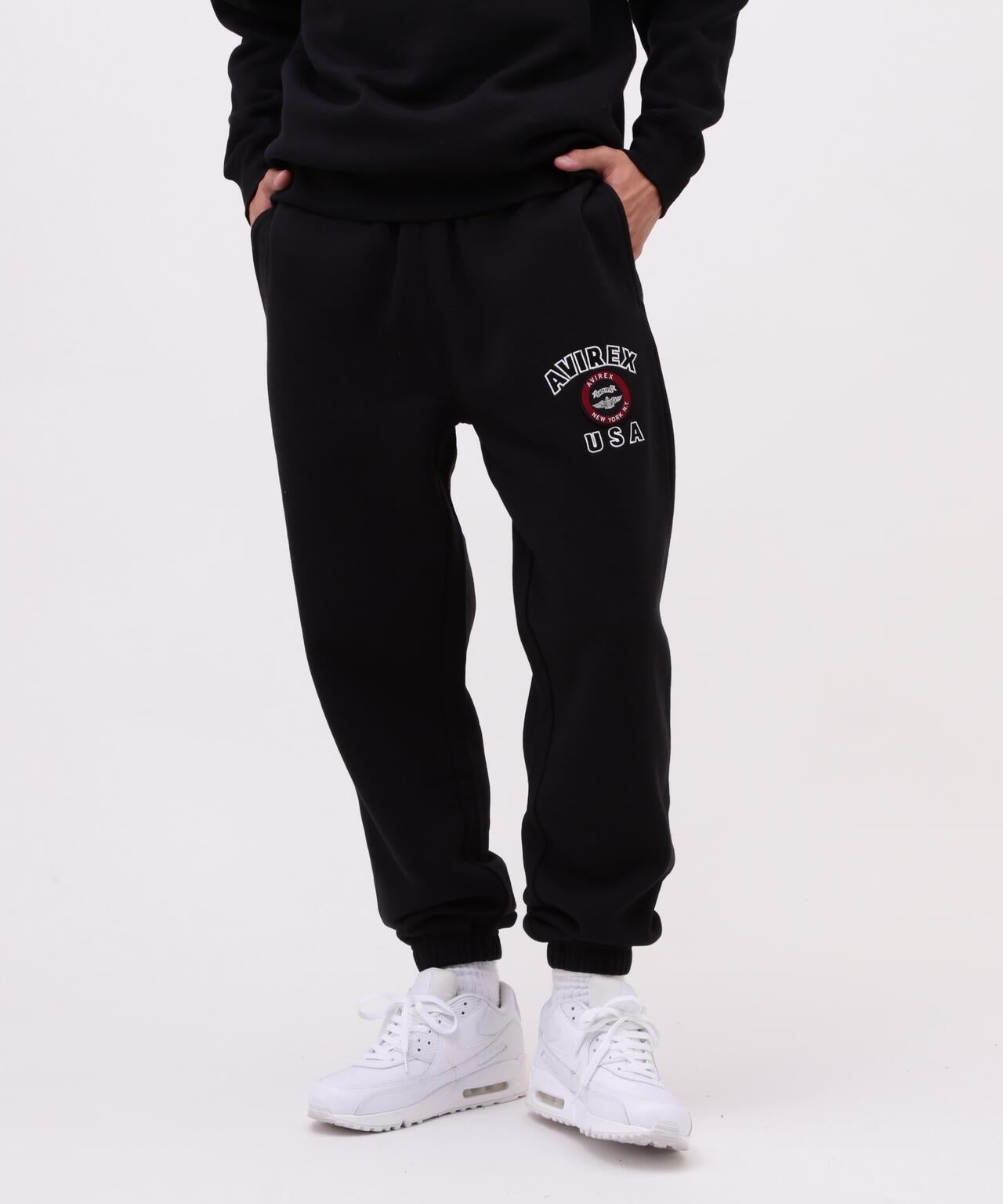 AVIREX VARSITY "是一個以 "美好的老美 "為主題的運動系列,其獨特的色彩和原創的圖案設計受到以 HIPHOP 圈為主的當紅藝術家和運動員的青睞。在美國,它已發展成為年輕人的時尚品牌。AVIREX VARSITY 服裝經典而不褪色,不分性別和國籍,繼續受到所有崇尚美國英雄精神的人們的支持。<產品詳情> - 厚度適中,65% 棉,35% 滌綸面料運動褲,左前方繡有標誌性品牌徽標,黑色,駝色。